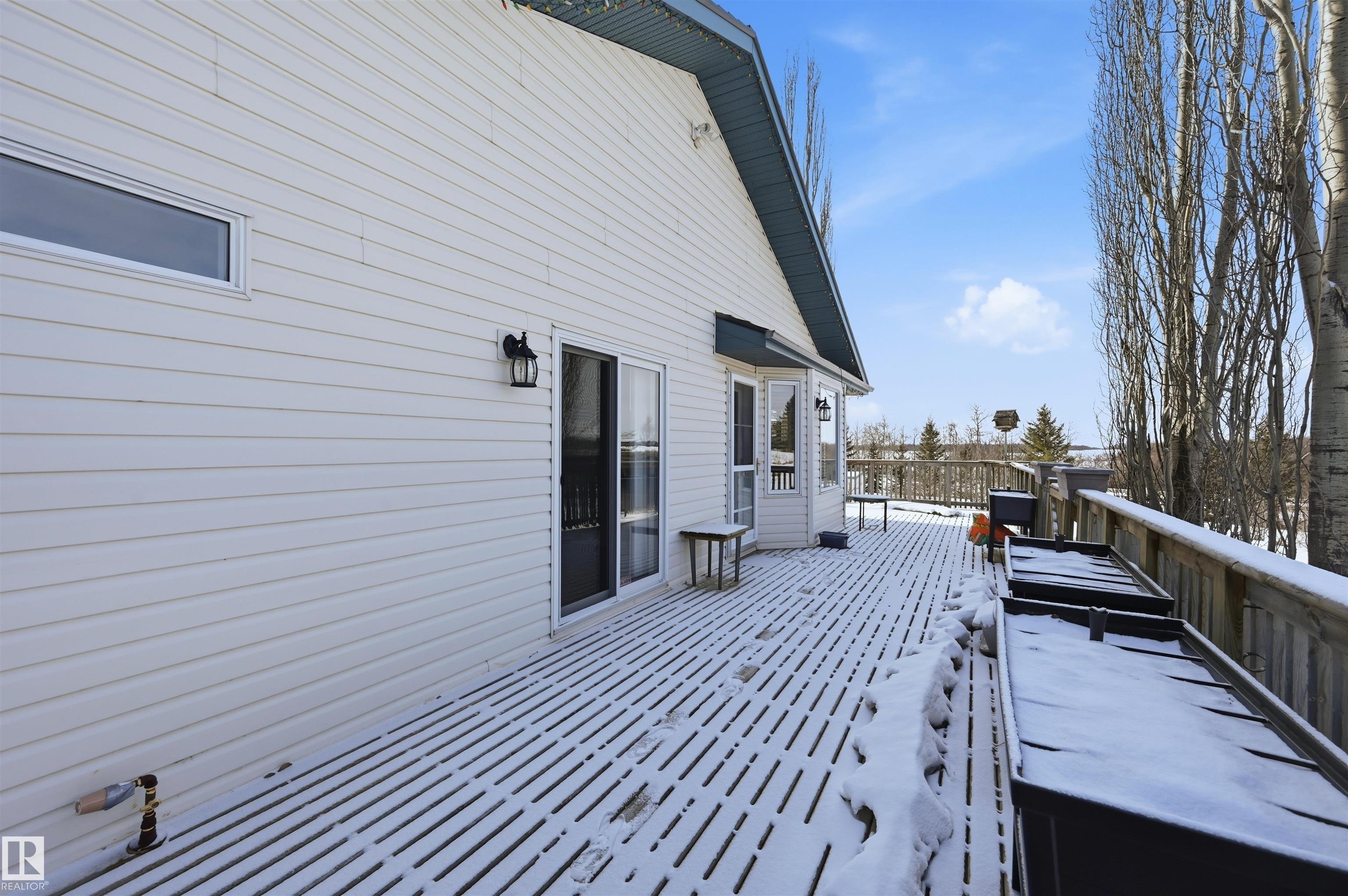 PRIVATE 3.3 ACRE LOT 10 MIN DRIVE TO BEAUMONT IN SCOTTSDALE ESTATES!! Original owner & meticulously maintained! Mature Evergeens border the entire property & create a sense of quiet serenity. Inside, sun lights the home w/ skylights & large windows. Gorgeous gas fireplace in living rm features imported stone surround & provides ample heat in the winter. Kitchen has granite/quartz updates, plenty of cabinets, wall oven & gas stove. Primary retreat w/ spa-like ensuite* & deck access! Main floor complete w/ 2nd bdrm, 2nd bthrm & laundry rm. Basement has in-floor heating, 2nd living area, huge 3rd bdrm, 3pc bthrm & cold storage/storage. Enjoy quiet summer evenings on the wrap-around deck w/ sunset views + apple trees, ample gardening space, firepit area & storage shed. Features: NEW METAL ROOF, NEWER HARDWOOD, newer hot water tank, newer washer/dryer, HEATED OVERSIZED GARAGE, central vac, BBQ gas line & more! *Hot tub could be moved to exterior & freestanding tub installed* 4th bdrm could be added in basement