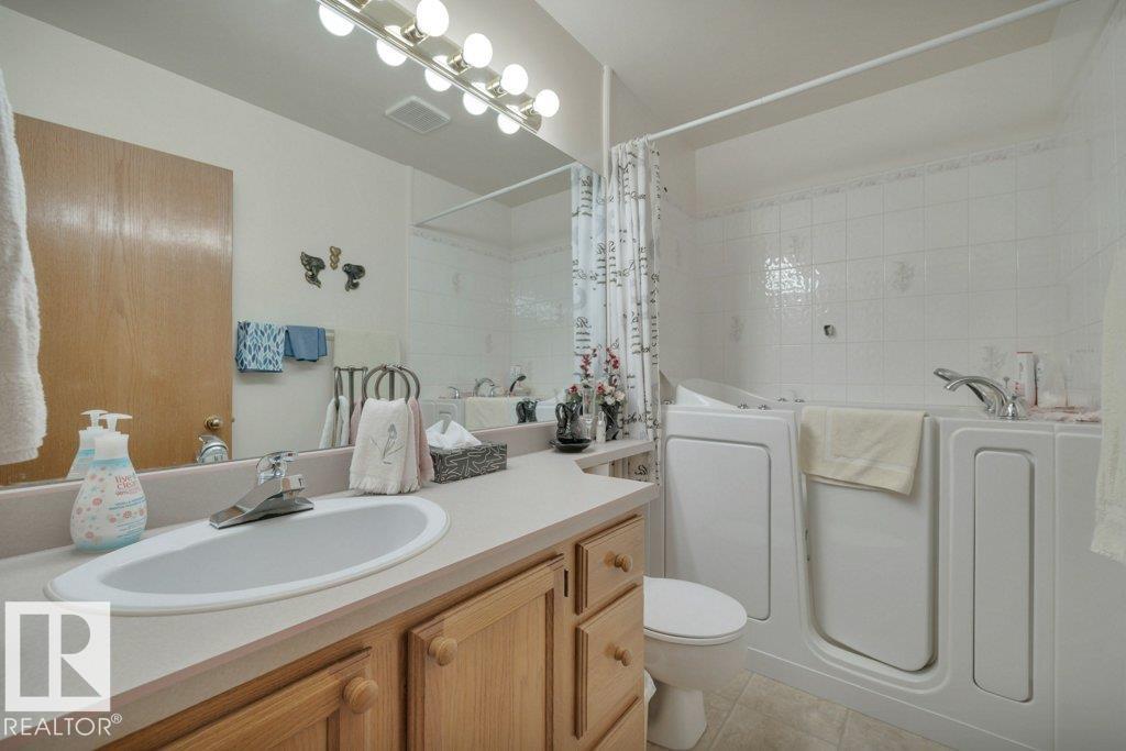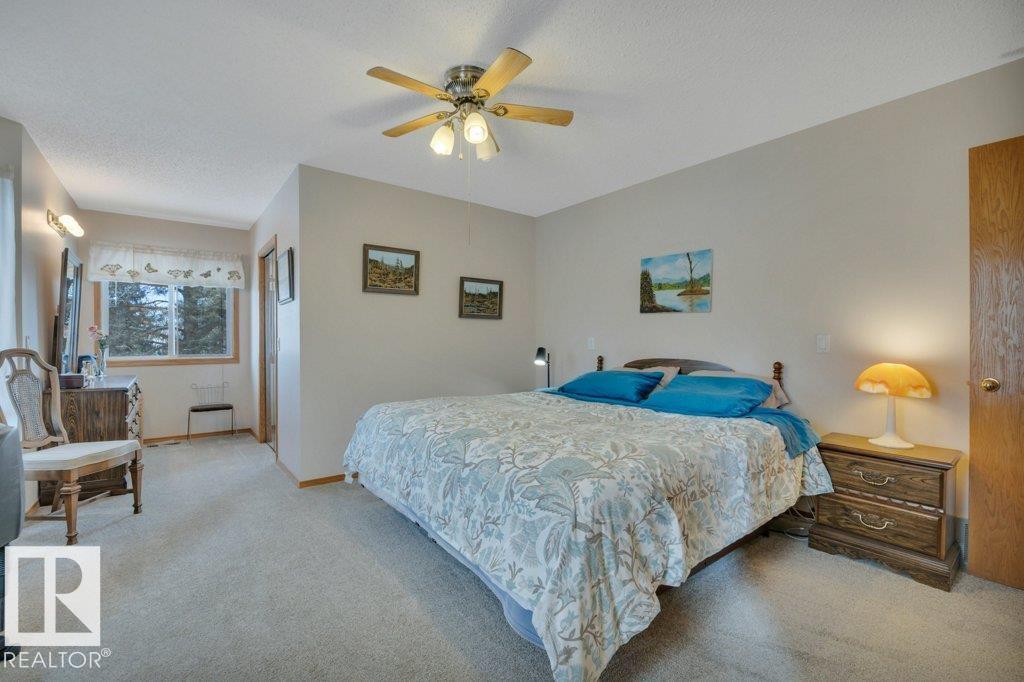 A well-maintained duplex bungalow in an adult (55+) living community in the desirable Lakeside Estates area. One of the largest units over 1500 SQFT main floor and full developed basement. Lots of natural light thanks to its end unit location, vaulted ceiling living room skylight & large basement windows. A bright main floor with open-concept layout, large kitchen, dining & living room with cozy gas fireplace. A large primary bedroom, 3-pc ensuite & walk in closet, 2nd bedroom with murphy bed, 4-pc main bathroom with walk-in tub, & main floor laundry. In the basement enjoy a 3rd bedroom, large 3-pc bath with storage cabinets, & large recreation room with wet bar. There is ample storage throughout with cold room & workbench for home projects. Relax on west facing backyard deck with powered wall awning. Out front is the attached double garage, & charming front porch. Visitor & RV parking directly across from the unit. Close to shopping, schools, recreation, golfing & all of Leduc’s amenities.