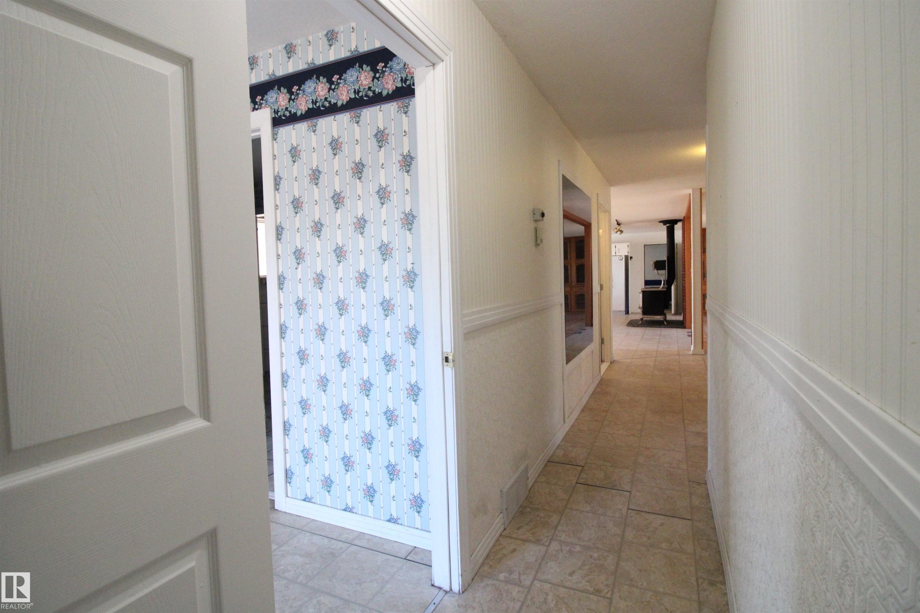 Built for the Doer: Heated Shop, Paved Access, and Room to Run Your Business from Home. Over 4,500 sq ft on 5 private, tree-lined acres minutes from Entwistle—featuring a heated 32 × 36 shop, paved access, and clear potential for buyers ready to update. This spacious bi-level offers 5 bedrooms, 3 baths, and dual living areas suited to multi-generational families, home-based businesses, or income potential. The lower level includes in-floor heat, a second kitchen, and full-height windows, creating a bright, comfortable suite. A 14 × 20 sunroom connects to an 800 sq ft deck adding everyday function and flexibility. The paved driveway leads to the heated shop with 12-ft ceilings and attached greenhouse—ideal for trades, storage, or serious hobby use. Original finishes provide a strong opportunity to build equity through renovation, supported by solid construction, metal roof, and reliable mechanical systems. A rare chance to secure space, privacy, and long-term upside in a well-located rural setting.