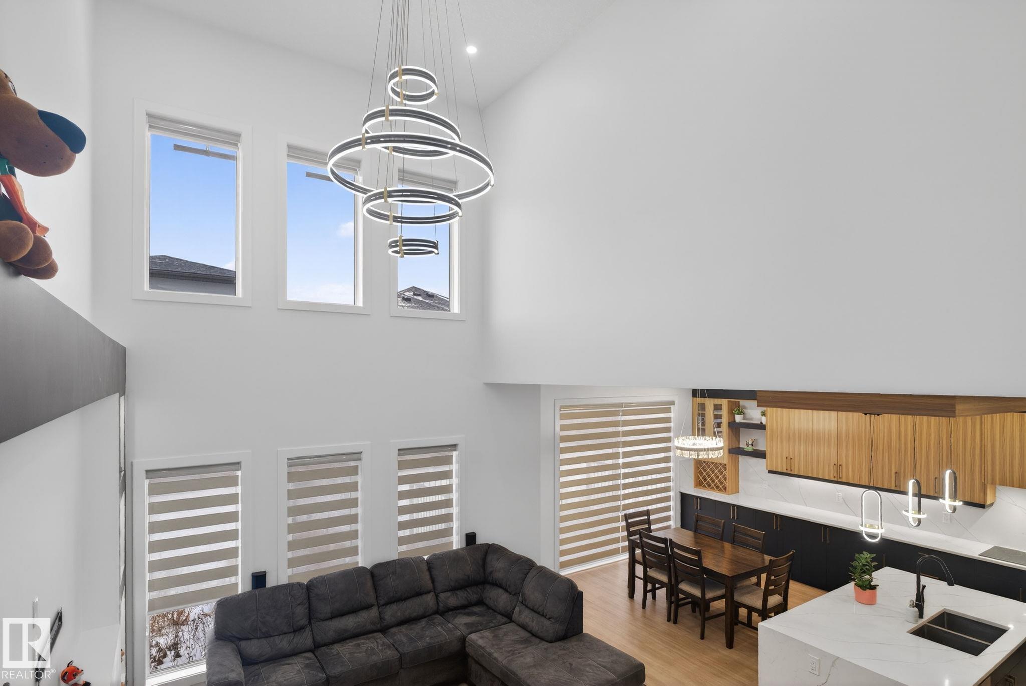MOVE-IN-READY. Includes, APPLIANCES, WINDOW COVERINGS, SPICE KITCHEN DECK, SEPARATE SIDE ENTRANCE to bsmt, AC. 4 bedrooms and 3 FULL Bathrooms. The main floor features a bedroom with a full bathroom. The family room showcases a striking open to below design enhanced by a feature wall. The custom kitchen is a true showpiece with ceiling height, 2 toned cabinetry with extended nook cabinetry. The 2nd kitchen is equipped with a sink, gas cook top and ample storage space. The glass railed staircase with step lighting leads to the 2nd floor spacious bonus room. Upper floor laundry room with a sink and cabinets. The primary suite impresses with an indent ceiling, accent wall and a spa like 5-piece ensuite featuring dual vanity, custom shower and WIC. Additionally 2 generously sized bedrooms and a 4-piece bathroom complete this level. Feature walls, premium lighting package, MDF shelving, VINYL flooring throughout plus much more. Minutes away from South Edmonton and Airport. Close to amenities. A must see!