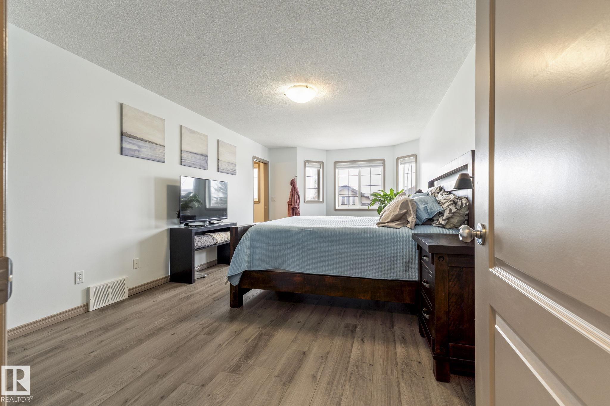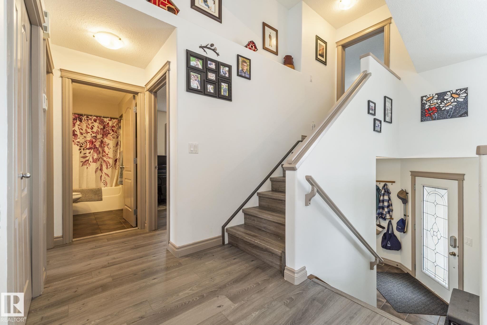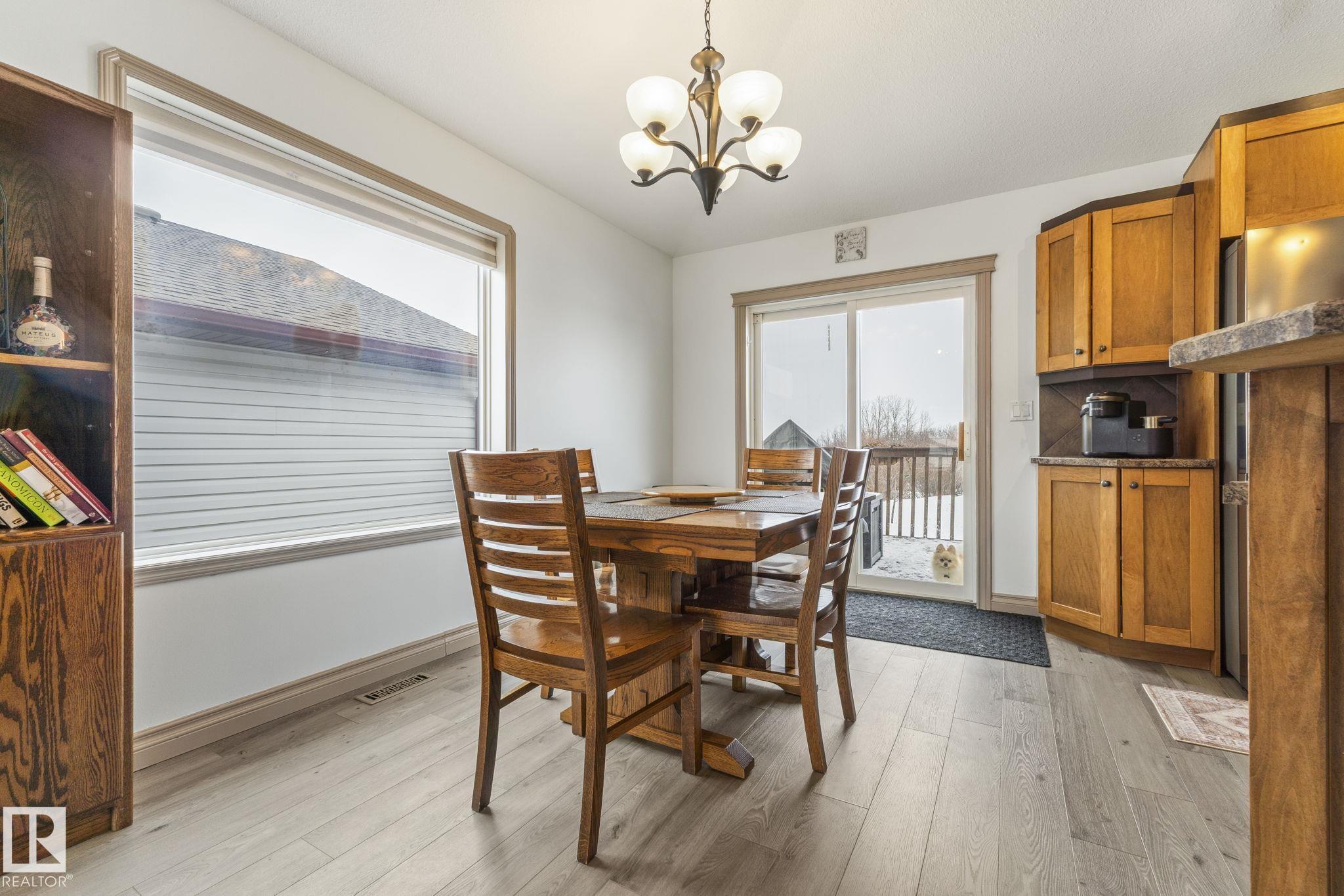 Mint Bi-level in Morinville! ORIGINAL OWNERS, lovingly cared for & meticulously maintained. GREAT curb appeal w/NEW SHINGLES, BAY window features on the main & upper floor, STACKED STONE accents & more. Keep your cars cozy in the double ATTACHED HEATED garage. Inside has FRESH PAINT & LVP flooring throughout to give it a MODERN look. The living room has a gas FIREPLACE, eat in the DINING ROOM w/ access to your DECK overlooking the rear yard w/GREEN SPACE & a WALKING PATH; only 5 mins walk to the Rec Center! Cook in an amazing kitchen w/ UPGRADED knob and grabs, nicer STAINLESS appliances and a CORNER PANTRY, plus a raised BREAKFAST BAR, perfect for entertaining; it's a full step above the rest! 2 more bedrooms & a full bath complete the main. Upper floor has a MASSIVE Primary w/a WALK-IN & 5 piece jetted ensuite to RELAX in at days end. Basement is FULLY finished w/ rec room, full bath & 2 bedrooms, one is huge w/a LAUNDRY AREA. Keep cool w/ A/C, smart switches throughout the main. See it, you'll LOVE it!