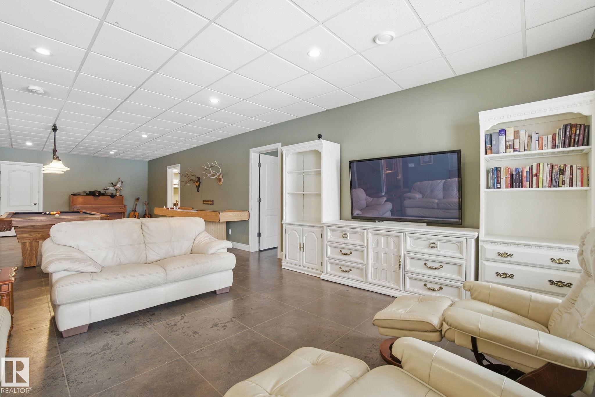 Picture perfect acreage living in this 3600 sq ft bungalow on 10 acres of land with 2 shops south of Stony Plain. Feel at home as you drive the private winding driveway to the huge front porch. Walk in to amazing views of natural through the beautiful west facing windows. Open floor plan with large living room, huge kitchen & perfect breakfast nook. Massive dining room for hosting family & friends! Master suite has it's own living room or quiet area. Bedroom itself is massive with tons of natural light. His & Hers walk in closets. HUGE pc ensuite. 2nd bedroom has it's own ensuite & walk in closet. 3rd bedroom great for kids or guests. Main door den! WALKOUT basement is fully finished with large family room space, games space, theatre room & 2 more bedrooms! Beautiful lot with tons of privacy! Shop 1 is 110'x55' with 200 amp service, multiple overhead doors, reinforced slab, in floor & radiant heat, office & mezzanine & 2pc bathroom. Shop 2 is 40'x60', insulated with radiant heat & gravel floor.
