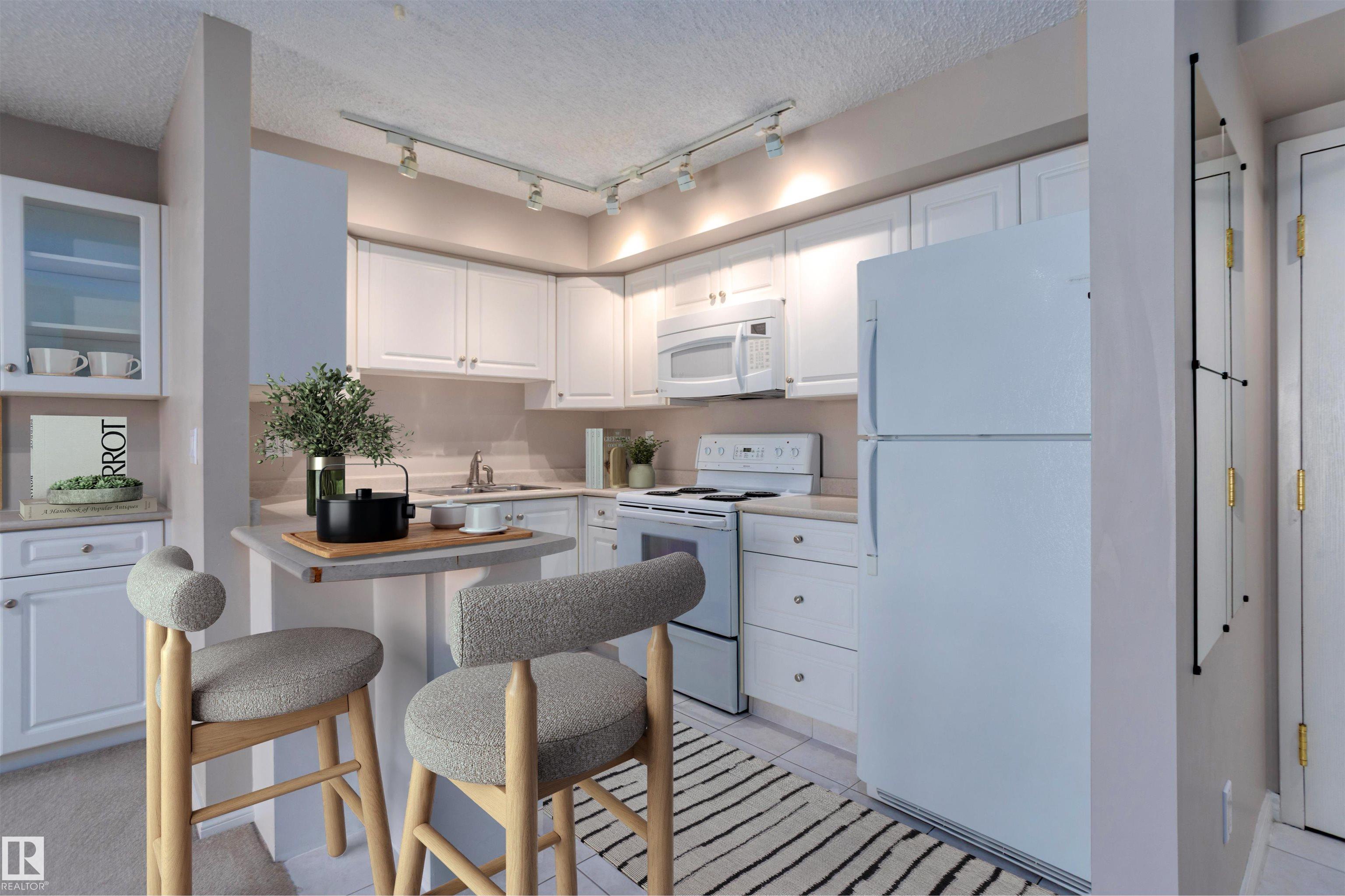 INCREDIBLE LOCATION near Government Station/River Valley - Welcome to Grandin Manor! Views of the river valley, high level bridge, city views & more - south & west facing covered patio. With just over 1044sqft of living space - 2 Bedrooms - 2 Bathrooms - large storage area - 2 Parking Stalls - 1 underground & 1 surface – this is a well-maintained condo that feels like a complete home! Entering the condo you will love the open concept feeling. The spacious kitchen has ample cabinet & counter space & a large dining area. Open to the kitchen is the living room with floor to ceiling windows & gas fireplace. Step outside through the patio doors & fall in love with the view & storage! Back inside the primary bedroom is a great size with double closets & a 4-piece ensuite. The 2nd bedroom is a great size with large windows as well to enjoy the view. A large storage/laundry room & 3-piece 2nd bathroom complete this condo. Close to all amenities, river valley walking trails, , shopping & cafes.
