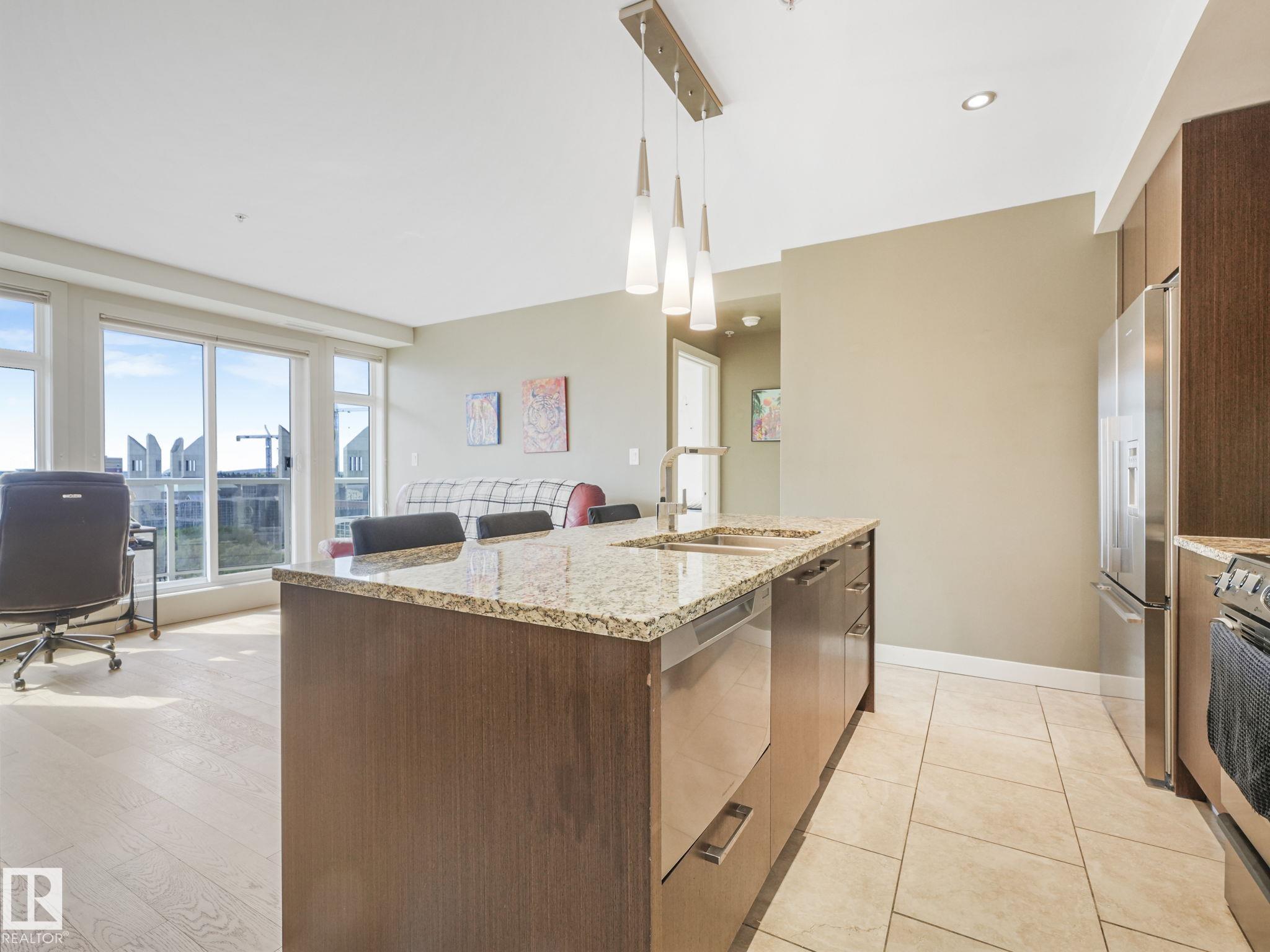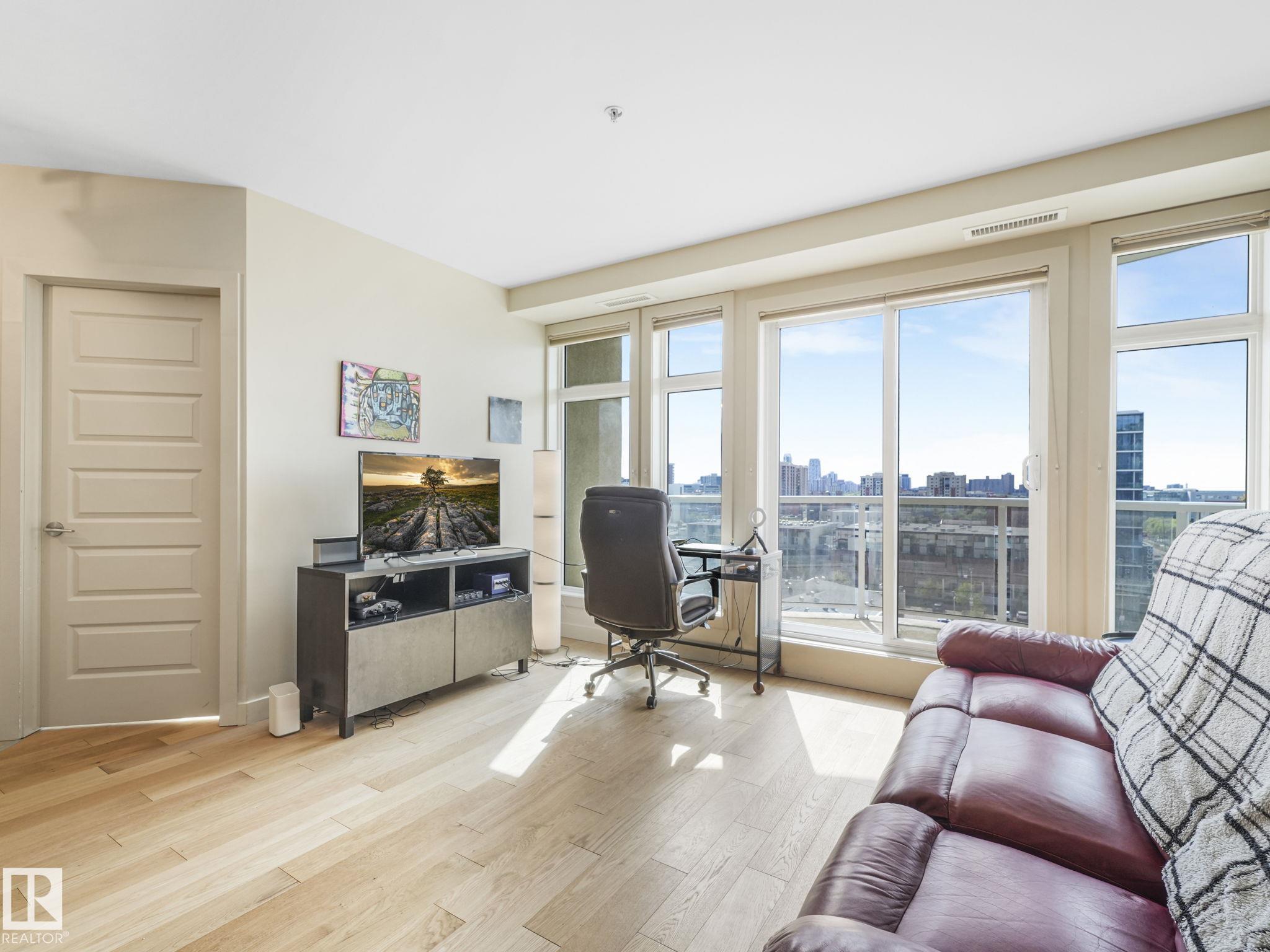 Experience the best of downtown living in this trendy 1 BEDROOM+DEN unit with AIR CONDITIONING at The Quest! Across from Grant MacEwan University and steps to the ICE District, Rogers Place, restaurants, nightlife, and the LRT—quick access to the U of A and more. The modern unit features stylish laminate flooring (no carpet), large windows, and a private balcony with stunning downtown views. The kitchen is a chef’s dream with granite countertops, a full backsplash, stainless steel appliances, and stylish pendant lighting. The bedroom offers a walk-in closet and a dual-access ensuite for ultimate convenience and privacy. Enjoy in-suite laundry, a versatile den - perfect for a study, guest room, or work from home location, secure underground parking, and the added bonus of a PET-FRIENDLY building. Urban living at its best!
