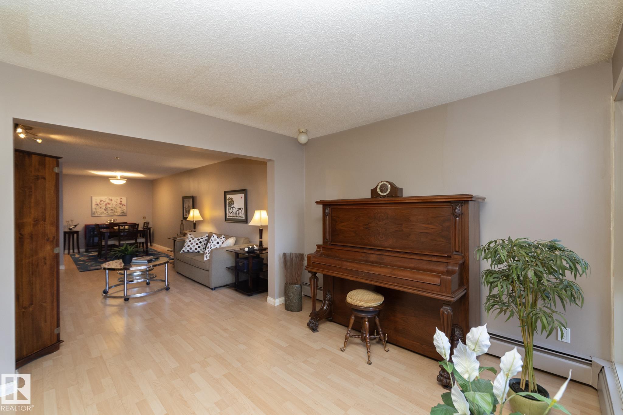 Upgraded and Attractive, 1,179 Sq Ft Two Bedroom, Two full bath condo on a quiet tree lined street just one block north of Earl's Restaurant at 119 Street & Jasper Ave. This ideal location is within walking distance to a wide range of amenities. Various educational institutions are also in the area and accessible by public transit. The floor plan is exceptional with great flow,no wasted space and all rooms generous in size. Some of the key upgrades include kitchen cabinets, counter tops, plank flooring and some newer appliances. Another nice feature not often seen in apartment style condos is the wood burning fireplace. A combination insuite laundry & storage room is well positioned just inside the front entry. Having the convenience of heated underground parking and closely situated to the elevator makes transporting goods to your suite a breeze. Show with confidence!