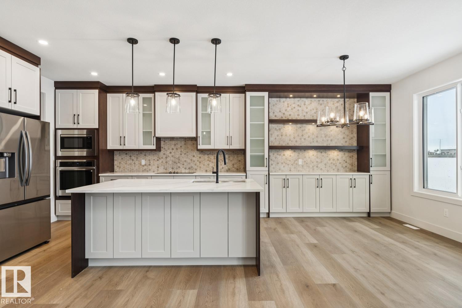 Brand New and finished to perfection! This home has it all, 5 bedrooms, 3 bathrooms, SPICE KITCHEN, OPEN TO BELOW IN LIVING ROOM and SIDE SEPARATE ENTRANCE. This home features beautiful luxury vinyl plank, upgraded plumbing, lighting and more. The functional layout offers a bedroom on the main level which can also be used as a den, a full bath, generous dining area, huge living room with fireplace and a breathtaking kitchen. The custom kitchen features soft close cabinets, quartz countertops and fully equipped with stainless steel appliances. Not to forget, the kitchen also includes a spice kitchen that walks through to the mudroom. The upper level is where you will find the additional 4 bedrooms, 2 full bath, bonus room and laundry. The primary bedroom is absolute stunning and includes its own walk-in closet and beautiful 5pc ensuite with his and her sinks. This home includes a double attached garage and comes with New Home Warranty. This is a must see.