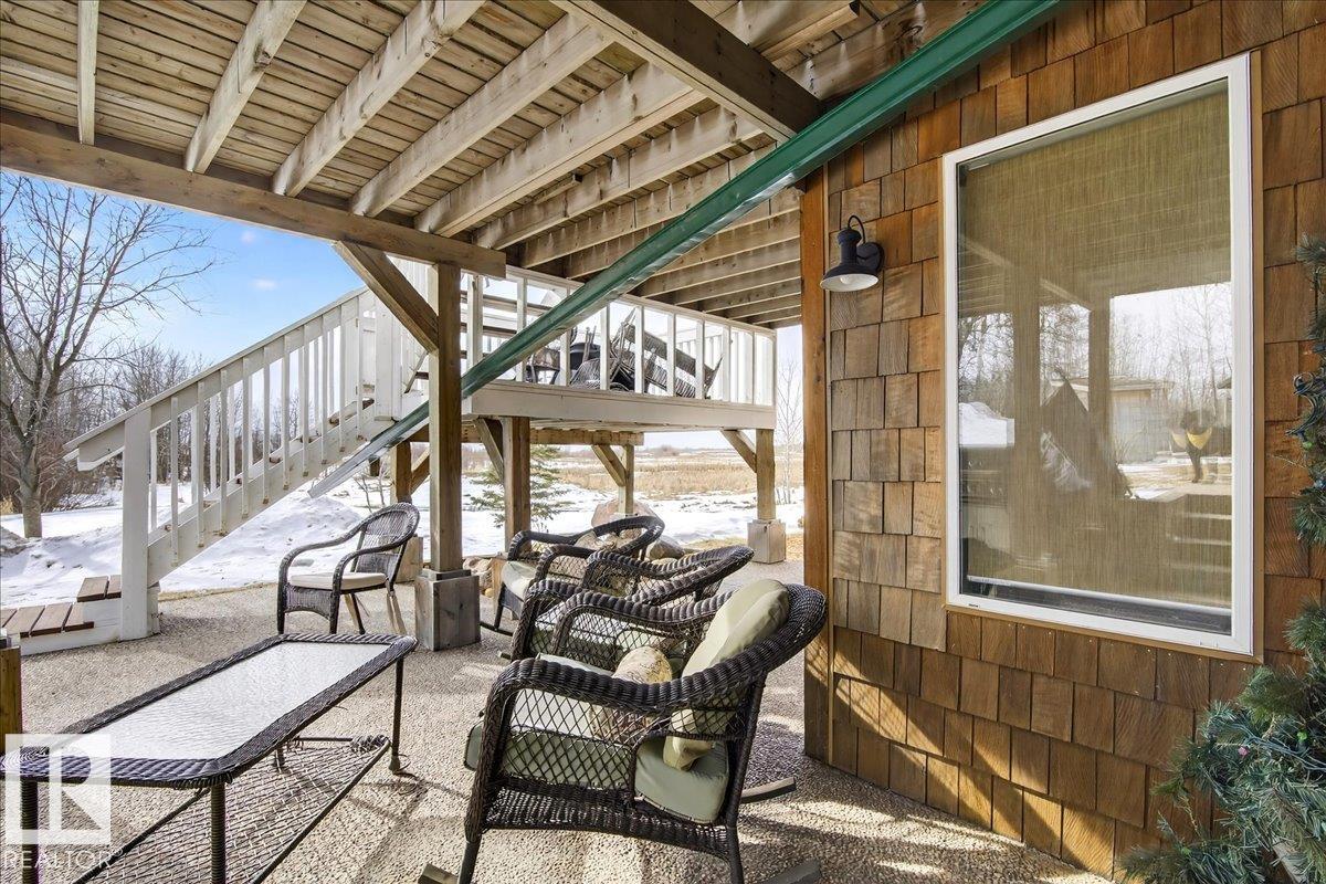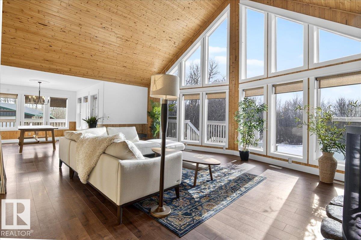 Rare opportunity for 5.9 acres of rolling, private land complete with a tree-lined driveway and a SECONDARY SUITE! This versatile acreage offers: 1,805 sq ft home with a 864 sq ft fully finished 220V metal-clad shop, and a 650 sq ft auxiliary building with swim-spa, 3 pc bathroom and in floor heating! The home itself is the epitome of rustic elegance with main floor features such as: vaulted ceilings, expansive windows, quartz countertops, large pantry, under-cabinet lighting and a river-stone wood-burning fireplace. Enjoy a wraparound porch, multi-tiered deck, aggregate walkways, and walkout basement with a self-contained walkout suite for family or guests facing a private pond! Additional features include a secondary rec building with in-floor heat and plumbing, plus acres of gorgeous country side suited for hobby or recreational use. This private property has it all in the perfect amount of space; a rare combination of comfortable living, workspace utility, and in within a quick drive to Beaumont!