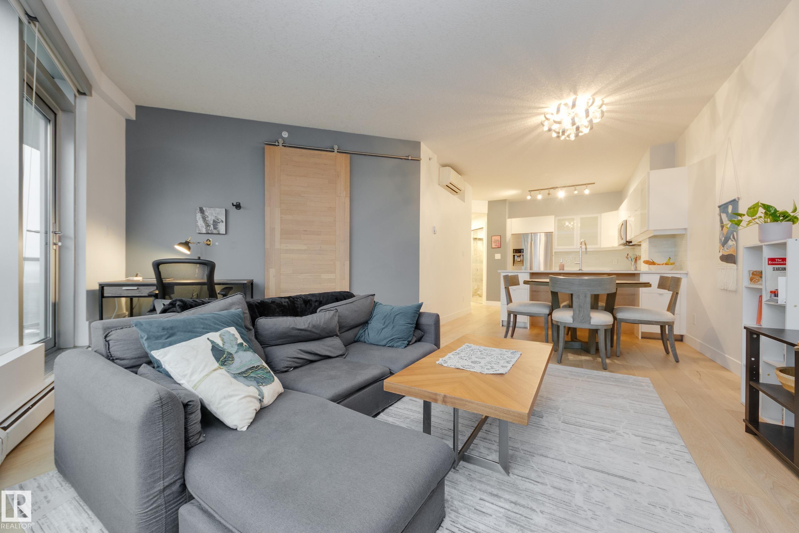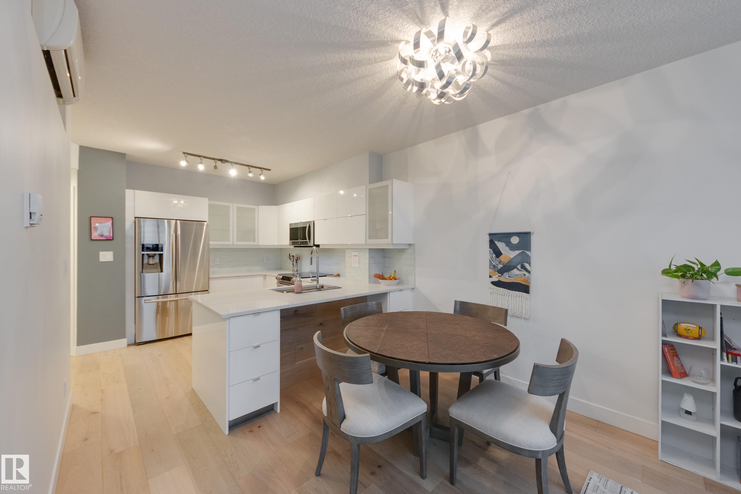Finally—a renovated 104th Street condo! Tired of looking at listing after listing of dated, contractor-grade kitchens and flooring? You’re in luck. This south-facing 20th-floor unit has been fully renovated and features over 850 square feet of high-end finishes. Beautiful wide-plank oak hardwood runs throughout the 2-bed, 2-bath layout. The large kitchen showcases new cabinets for extra storage, white quartz countertops, and stainless steel appliances. The dining area is spacious enough for a table plus bar seating, and the living room is complete with a million-dollar panoramic view of the city. The primary bedroom features a 4-piece ensuite with modern tile and a walk-in closet. A generous second bedroom offers the flexibility for either a roommate or a home office. An additional 3-piece bathroom, in-suite laundry, air conditioning, and heated secure parking complete the package. Located on downtown’s most historic street, you’re just steps away from food, coffee, and events. Come see it for yourself!