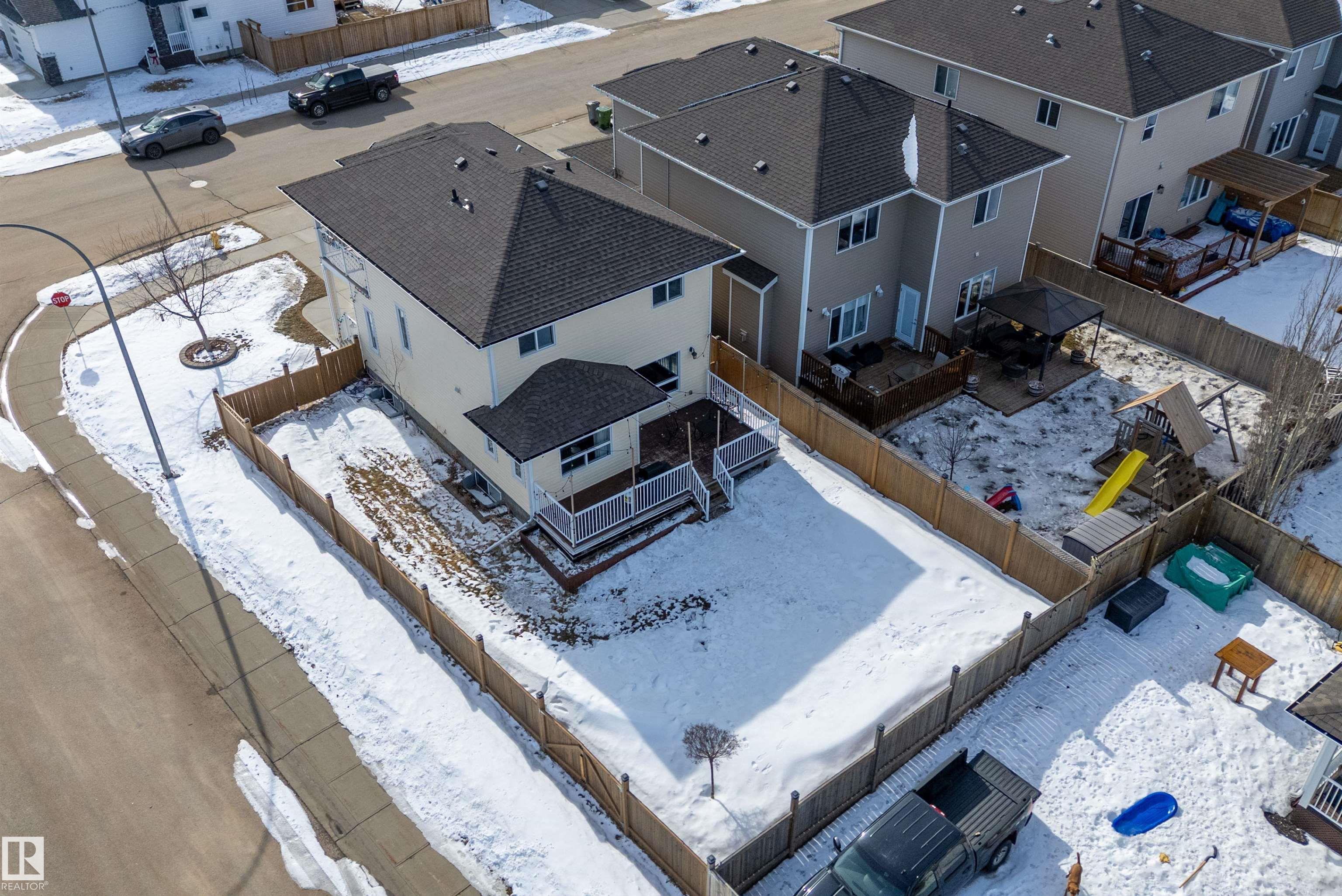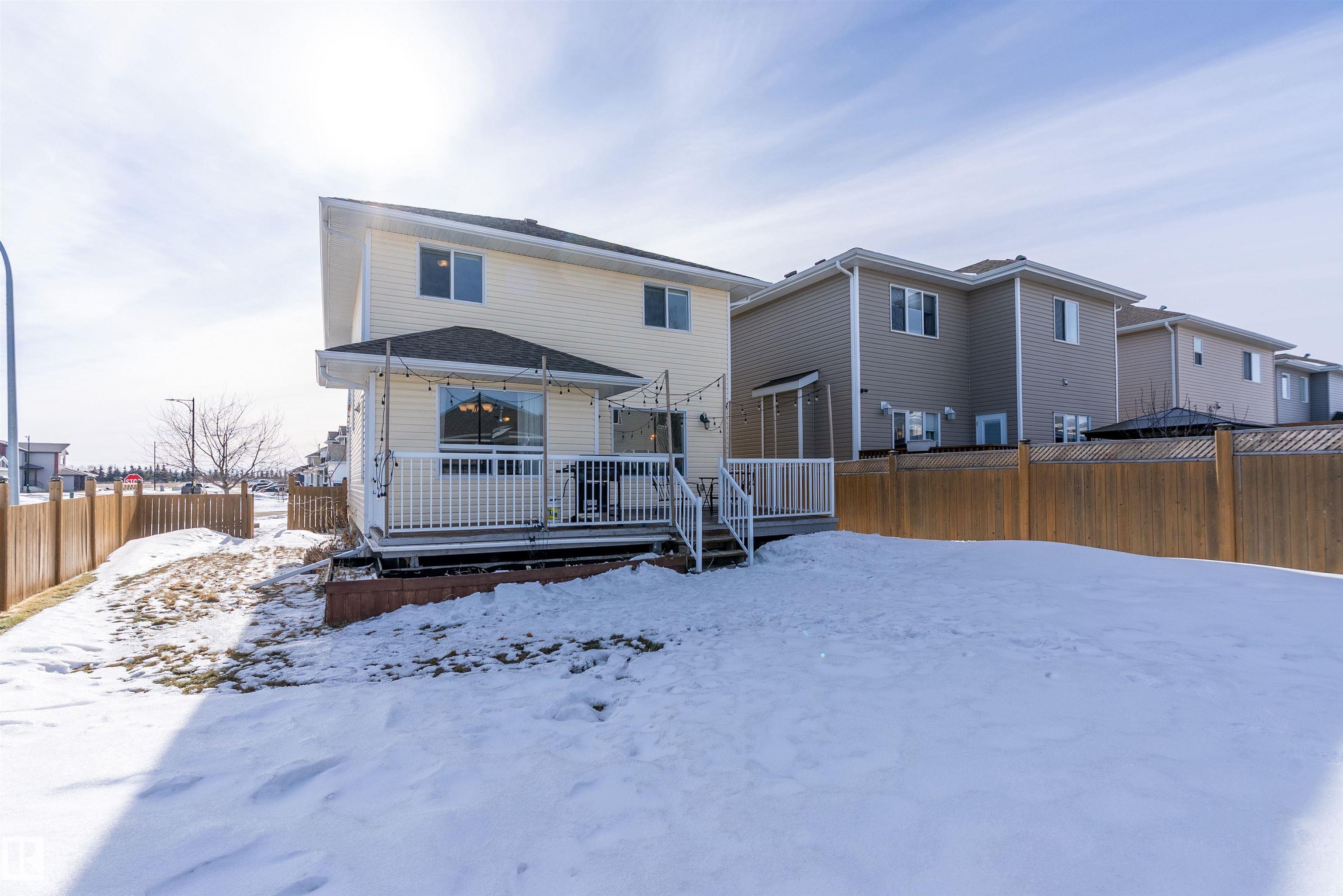 Great location to this 2 story located in Notre Dame Estates. 3 Bedrooms 3.5 Bathrooms open concept Kitchen with separating eating nook, walk in pantry and island. Large windows in Living room to a nice size yard with deck plus fully fenced with gate for RV Parking. Upstairs you will find 3 spacious bedrooms 4pc bathroom plus 3pc ensuite and walk in closet. There is beautiful private balcony off the master bedroom to enjoy those beautiful summer evenings. Basement is finished with another 4pc bathroom, family room and utility room. Located in Morinville just 18 minutes to CFB Edmonton plus close to schools, parks, shopping and Morinville Leisure Center.
