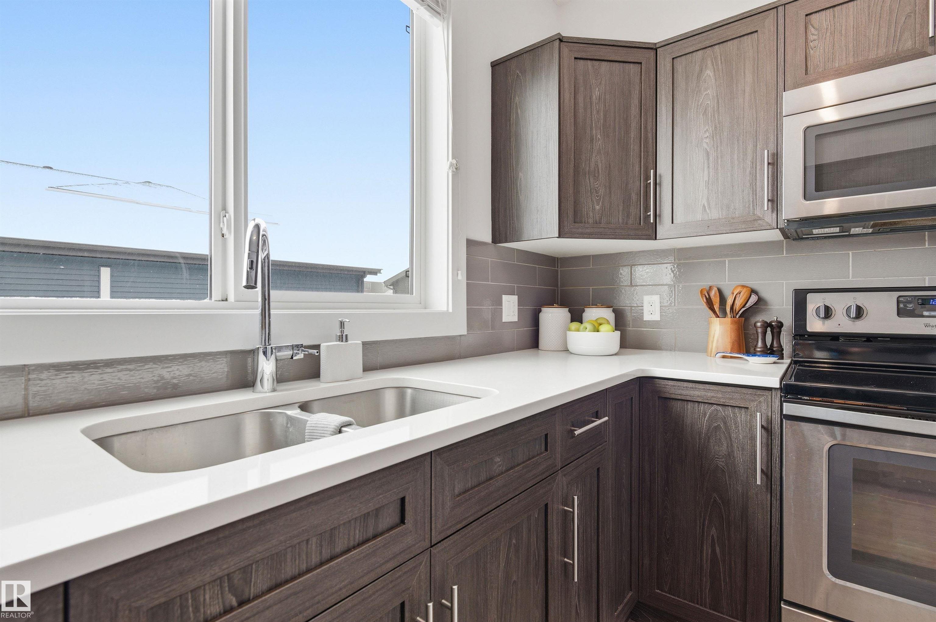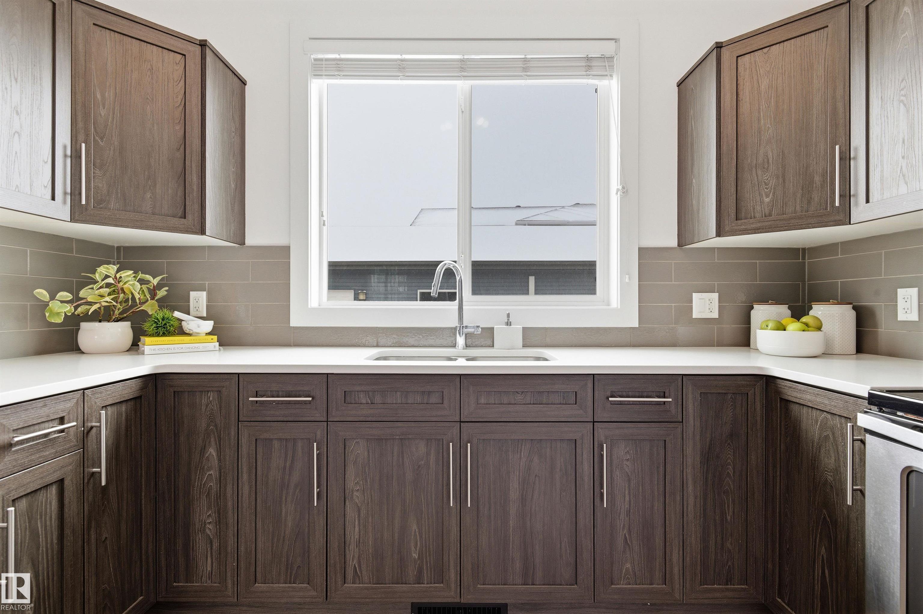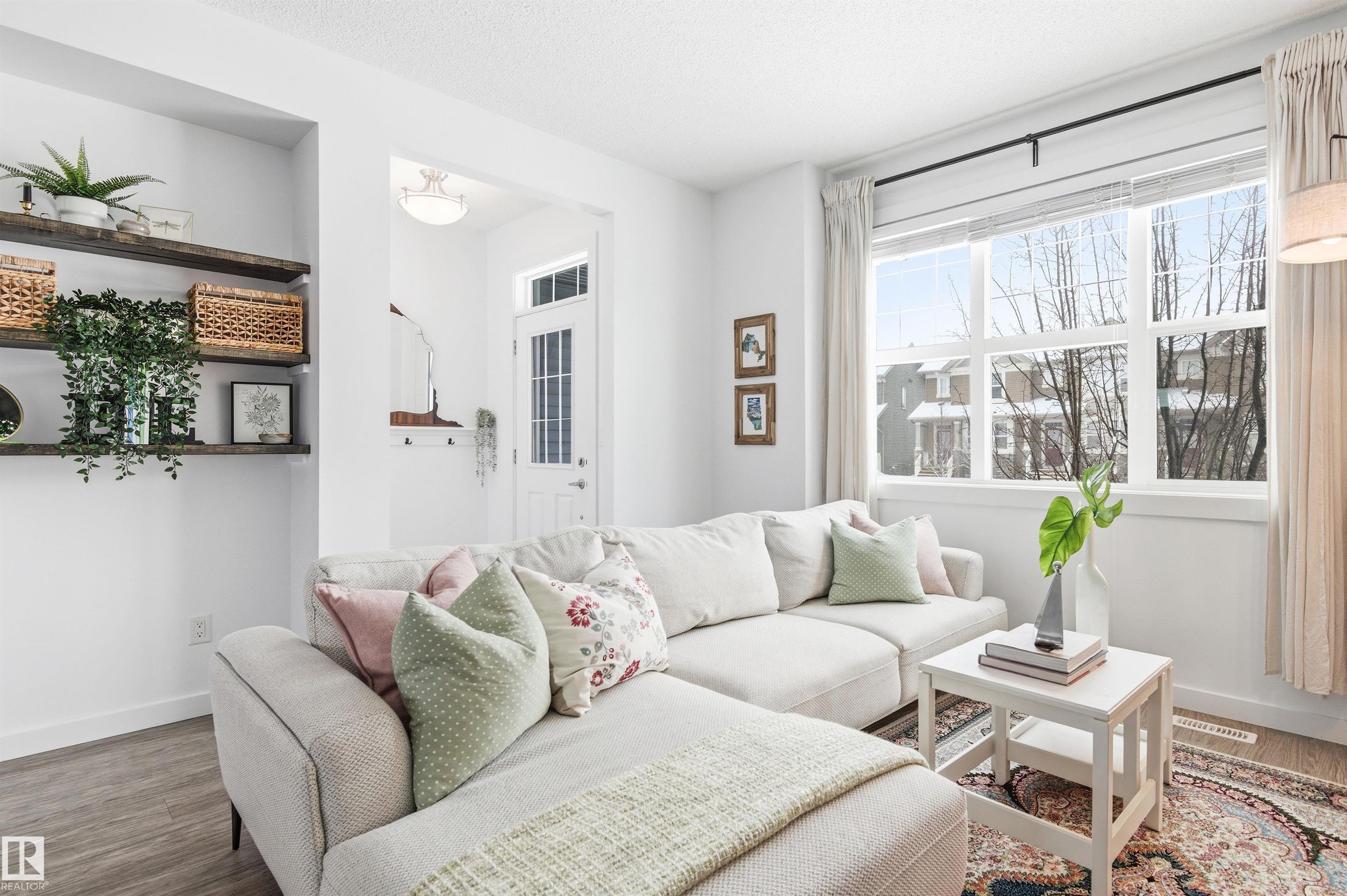 Stylish and functional attached townhouse-style home in a highly convenient Southwest Edmonton location! Offering over 1,400 sq ft of well-designed living space, this property features a bright and open main floor with a spacious living room, dedicated dining area, and a practical kitchen complete with pantry and access to the sunny south-facing backyard. Upstairs, you’ll find a generous primary bedroom with walk-in closet and ensuite, a second bedroom, full bathroom, and a versatile den/office space perfect for working from home. Enjoy everyday comfort with AIR CONDITIONING, plus the added value of a DOUBLE GARAGE and NO CONDO FEES. The sunny south backyard is ideal for relaxing or entertaining. Located close to schools, parks, shopping, and major commuter routes, this is an excellent opportunity for first-time buyers or young families seeking a move-in-ready home in a prime SW location!