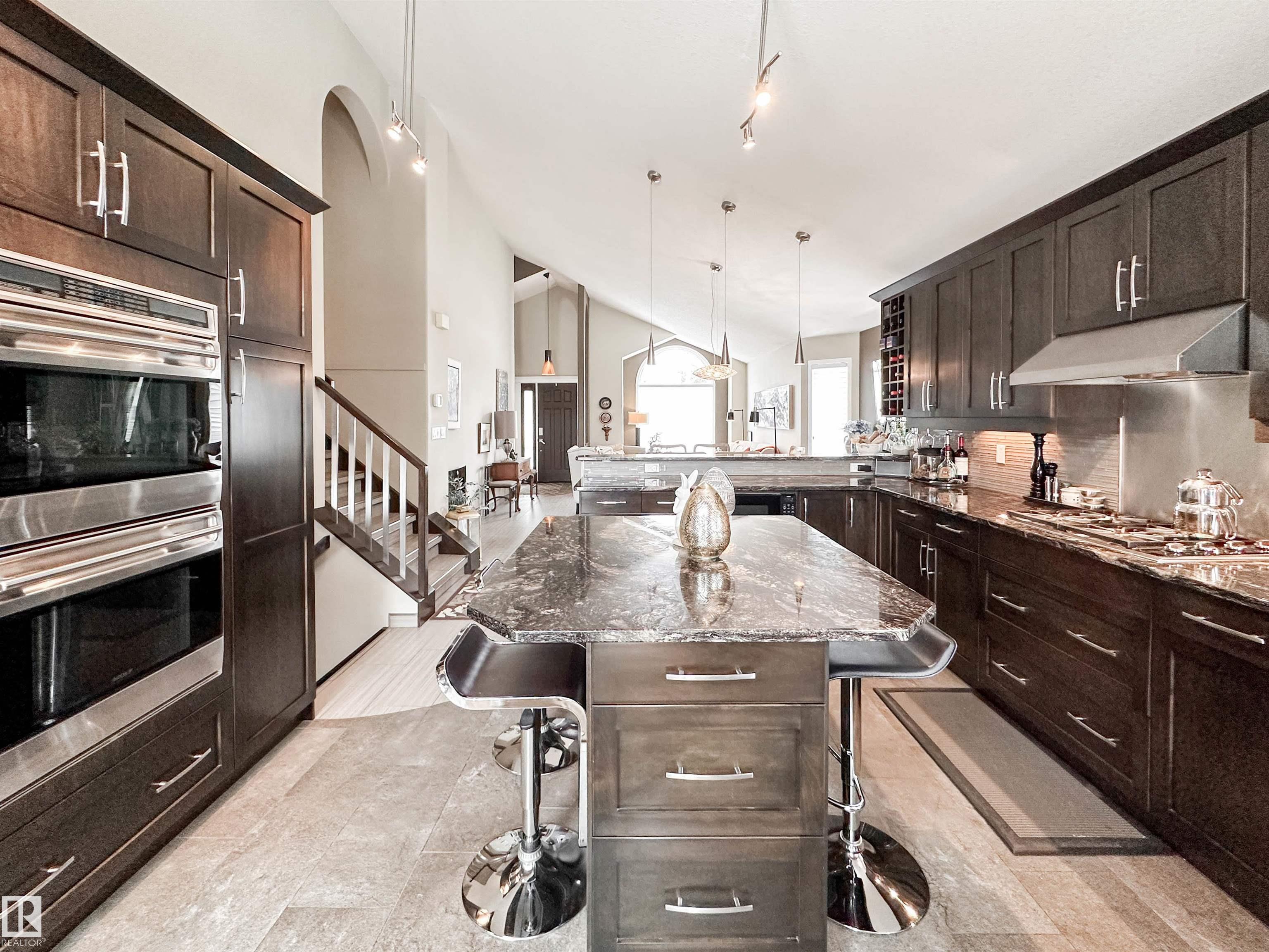 Beautifully renovated 4 level split offering 4 bedrooms & 3 full bathrooms in a quiet, family-friendly neighbourhood near trails, schools, & parks. The main floor features an open-concept layout w/soaring vaulted ceilings, a formal living room, dining area with built-in buffet, and a fully renovated chef’s kitchen with upgraded appliances, ideal for entertaining & creating a welcoming, relaxed atmosphere throughout the home. Upstairs includes 3 bedrooms, a 4-piece main bath, and a primary suite with a 3-piece ensuite. The third level adds a fourth bedroom, another 3-piece bath, and a bright family room with a gas fireplace & wet bar with custom cabinets, plus direct access to the double garage. The basement offers a rec room, laundry, and ample storage. Enjoy the beautifully landscaped backyard with a 2-tier deck, pergola, & garden shed. Ideal for young couples, families, or those looking to downsize in comfort & style. Add’l updates include HWT (2022), furnace & roof (2010). Garage is equipped with 220V.