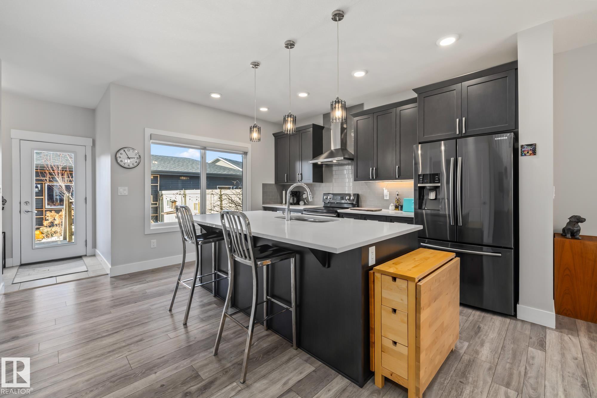 Wake up to serene pond views from this stunning, move-in ready 2-storey home in the quiet community of Keswick. Whether seeking your dream home or a turnkey investment property in Edmonton, this bright 3-bed, 2.5 bath retreat beautifully blends style and comfort. Inside, natural light highlights the open-concept living space and elegant spindle staircase. The chef’s kitchen boasts elevated espresso cabinets, crisp quartz counters, a center island, and a large pantry, flowing into an inviting living room anchored by a modern fireplace. Upstairs, unwind in the spacious primary suite with a beautiful glass shower ensuite. The unfinished basement offers incredible potential. Outside, your private, fully fenced backyard awaits, featuring a tiered deck, double detached garage, and beautifully landscaped. On clear nights, you can even catch the magic of the Northern Lights right from your deck! Enjoy nature with the river valley just a 7 minute bike ride with all amenities and schools just minutes away.