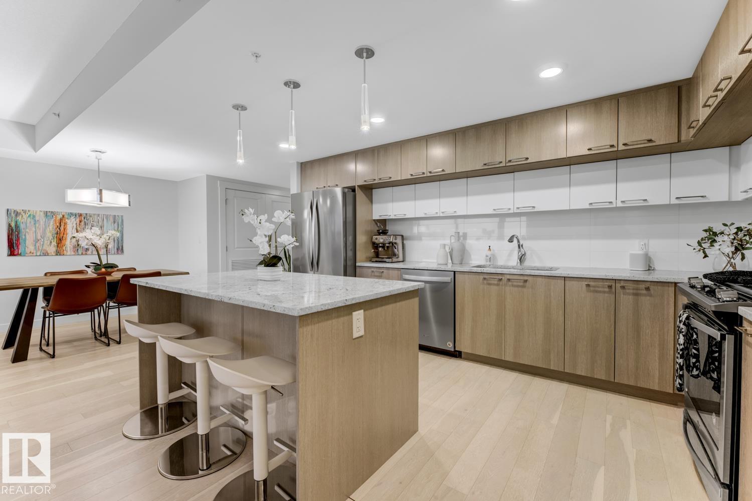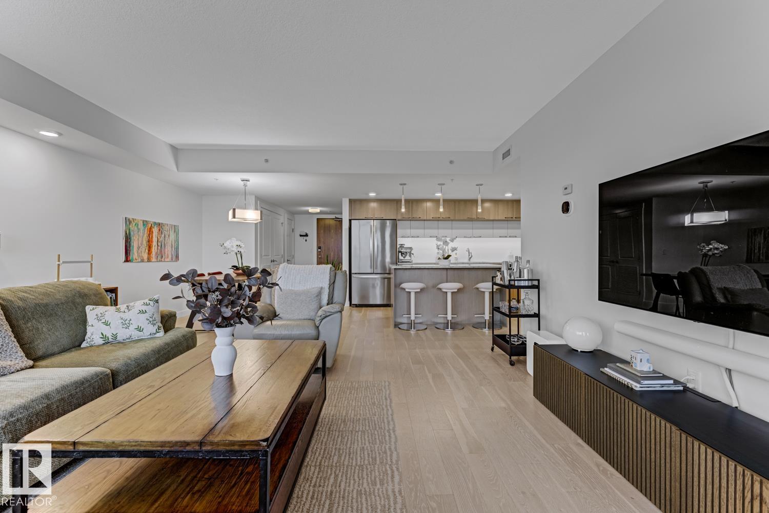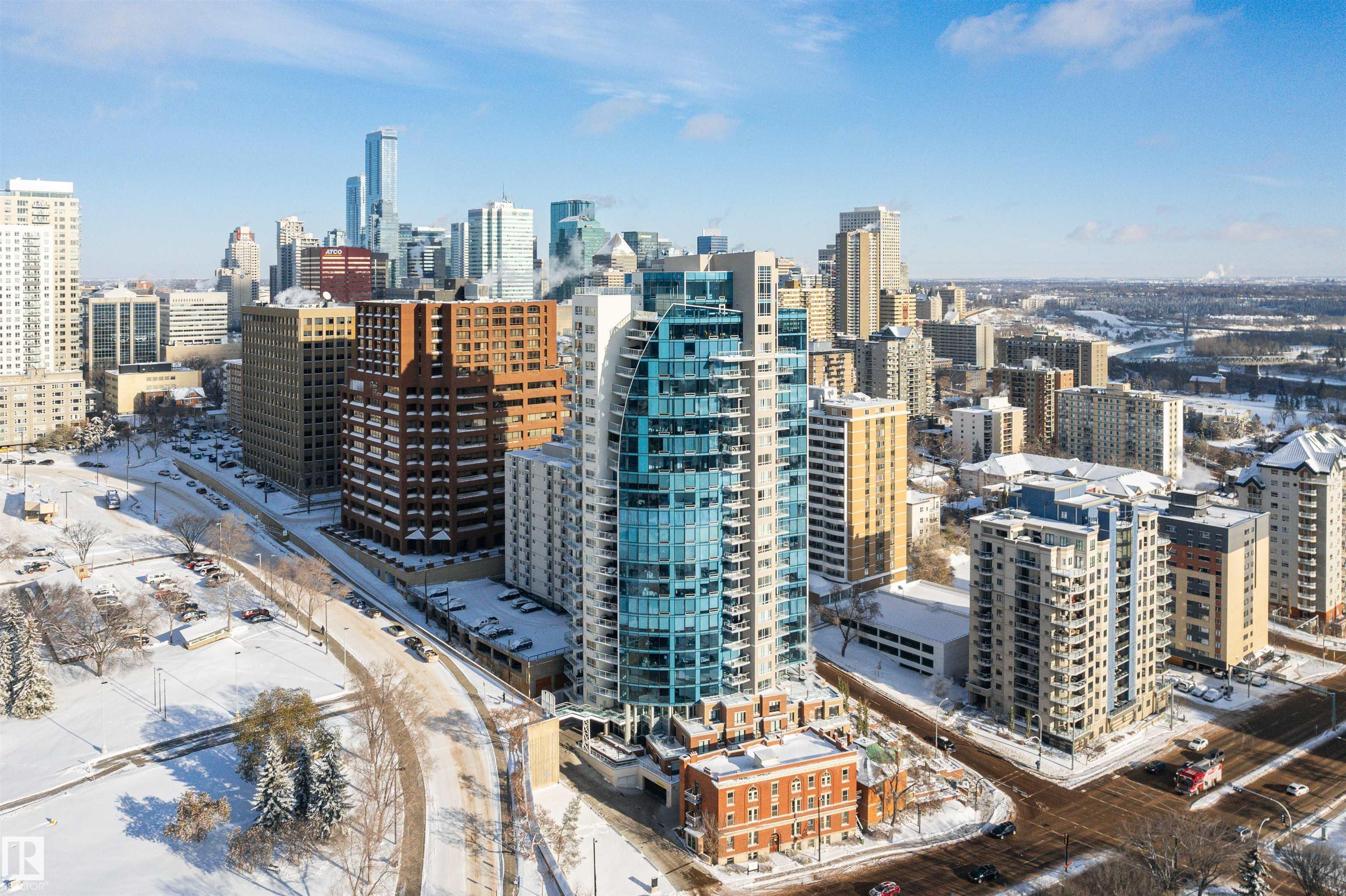 Set in prestigious Symphony Tower, this impressive 2-bed, 2-bath condo offers an elevated lifestyle in one of downtown Edmonton’s most desirable locations. Perfectly positioned along edge of the Alberta Legislative Grounds, this residence combines style, comfort, & convenience. The open-concept design features a beautifully appointed kitchen with a large island, two-tone Kitchen Craft cabinetry, pendant & recessed lighting, & stainless steel appliances including a gas range. Porcelain tile, engineered brushed hardwood, central A/C, & dramatic floor-to-ceiling glass curtain walls create a bright & polished living space. Enjoy stunning views from 2 glass balconies, from the Walterdale & the Legislature to the Muttart Conservatory, along with outstanding building amenities including a fitness facility, social room with kitchen, 4th floor outdoor patio, & secure heated underground parking with keyless entry & car wash. Enjoy upscale condo living just steps from downtown, parks, golf & the river valley.