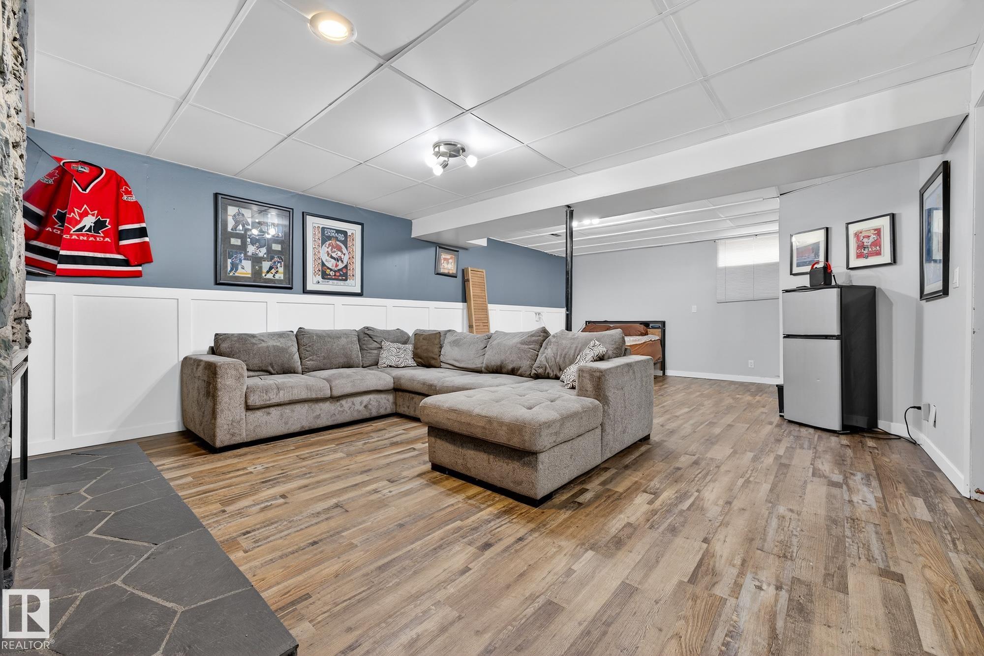 Welcome to this charming family home in Brentwood, at the heart of Sherwood Park! This well-maintained bungalow offers over 1,100 sq ft above grade with 3 bedrooms and 2 bathrooms. The bright main floor features a spacious living room with gorgeous feature wall & wood-burning fireplace, new kitchen, and comfortable bedrooms. The fully finished basement boasts a massive family room, a den that could be converted to a bedroom by upgrading the window size, and an electric fireplace. Situated on a fully fenced lot with no back lane, you’ll enjoy privacy and convenience close to schools, parks, shopping, and transit. The oversized, insulated double detached garage plus lengthy driveway provides ample room for vehicles, and RV, and toys. Upgrades include central A/C, new furnace & hwt, vinyl windows, vinyl plank flooring, upgraded insulation, and new kitchen & bathrooms. Bonus features like a gazebo and two storage sheds complete the package. A fantastic opportunity in a mature, family-friendly neighborhood!