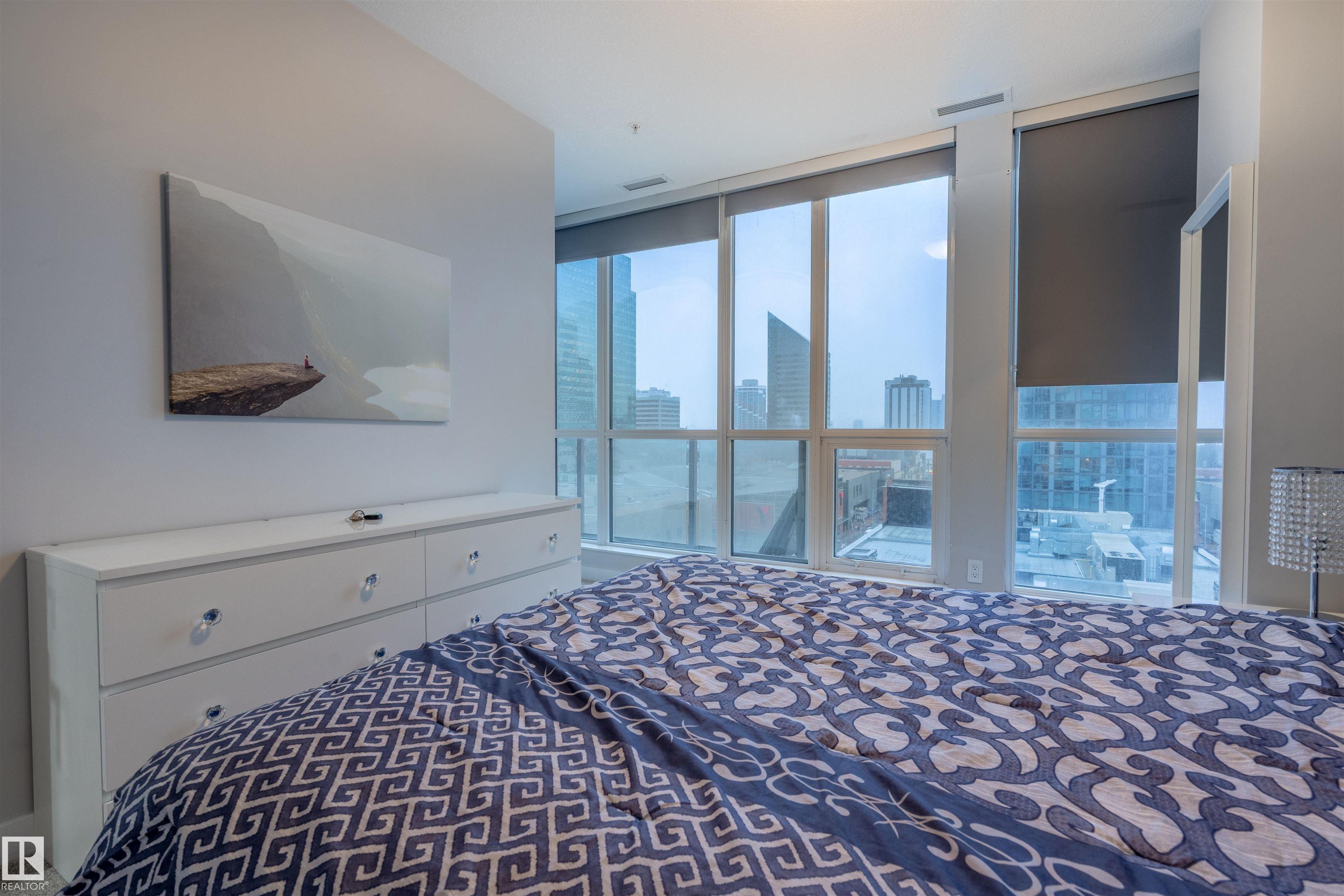 Perched high on the 9th floor of the sought-after Ultima, this stylish 2-bedroom condo offers breathtaking downtown city views through expansive FLOOR-TO-CEILING windows. This modern CORNER unit features an open-concept layout with a sleek kitchen that is equipped with contemporary cabinetry, quartz countertops, and stainless steel appliances, seamlessly flowing into the bright living and dining space—perfect for entertaining or relaxing while enjoying the skyline. Both bedrooms are well-sized, with the primary offering generous closet space and easy access to a beautifully finished bathroom. IN-SUITE LAUNDRY adds everyday convenience, while the private balcony provides the perfect spot to unwind and take in the vibrant city atmosphere. Residents of Ultima enjoy PREMIUM AMENIIES including a FITNESS CENTRE, SOCIAL ROOM, and CONCIERGE SERVICE. Situated in the heart of downtown, you’re just steps from Rogers Place, restaurants, shopping, and transit. Ideal for professionals or investors alike.