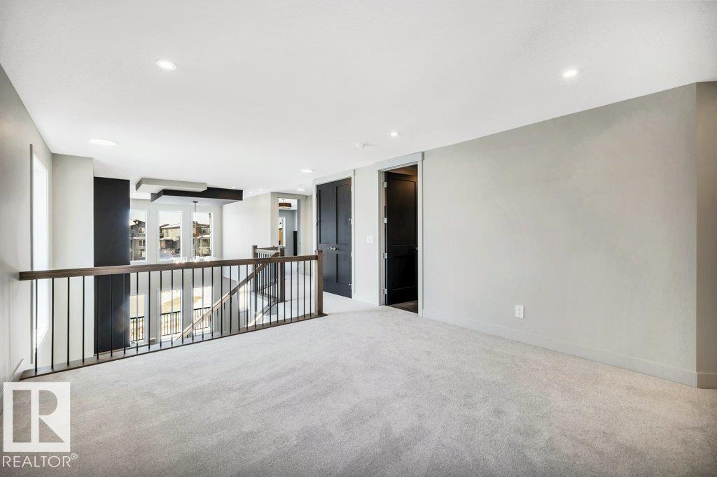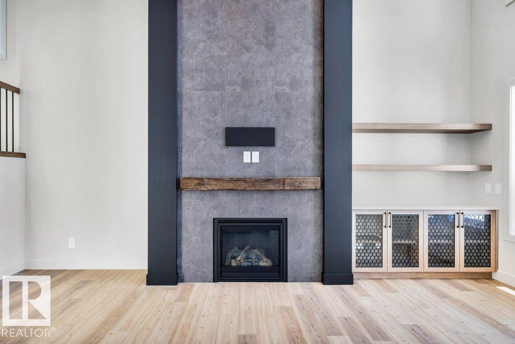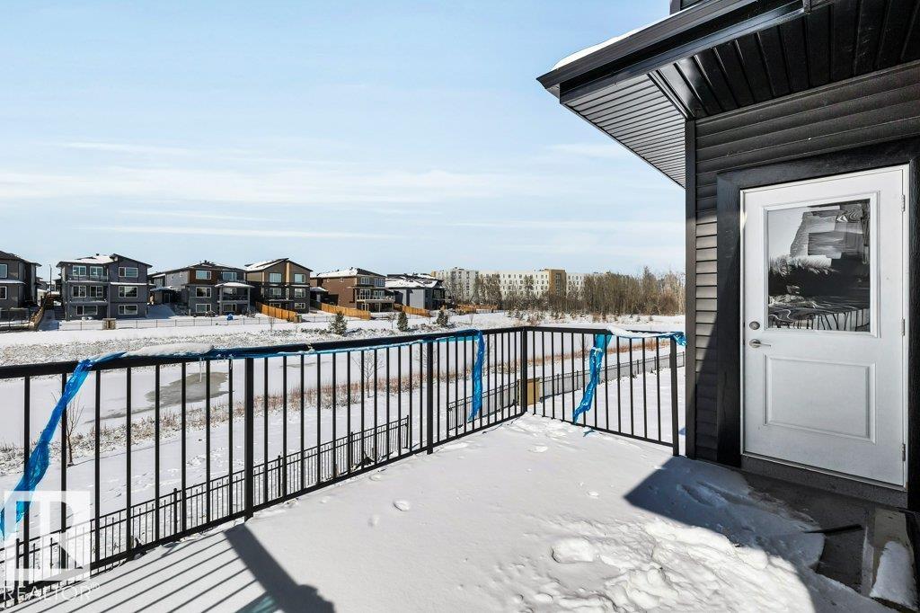 Welcome to this exquisite two-story walk-out home backing a pond built by Homexx. The main floor features an open-concept layout, ideal for entertaining. The chef-inspired kitchen boasts a large island, custom cabinetry, stainless steel appliances, and overlooks the dining area and great room. Upstairs, you'll find four spacious bedrooms, a bonus room with a vaulted ceiling, a laundry room, and two bathrooms. The primary bedroom is bright and airy, offering a 5-piece ensuite with a separate shower and tub, plus an impressive walk-through closet leading to the laundry. Additional highlights include quartz countertops, elegant lighting, luxury vinyl plank flooring, a gas fireplace, 8-foot interior doors, stylish railings with wrought iron spindles and 200 amp service. With excellent curb appeal, a double oversized attached garage, and proximity to walking trails this home has it all.