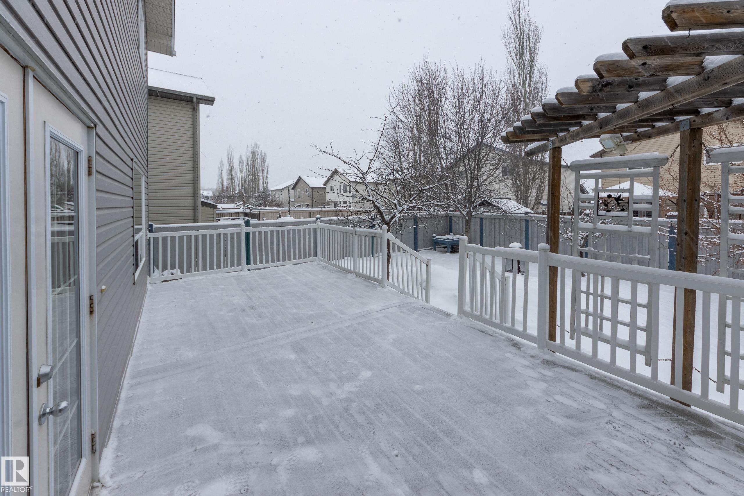 Excellently maintained 2-storey in Lakewood offering 1,893 sq ft of bright, functional living space in a fantastic location! This well-cared-for home features a spacious entryway and 2pc bath, open concept living, kitchen island with corner pantry, and cozy LR gas fireplace. Upstairs, 3 spacious bedrooms include a comfortable primary retreat with full ensuite and w/i closet. The large, sunny bonus room with vaulted ceiling creates an airy, inviting space perfect for relaxing. Separate upper laundry room! Spacious bsmt features great layout for future dev. Step outside to enjoy the low maint composite deck and backyard patio, ideal for summer BBQs or evenings around the firepit. Thoughtful updates include shingles (2020), HWT (2022), driveway polyurethane inject (2022), and new sump pump (2025), along with central A/C for year-round comfort! Situated near a scenic pond, playground and Lakewood Park feat skating rink, this home combines lifestyle, location, and pride of ownership in one exceptional package.