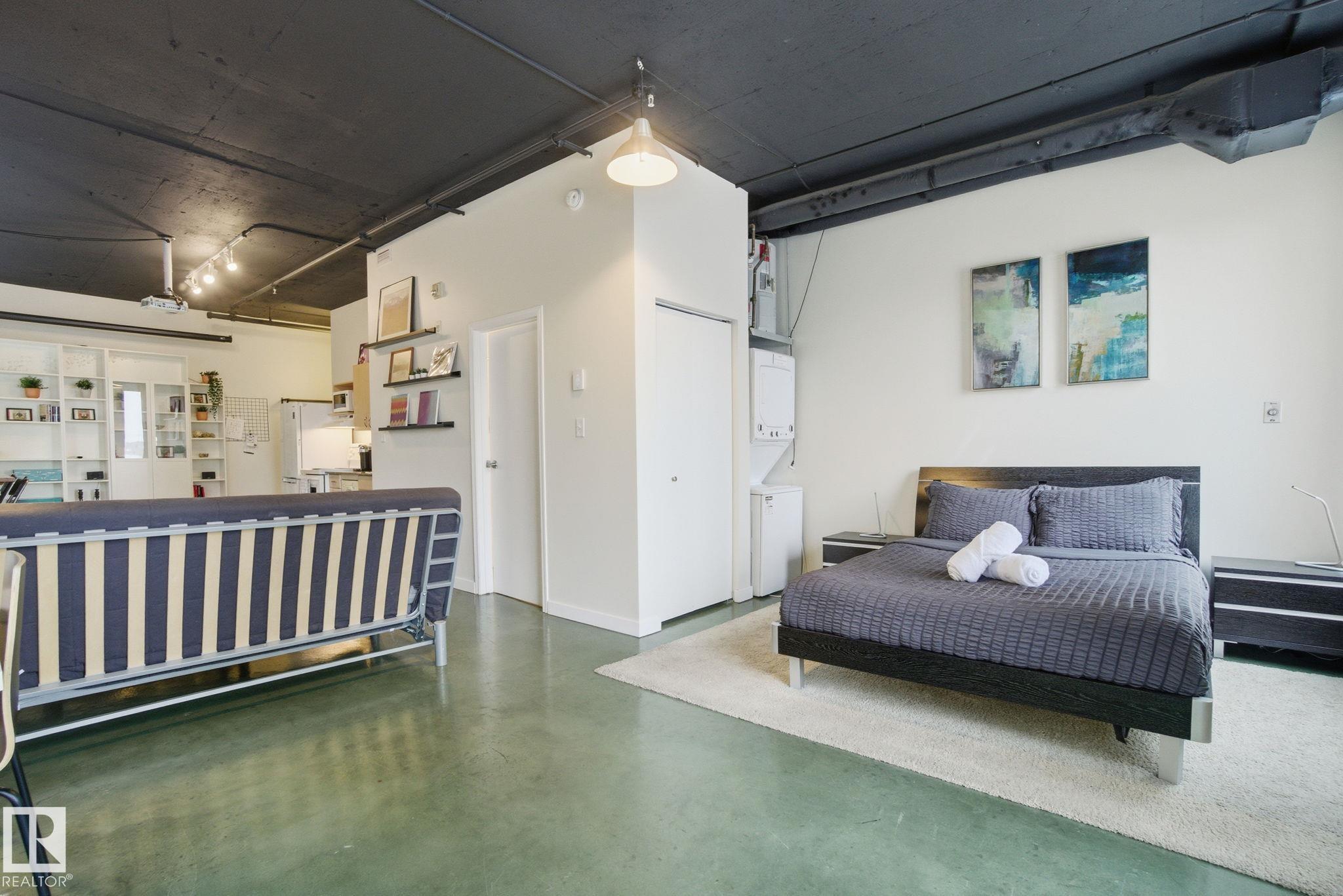 2-bedroom corner loft in the Cambridge Lofts, ideally located in the heart of downtown! This open-concept unit features 10 ft ceilings, polished concrete floors, and large windows providing an abundance of natural light throughout. Functional layout with seamless flow between kitchen, dining, and living spaces, plus in-suite laundry for added convenience. Unbeatable location with direct indoor access to the LRT and nearby office towers, bus stop at your doorstep, and walking distance to the river valley, Funicular, Ice District, Rogers Place, shopping, dining, and more. Ideal for first-time buyers, professionals, or investors seeking strong rental potential in a prime downtown location.