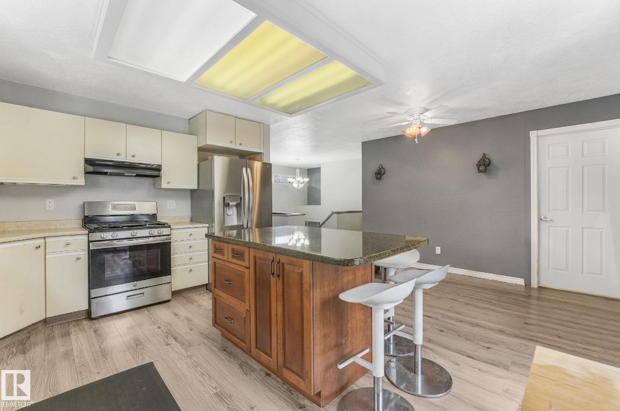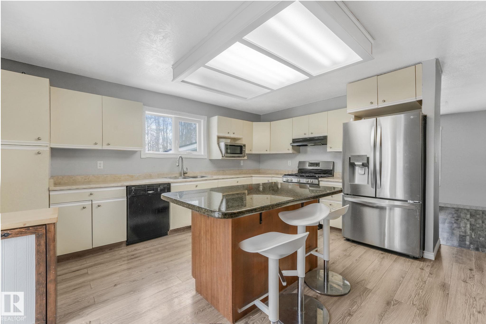 BACKING THE LAKE and set on a quiet, private, treed lot, this beautifully updated 4-bedroom bi-level with walkout basement sits at the end of a freshly paved driveway in sought-after Marrakesh. Surrounded by rolling hills and mature trees, enjoy a massive west-facing deck, firepit area, and direct access to groomed trails leading to the lake—perfect for year-round use. Inside offers bright, open living spaces with extensive upgrades including new laminate and vinyl plank flooring, fresh paint, gas stove, appliances, and a rebuilt $15,000 boiler system. The kitchen features a newly powered island, while the primary includes a 2-piece ensuite. The main bathroom showcases a new vanity and walk-in shower. Additional upgrades include triple-pane windows (2023), new garden doors to the deck, thermostat, insulated garage doors, radiant garage heat, gas BBQ line, central vacuum (2025), and serviced tank and pump. Acreage living just minutes from the city.