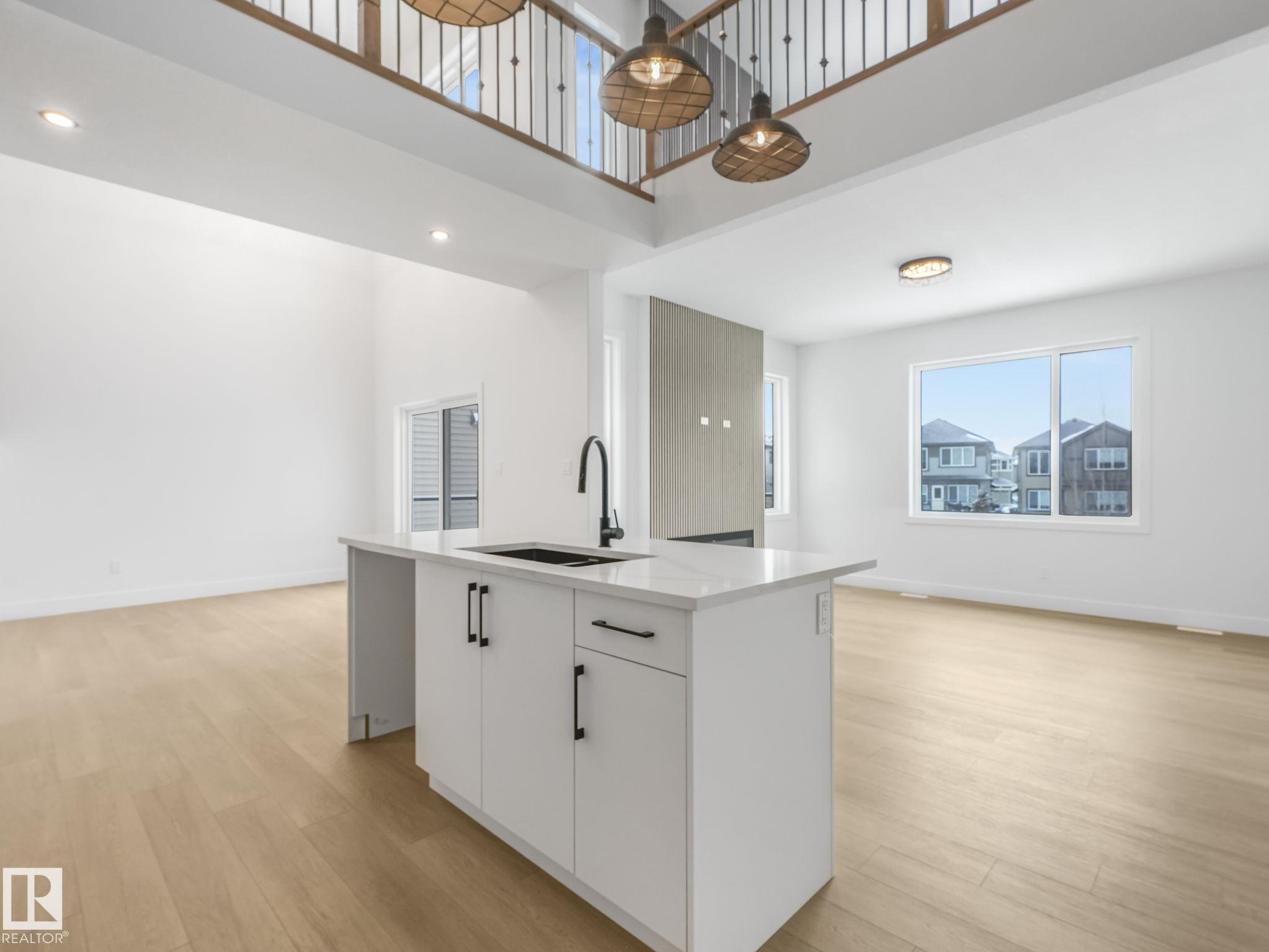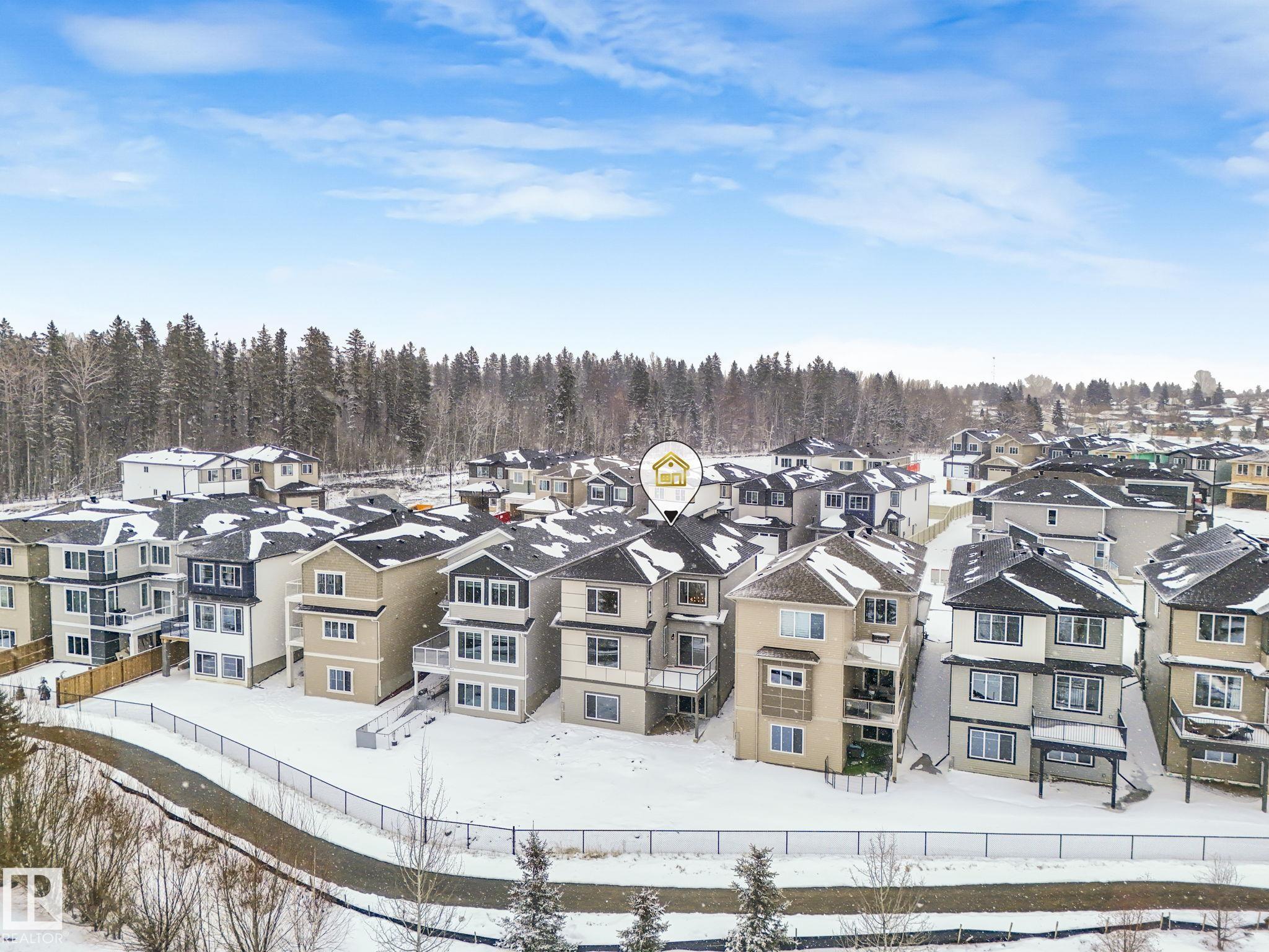 Welcome to this exceptional brand new residence in the highly desirable McLaughlin community of Spruce Grove, perfectly positioned backing onto a picturesque ravine with a walkout basement and expansive windows that capture the natural setting. Thoughtfully designed, the main level features a full bedroom and a full bathroom with a standing shower—ideal for guests or multi-generational living—along with a distinctive step-down living room with a fireplace that adds warmth and character, while the open-to-below dining area and kitchen create an impressive sense of space and natural light. The mudroom is enhanced with a convenient pet shower for added functionality. Upstairs offers a spacious bonus room with a second fireplace, three generously sized bedrooms, and a well-appointed primary suite complete with a walk-in closet and a luxurious 5-piece ensuite. Complete with a double attached garage, this home offers a refined balance of upscale finishes, thoughtful design, and an exceptional views.