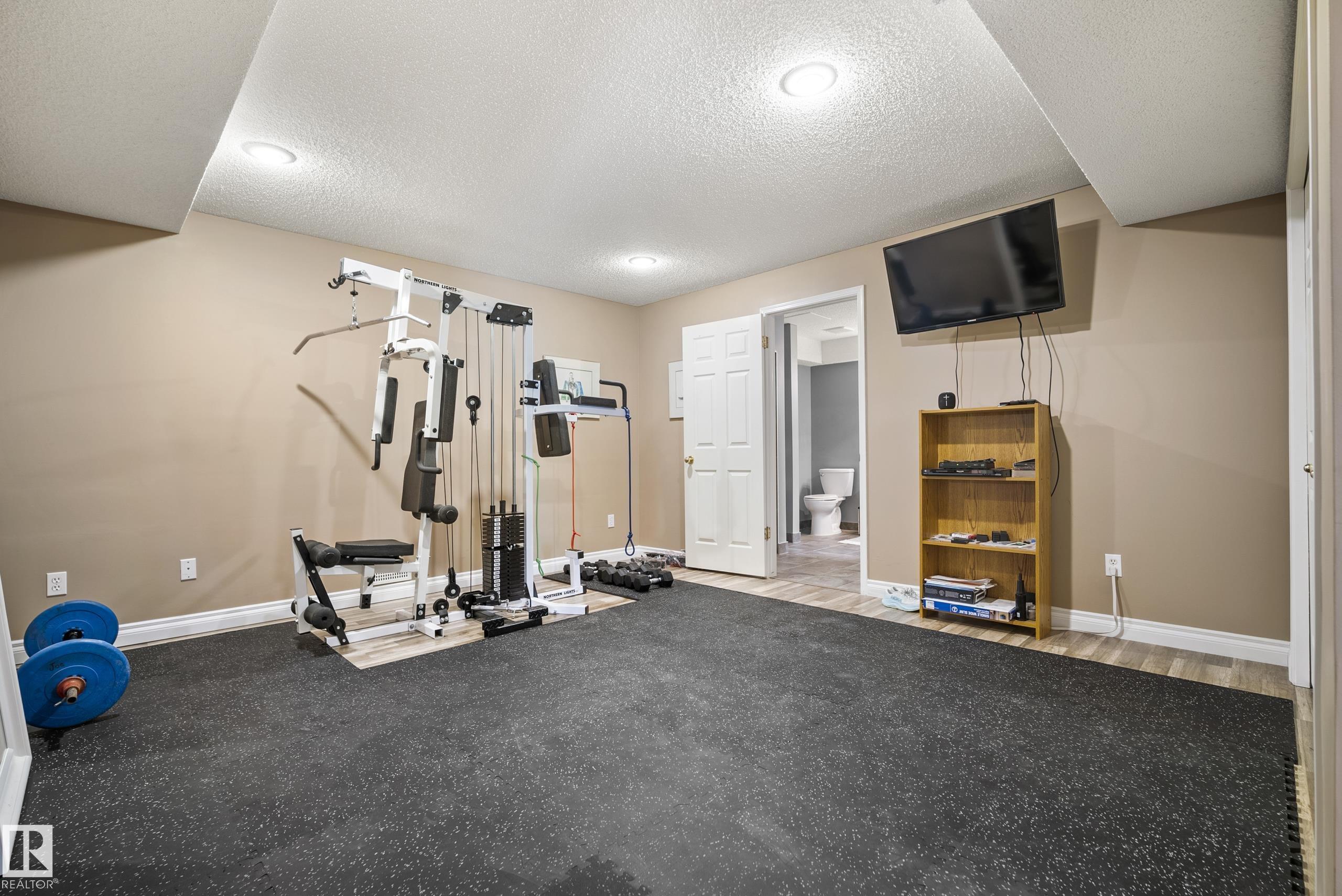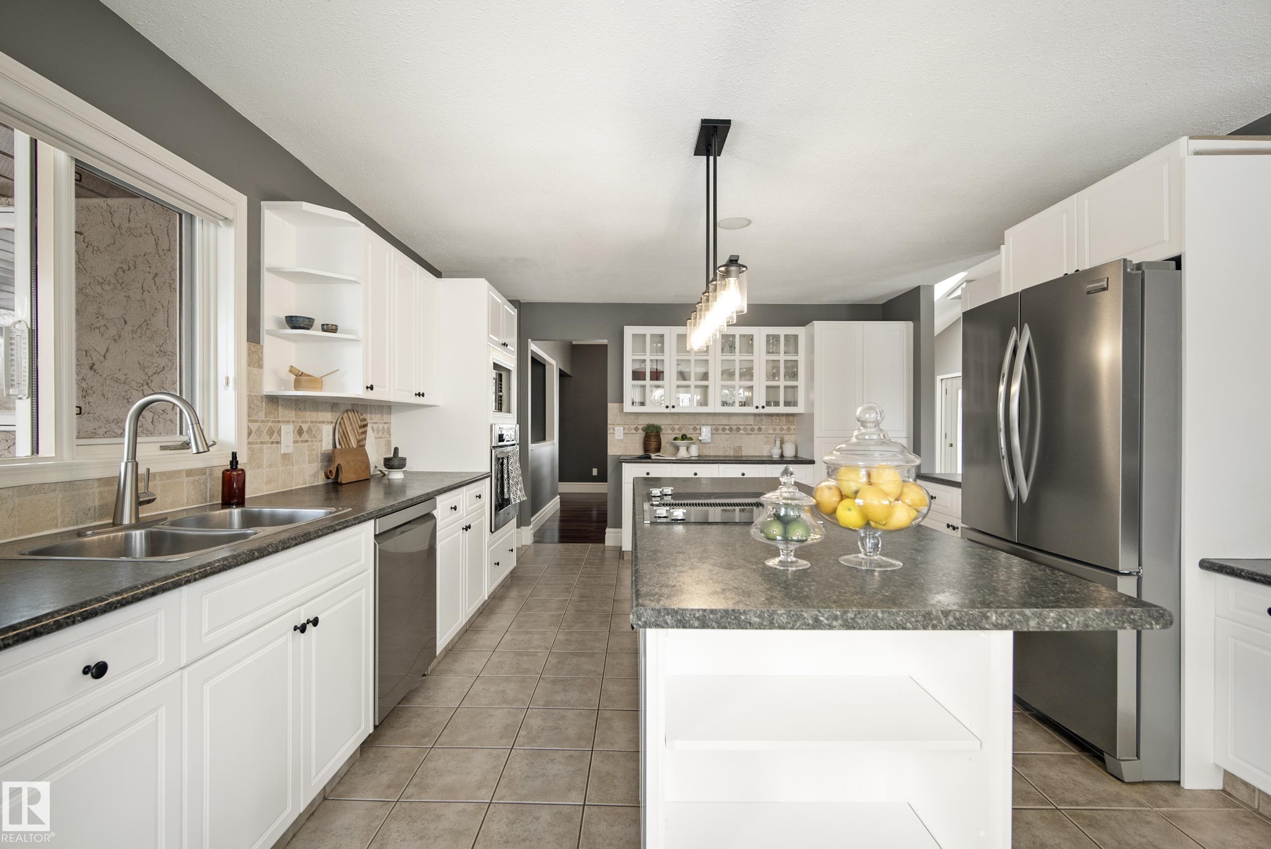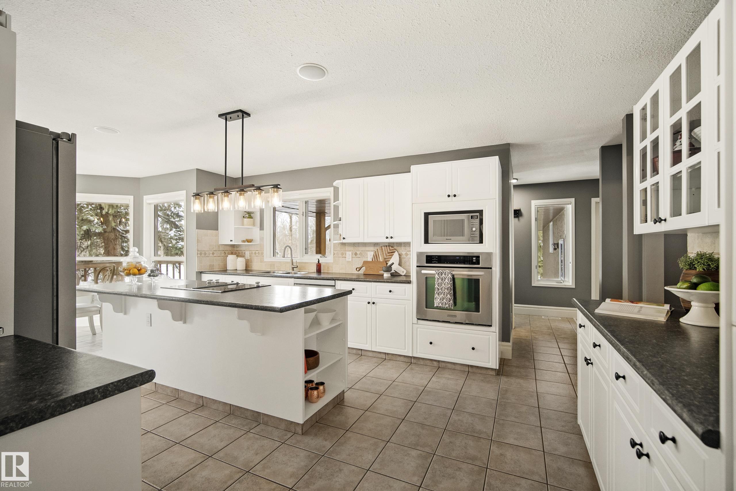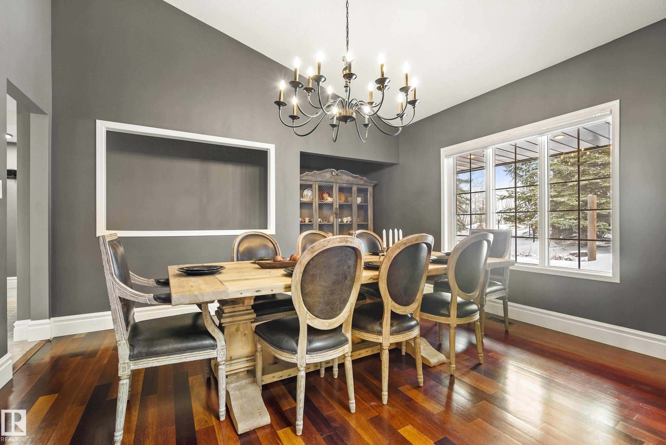 Acreage Living just 2 mins to the City of Edmonton! Fully treed & private 1.5 acre lot, this stunning 2400+ sq.ft WALKOUT bungalow offers the perfect blend of space, privacy & convenience. Pride of ownership shines! This 5 bed 5 bath home. Main floor features an open concept layout w/ a spacious living area, vaulted ceilings, chef inspired kitchen w/ large island, plus a cozy family room w/ fireplace. The primary retreat offers a luxurious 5 pc ensuite & walk-in closet. Walkout basement is flooded w/ natural light w/ a massive rec space, wet bar, fireplace, gym & games area, 2 additional bedrooms & 2 full baths. Enjoy the outdoors & privacy from the wrap around decks overlooking the beautifully treed lot, exposed aggregate patio & hot tub. Heated triple garage 35x23 w/ plenty of space for vehicles & toys, plus ample room for RV parking &/or shop, plus large 14x20 powered shed. Upgrades include furnaces, AC, shingles, oversized eaves, downspouts complete with gutter guard & much more. RARE OPPORTUNITY! 10+