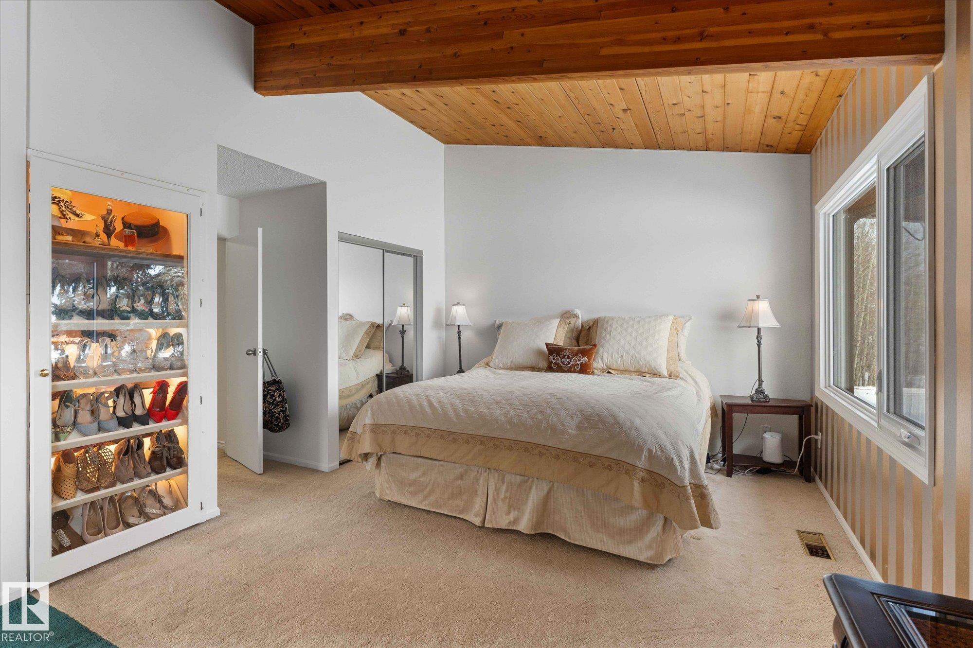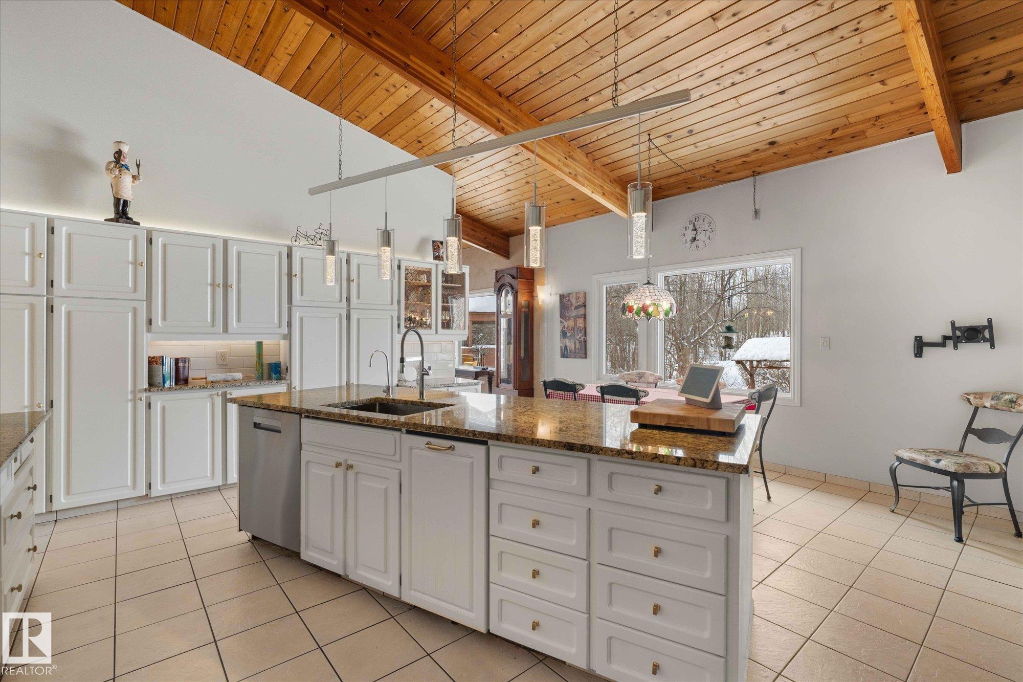 JUST 6 KMS FROM STONY PLAIN SITS THIS INCREDIBLE CUSTOM BUILT HOME ON 17.8 ACRES! Not only is it SET UP for horses, it offers peace, tranquility, views, wildlife, serenity and location! Many updates done over the years including house shingles (2016), garage roof (2022), septic tanks (2014), house exterior re-stained, barn painted, downstairs bathroom redone, kitchen spruce up including gorgeous granite countertops! The main floor offers a gorgeous and cozy living room surrounded by large windows with a wonderful wood burning fireplace. The Chefs kitchen boasts many extras such as a food warmer, sub zero fridge, wine cooler and double ovens plus a top of the line stove! The bright primary bedroom offers great views and door to deck! The lower level in this walk up has 2 bedrooms, a living room with fireplace, 3 pc bath, sitting area, laundry and cold rooms. The land is rolling and partly treed! The barn is perfect and offers storage on top! Hot tub, gazebo, decks - the list is too long! Must be seen!