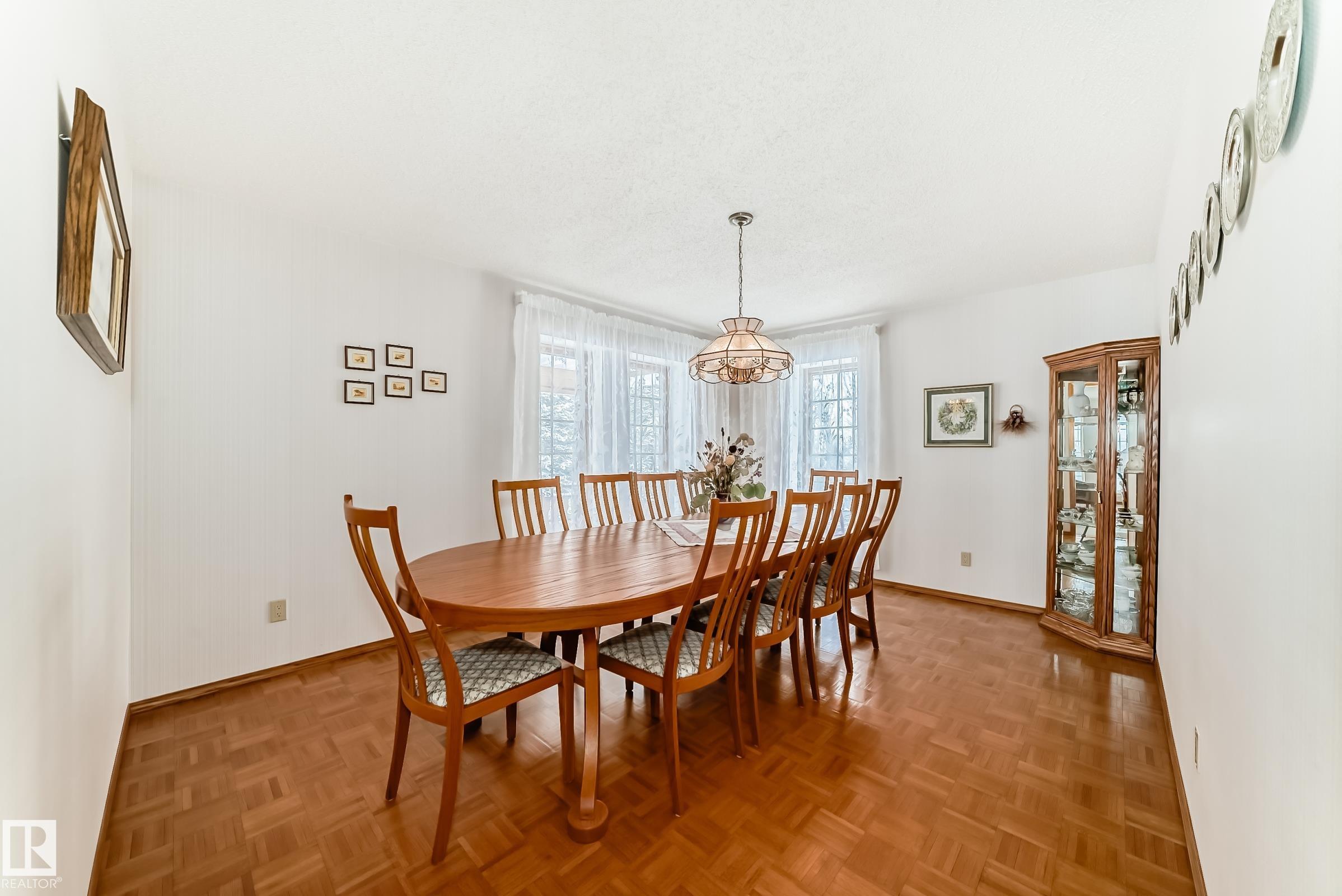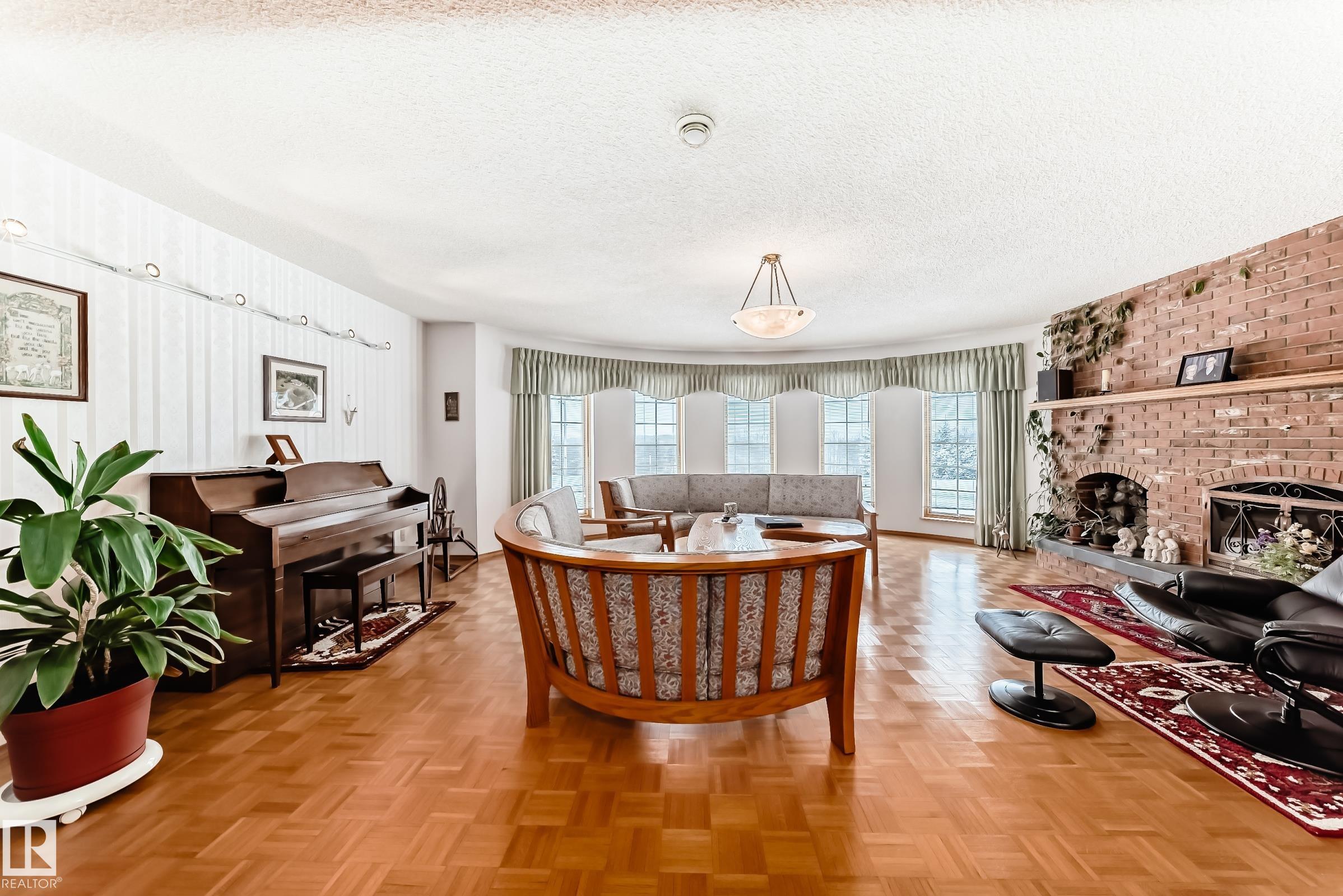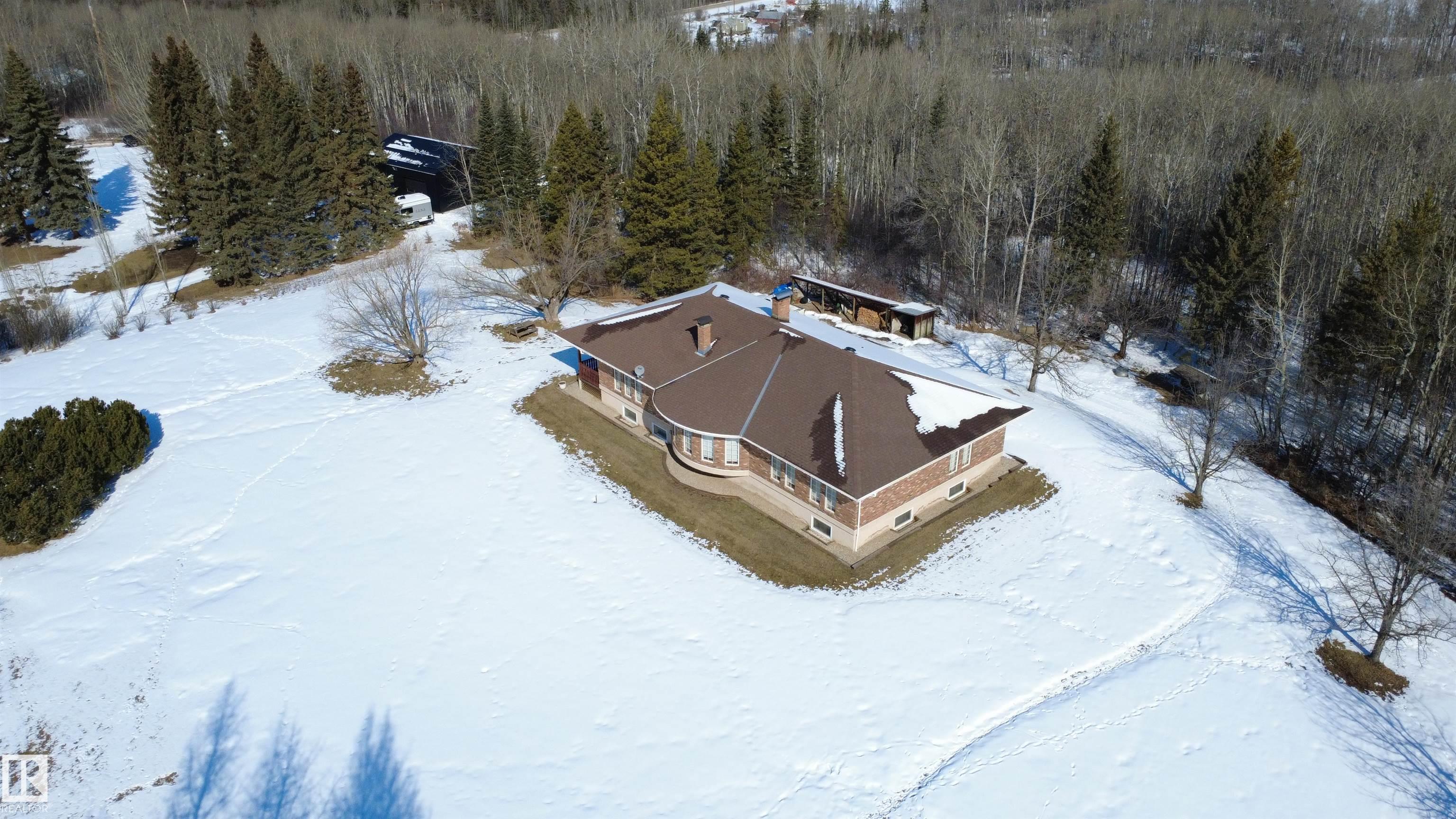 Discover the perfect blend of space, privacy, and convenience with this expansive countryside bungalow set on 3.08 beautifully acres in Chateau Heights. Surrounded by a natural perimeter of mature trees, this private retreat offers breathtaking sunrises, sunsets, and all-day sunshine—allowing you to fully enjoy all four seasons in a peaceful, welcoming setting. Located just 4 minutes to the Yellowhead and 15 minutes to Stony Plain, you’ll love the accessibility, with fully paved roads right to the subdivision. The home features 2,609 sq ft of finished space on the main floor, plus 1,704 sq ft in the partly finished basement. Inside offers 3 bedrooms up and 1 down, a formal dining room, and a bright, open layout with large windows that flood the home with natural light. The spacious living room boasts hardwood floors on the main floor and a cozy wood-burning fireplace, while in-floor heating adds year-round comfort. Ample storage throughout completes this exceptional property.