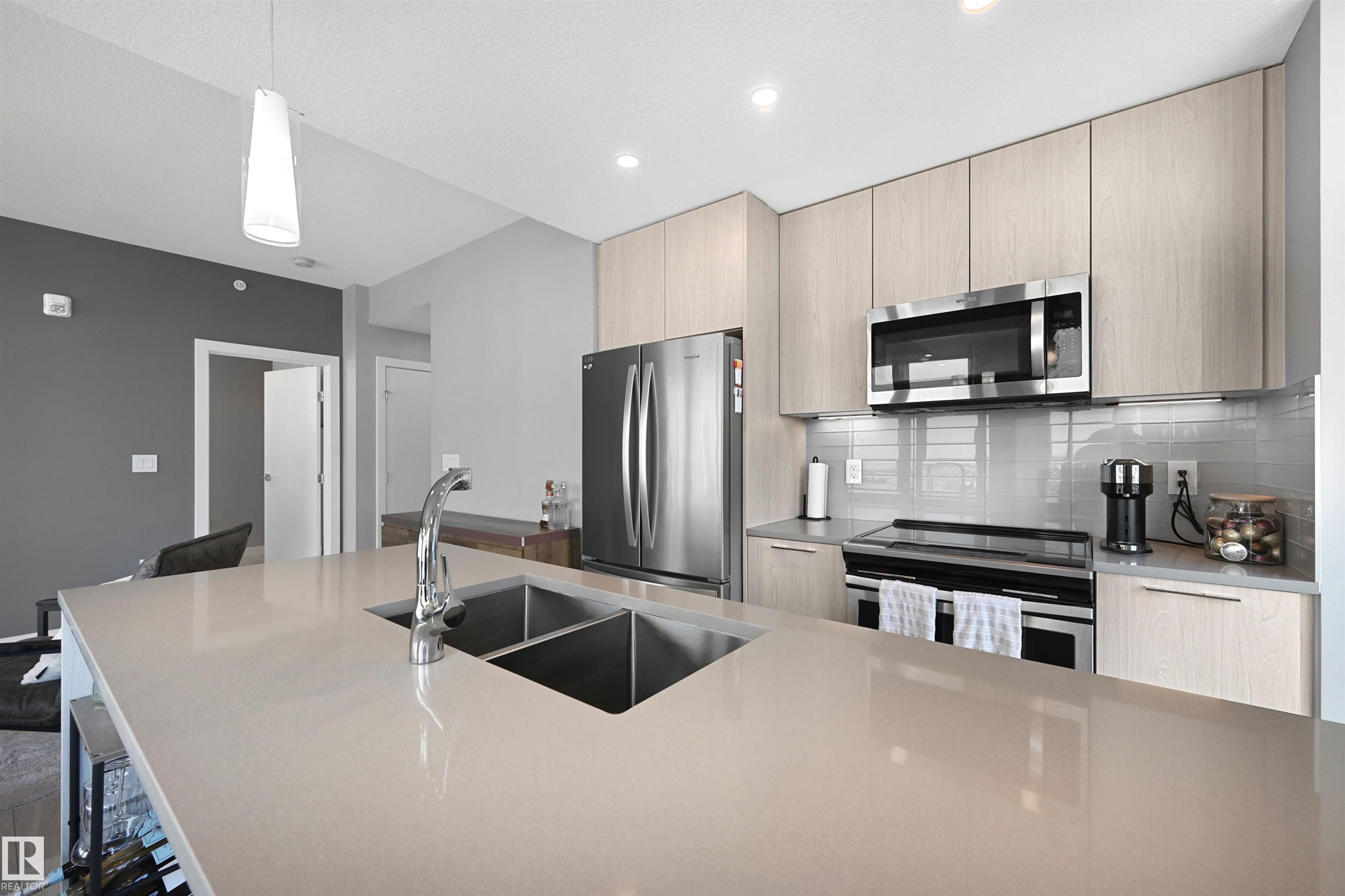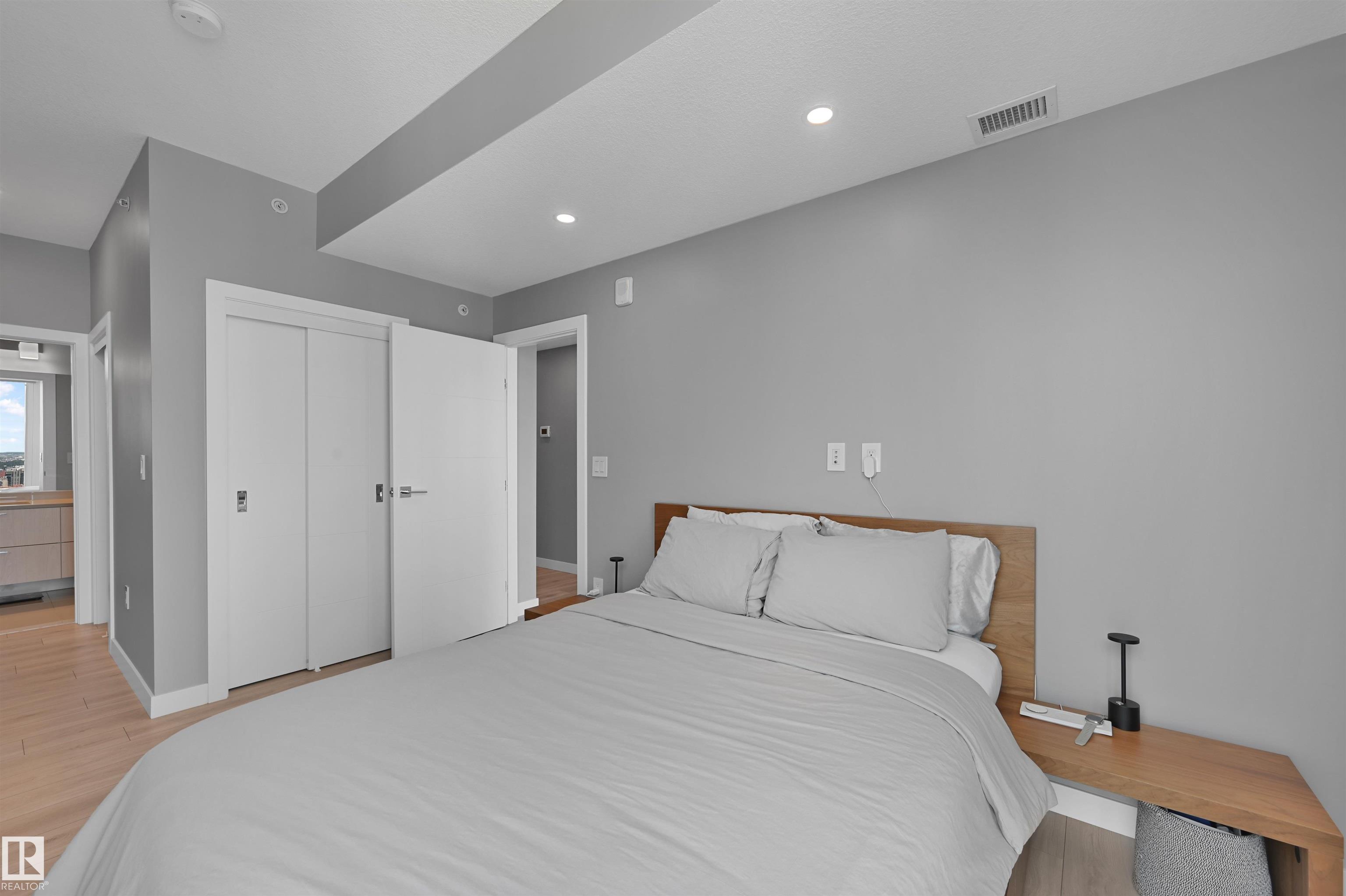 Encore Tower is a stunning 43 storey glass highrise in the heart of our downtown core, within walking distance to every amenity including Rogers Place/Ice District. Impressive skyline views from every suite & designed by Dub Architects. Gorgeous 3 storey lobby w/full concierge service & an expansive amenity floor including a fitness facility & indoor/outdoor entertaining lounges. #2701 offers a naturally lit & well functioning layout, perfect for the professional or empty nester & ideal for an urban lifestyle. Enjoy stunning West/South/North views through expansive floor-to-ceiling windows, w/direct access from your private balcony. Wide plank flooring, neutral tones & sleek modern lines offer timeless appeal for any style. Kitchen highlights modern flat panel cabinets, quartz counters, prep island & dining nook. Primary bedroom is complete w/dual closets & 3pc enuite. 2nd bedroom & 4pc guest bathroom are on opposite ends for maximum privacy. Insuite laundry & titled underground stall complete this home.