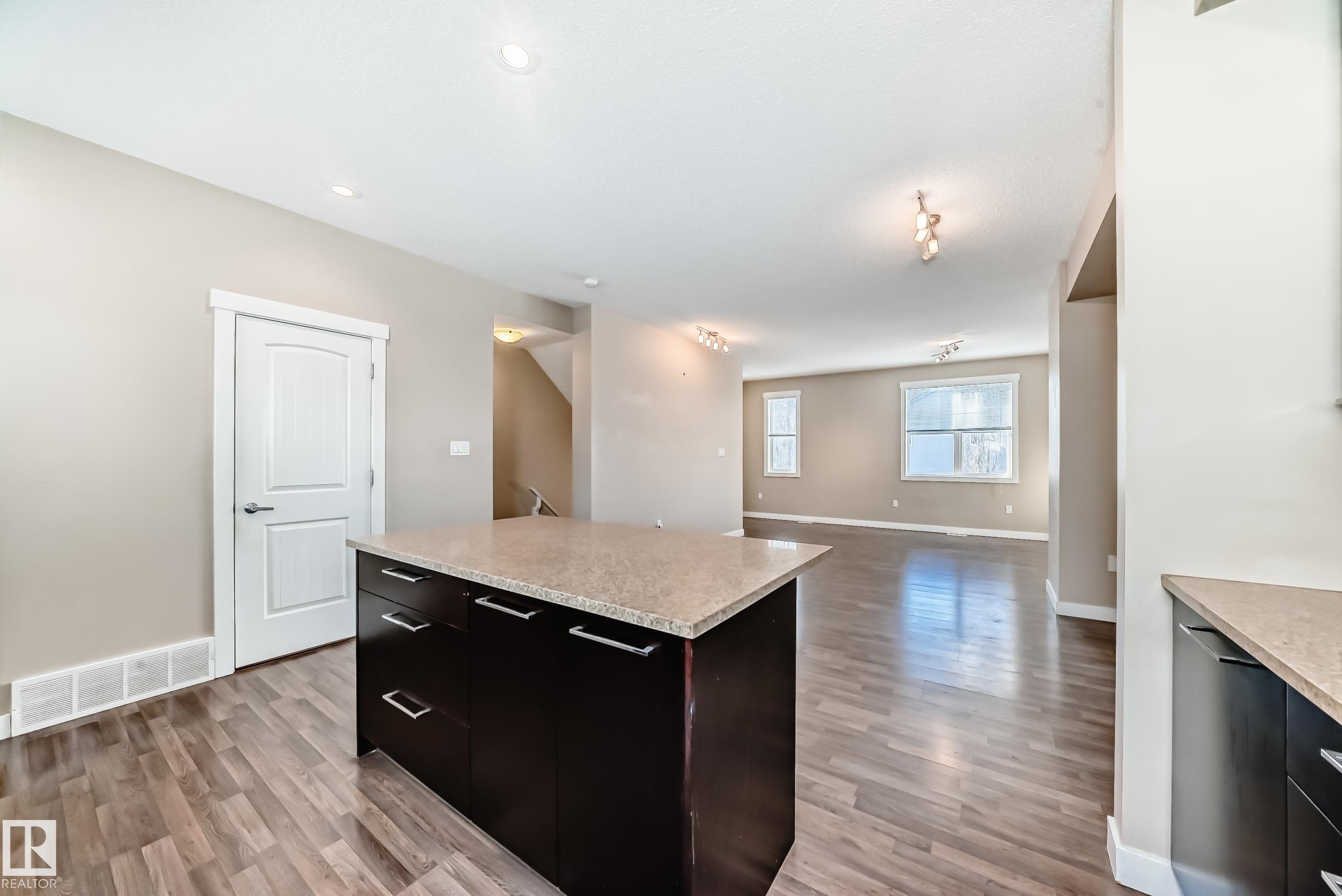 Live at Mirra at Poplar Lake! Low condo fees! This 3-storey townhouse offers 3 bedrooms, 2.5 baths, and a double attached garage. The main living level features 9’ ceilings and an open-concept layout. The modern kitchen showcases ceiling-height cabinetry, stainless steel appliances, quartz countertops, a large island, pantry, and ample storage. The dining and living areas are perfect for entertaining, while the west-facing balcony with gas BBQ hookup provides the ideal spot to enjoy fresh air. A 2-piece powder room completes this level. Upstairs, the large primary bedroom includes a full ensuite and dual closets. Two additional bedrooms share a second full bathroom and laundry is located on the upper floor. Situated in the desirable Klarvatten community, steps from Poplar Lake and walking trails, with quick access to the Anthony Henday, downtown, CFB Edmonton, schools, shopping, and amenities. Ideal for anyoe seeking a low-maintenance lifestyle. Quick Possession!