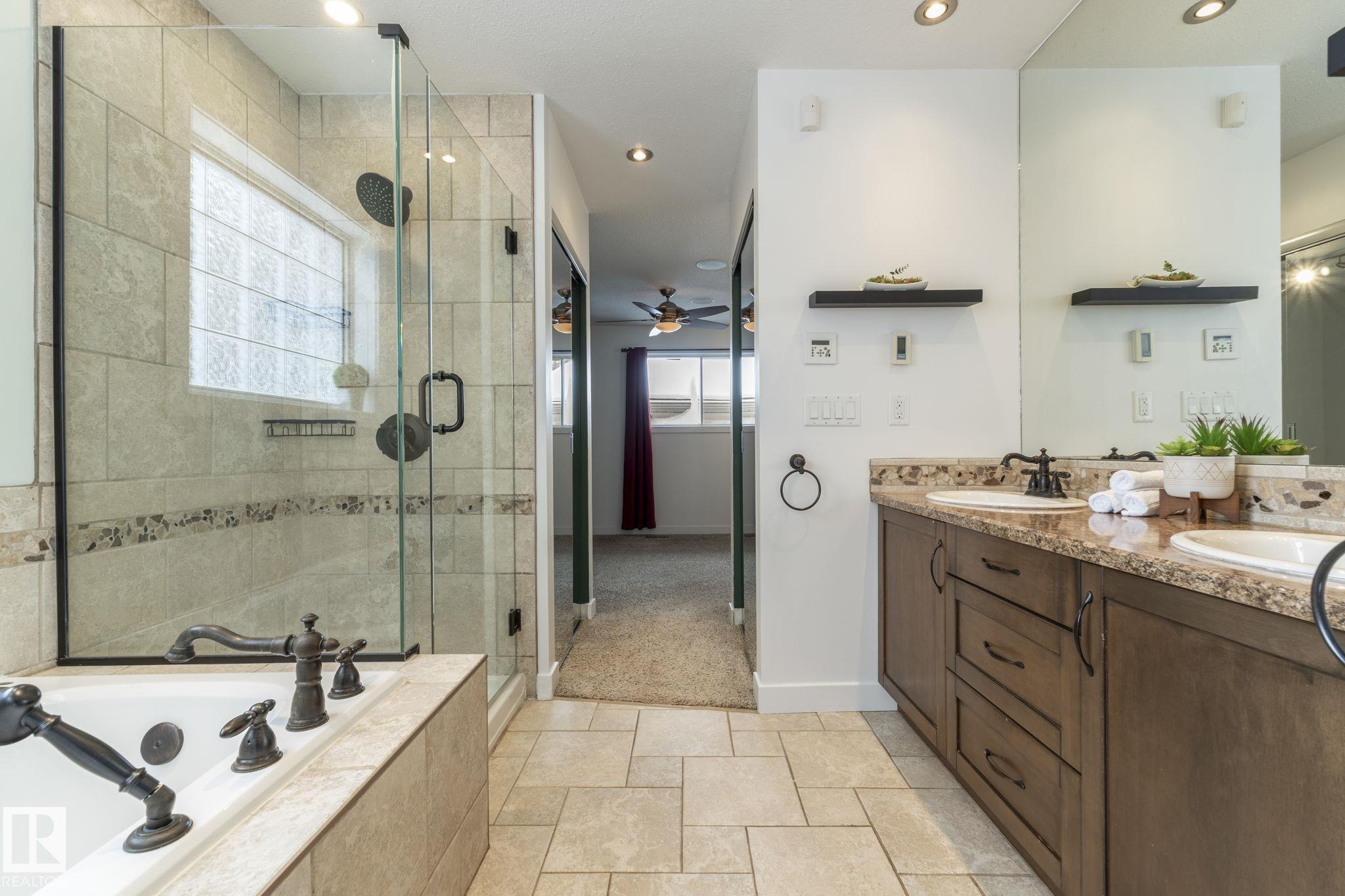 The perfect downsizer property! Upgraded in all the right places, this bungalow delivers style & comfort. The expansive kitchen is the heart of the home, fully renovated w/an abundance of cabinetry to the ceiling w/ glass inserts offering exceptional storage & a modern feel. It flows effortlessly into the dining area with a peek-a-boo opening to the inviting living rm w/ fireplace. The Primary retreat features walk-through closets & a spa-like 5pce ensuite w/dual sinks, a separate tub & shower & in-floor heat, plus direct access to the huge deck & hot tub covered by a pergola in a sunny south facing yard, your own private escape. Fresh flooring & 2-pce powder rm completes the main level. The fully finished bsmt includes 2 more bdrms, cozy rec room w/ gas fireplace & 2nd full bath. Extras include: new roof, tankless water heater, built-in surround sound speakers w/ receiver, WiFi lock, timer switches, USB outlets, upgraded attic insulation, great cul-de-sac location & heated double garage. Don’t miss out!
