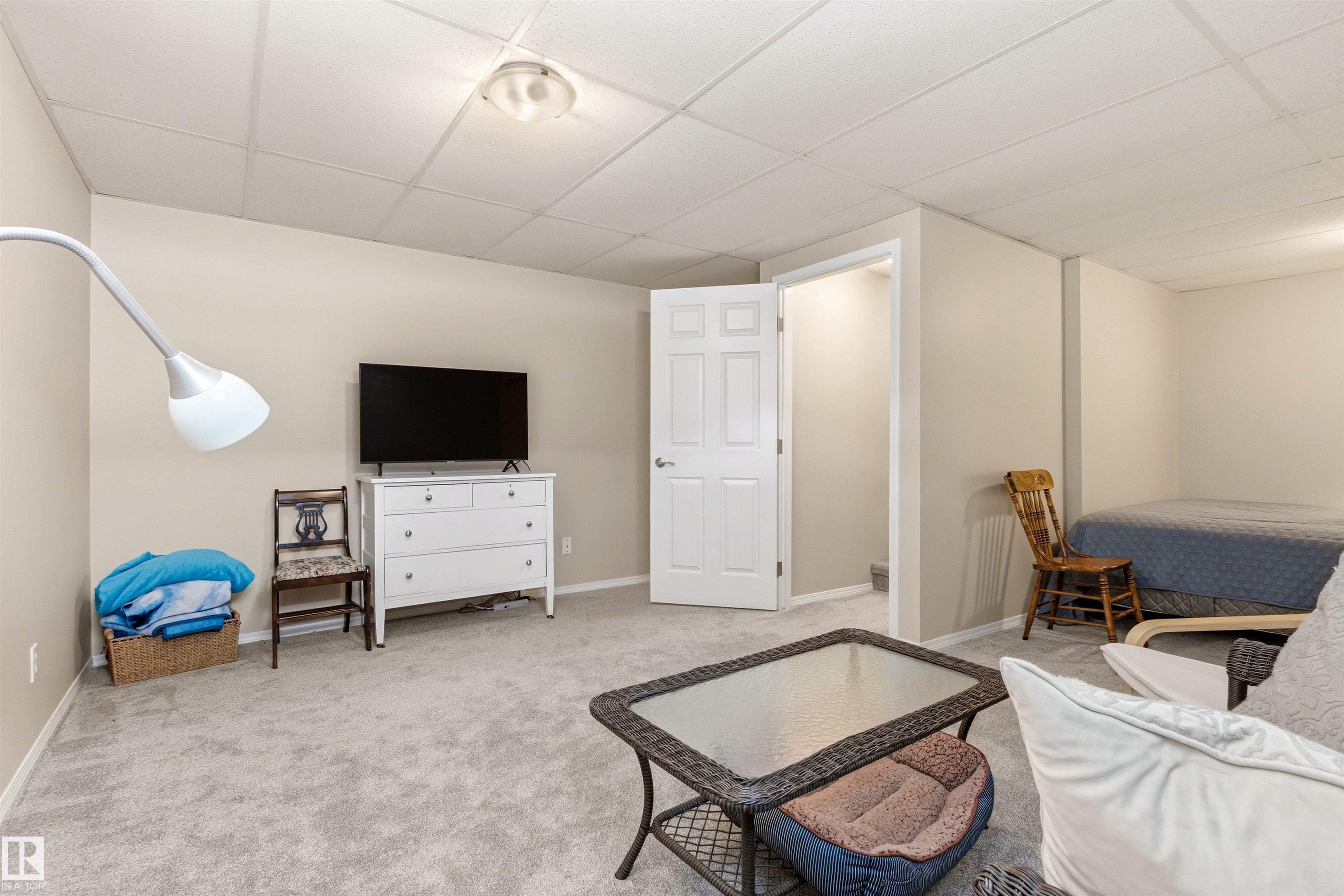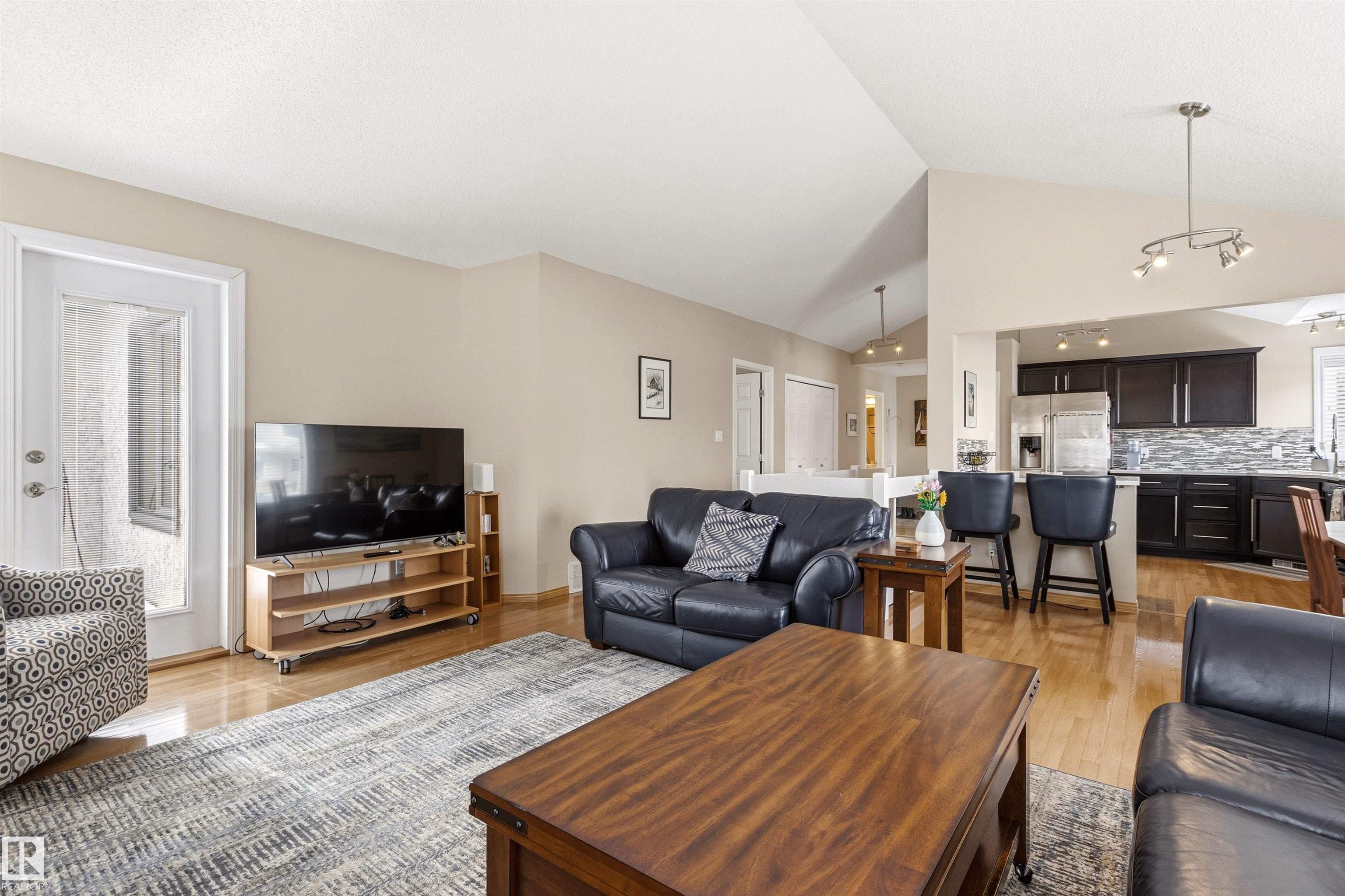 Step inside this beautiful 1290 sq ft bungalow, designed with an open concept, vaulted ceilings and a gorgeous modern kitchen! The main floor is filled with natural light and features a living room, dining room, kitchen, large primary bedroom complete with en-suite, a 2nd bedroom, laundry, another bathroom and access to your double attached garage. The living space continues in the finished basement, which offers a third bedroom, a full bath, a large recreation room, and a huge utility room with tons of storage. This home is air conditioned for those hot summer days and features a wonderful deck surrounded by mature trees for having a quiet coffee in the morning or a BBQ with friends after work! A wonderful location perfectly positioned in a quiet neighborhood, across from a park, and with walking trails nearby. All amenities are a 5 minute drive and the commute is easy with quick access to the Henday. Welcome home! (This is a 16 + complex)