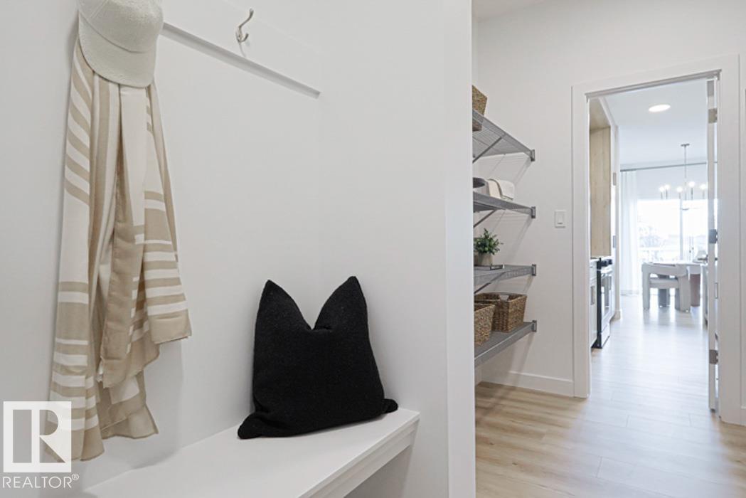 Built by Sterling Homes, this bright 3-bedroom home offers a smart layout for modern family living. Features include a double attached garage with floor drain, side entrance, 9-ft ceilings on the main floor, and luxury vinyl plank flooring throughout the main level. The foyer leads to a full 3-pc bath with stand-up shower and a main-floor bedroom—ideal for guests or a home office. A mudroom off the garage connects to the kitchen through a walkthrough pantry for added convenience and storage. The open-concept kitchen, great room, and nook are filled with natural light. The kitchen features quartz countertops, island with flush eating ledge, Silgranit sink, built-in microwave, pendant lighting, chimney hood fan, full-height backsplash, and soft-close cabinets. Upstairs offers a primary suite with 5-pc ensuite and walk-in closet, plus a bonus room, laundry, two bedrooms, and a full bath. Basement rough-ins included.