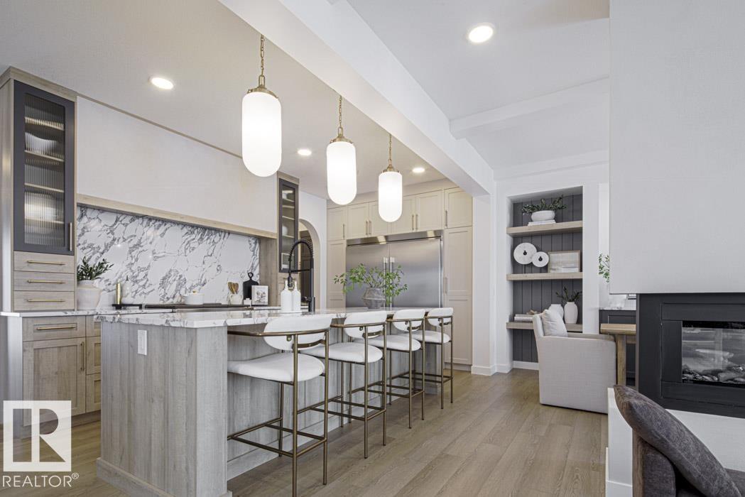 Built by Sterling Homes, this home blends efficient design with modern style, ideal for family living. The main floor features a double attached garage, side entrance, 9’ ceilings on both levels, and durable luxury vinyl plank flooring. A welcoming foyer leads to a half bath and a functional mudroom that connects to the kitchen through a spacious walk-in butler’s pantry with sink and built-in microwave—perfect for a coffee bar. The kitchen is the focal point, showcasing a large island, a Silgranit sink, quartz countertops, custom cabinetry, and a full-height tiled backsplash. The open-concept living and dining area includes a stylish fireplace, large windows, and patio access. Upstairs offers a bright primary suite with a 5-piece ensuite,4-piece main bath, and walk-through closet to the laundry, plus a bonus room, full bath, and two bedrooms with walk-in closets.