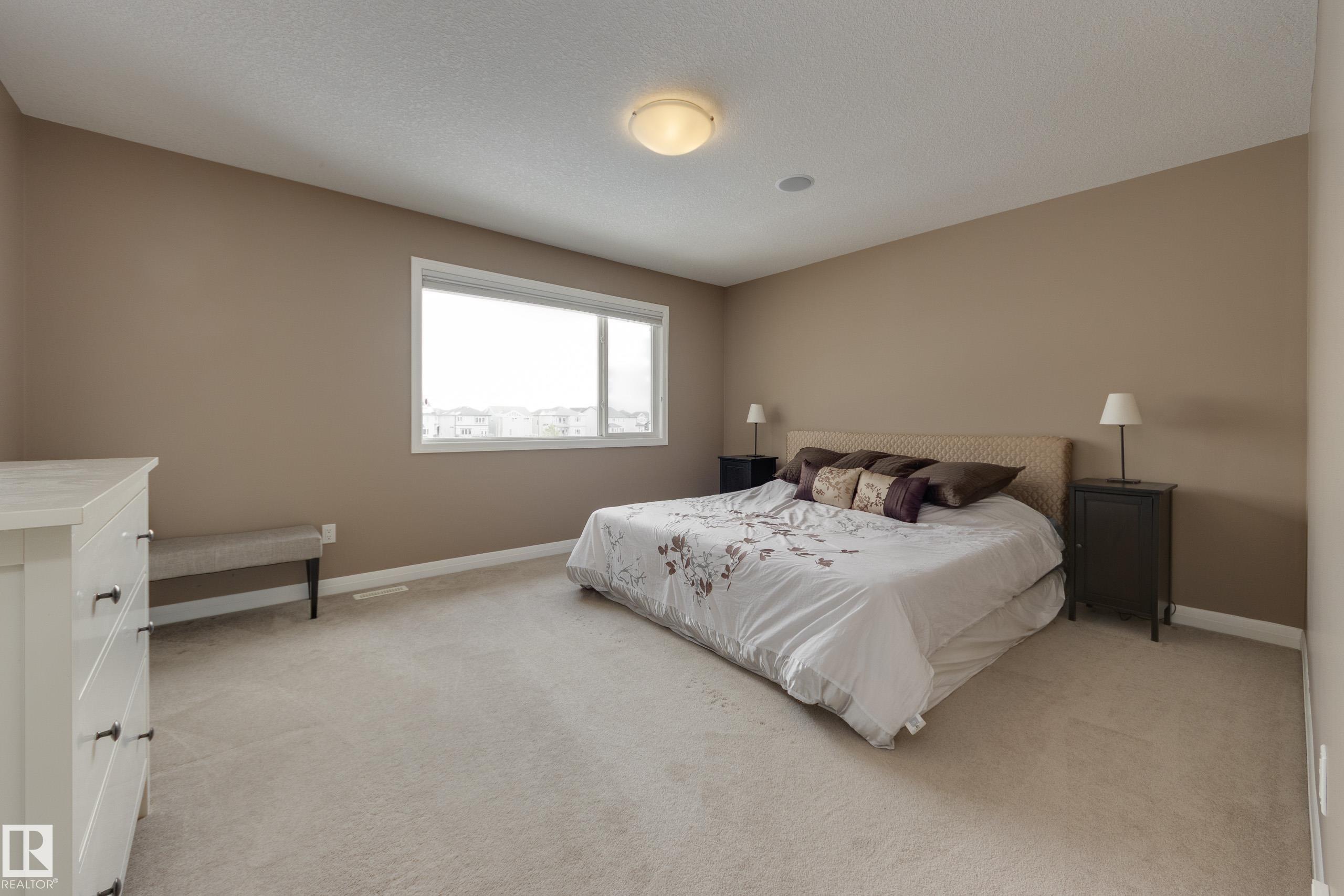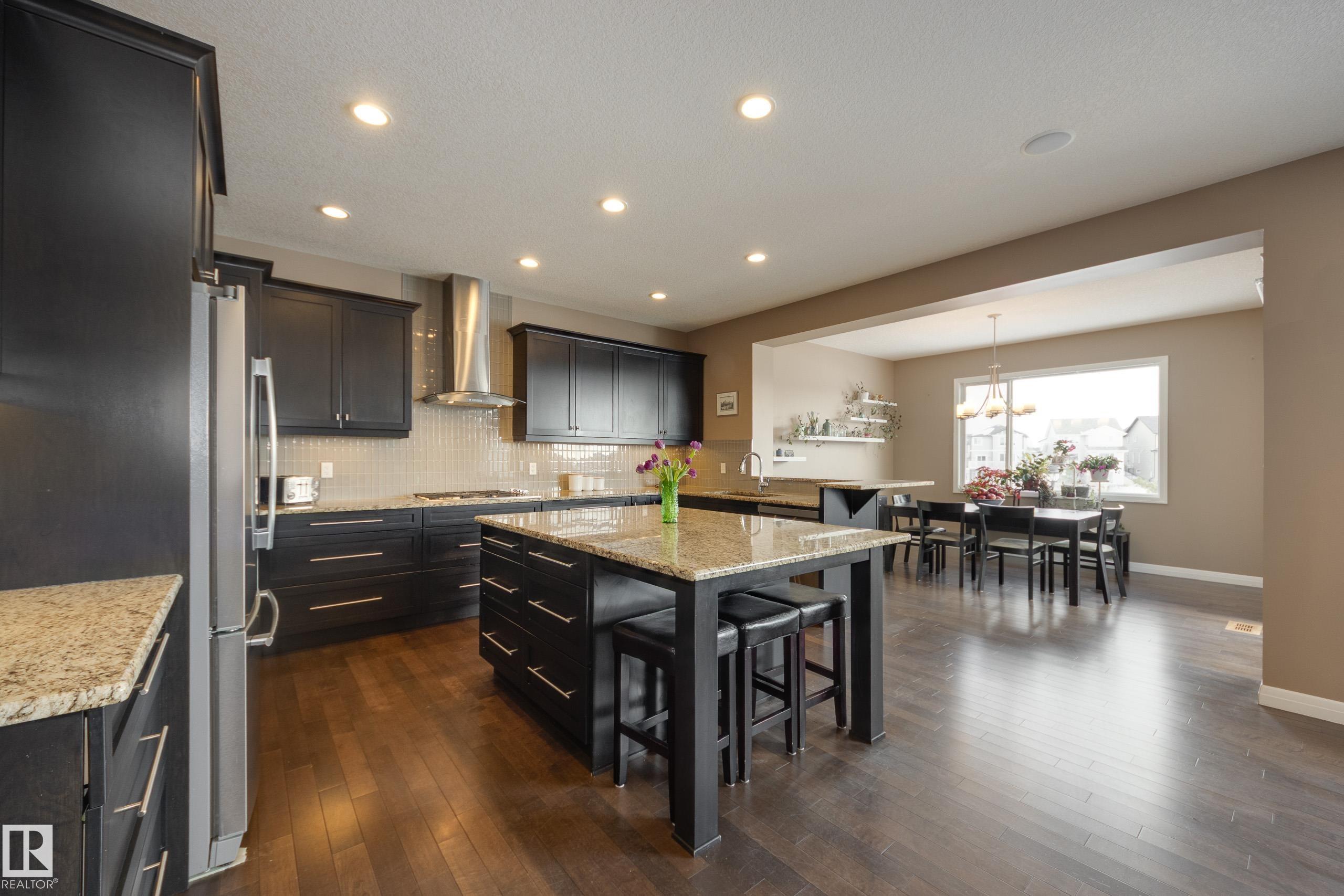 This lovely original owner walkout home offers 3 beds, 2.5 baths, and backs onto Helm Pond in sought-after Allard. The open concept main floor features hardwood and a stylish kitchen with granite countertops, large island, gas cooktop, stainless steel appliances and a walk-in pantry. The dining area leads to a deck with peaceful pond views, with both the living and dining rooms positioned to take full advantage of the setting, complemented by a gas fireplace that creates a warm and inviting space. Upstairs offer a generous bonus room, upper laundry, and a spacious primary suite with walk-in closet and 5 pc ensuite with soaker tub and separate shower, plus 2 additional beds and a full family bath. The unfinished walkout basement offers excellent potential for future development, with a bathroom rough-in and direct access to the landscaped yard and patio. Ideally located within walking distance to parks, schools, trails and community rink, with easy access to shopping, amenities and major commuter routes.