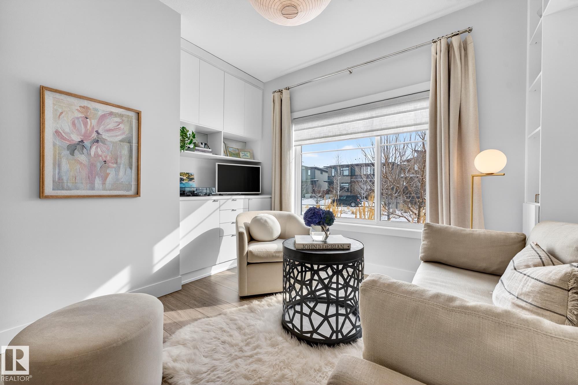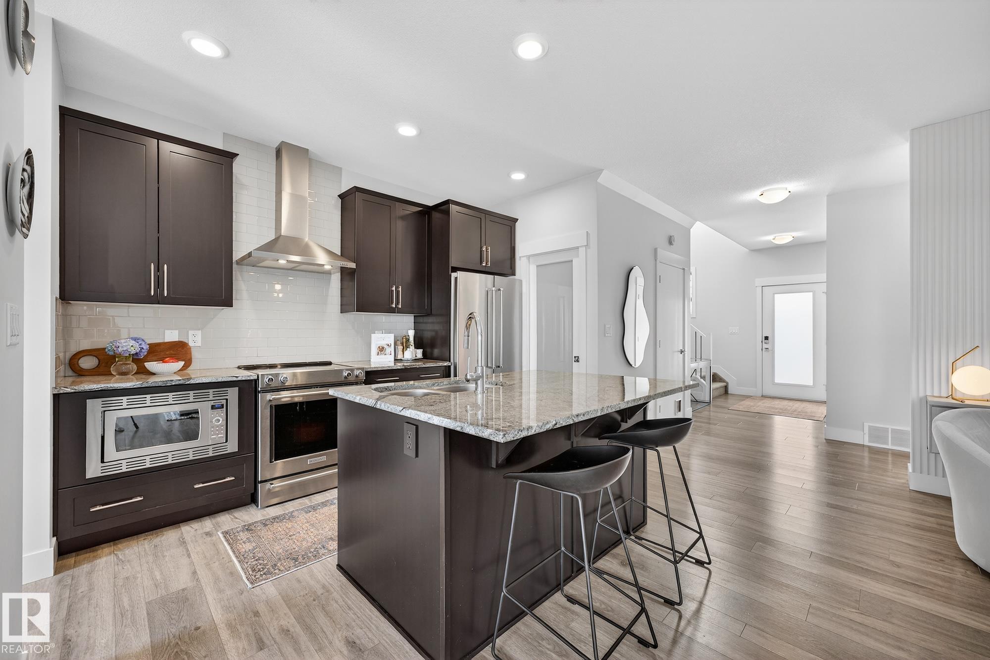 Welcome to 12 Amesbury Wynd! ZERO Condo Fees. This 1894 sq ft 2-storey end unit by Cameron Homes offers 3 bedrooms, 2.5 bathrooms, a stunning vaulted stairwell with 9’ ceilings, a double detached garage. Upstairs nook and tiled laundry room. Meticulously maintained! Designer finishes throughout—granite & quartz countertops, premium stainless steel appliances, custom California Closets, designer lighting, central A/C and water softener. Bright, functional layout with a main floor flex space - perfect for a home office or a relaxing space for your morning coffee. Unfinished basement with a clean, open layout ready for future development. Step outside to a private, low-maintenance yard that has been professionally landscaped with west exposure—perfect for sunset evenings. Set in Salisbury Village—a modern community with a strong mix of professionals and families, just steps to Square One Coffee, restaurants, parks, trails and so much more!