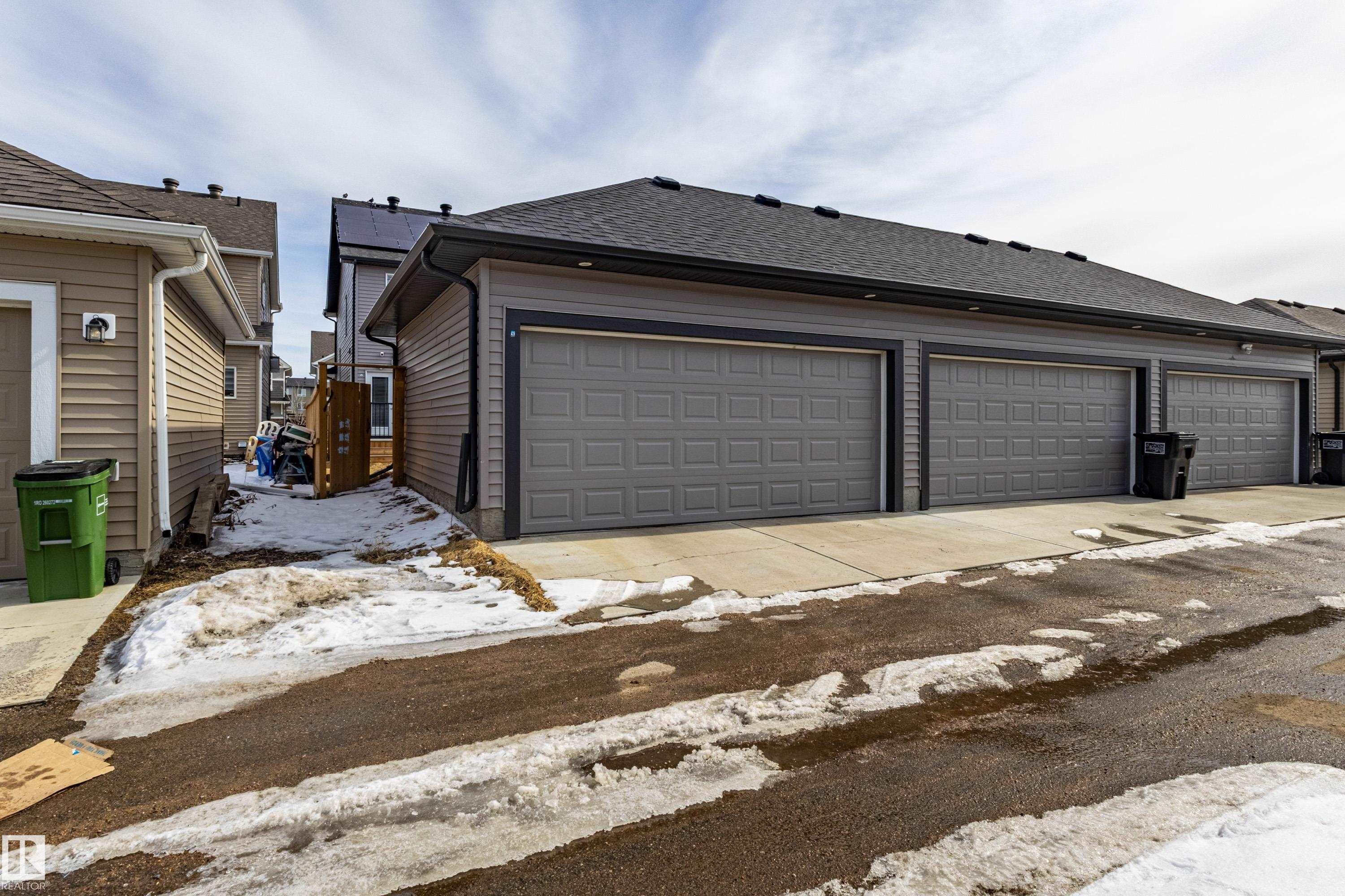 Delightful Desrochers 1350 ft 3 Bed, 2.5 Bath END UNIT Townhome with NO CONDO FEES! Everything you could ask for including: 9 FT Ceilings, SOLAR PANELS (7.38 kw), Quartz Counters, Stainless App’s & EV Car Charger in the Double Garage. Spacious front foyer & very OPEN main floor with living room flowing through to dining and the kitchen at the back has a large island, quartz counter tops and lots of cabinets. Main floor laundry area at the Rear entrance, and the ½ bath is strategically located at the basement entry. The Basement with 9 FT Ceilings awaits your finishing touches and includes HRV system! Upstairs you’ll find the 2 children’s rooms & full 4 PC bath. The primary suite is large with a full ensuite and a large walk-in closet. Landscaping, Fencing and Deck are ALL Completed. Super Location across from the street from School and WALKING distance to Trails and ALL Amenities & Shops. Close to FUTURE LRT. Bus stop conveniently located in front of the home. Close to the Anthony Henday and QE2 too!