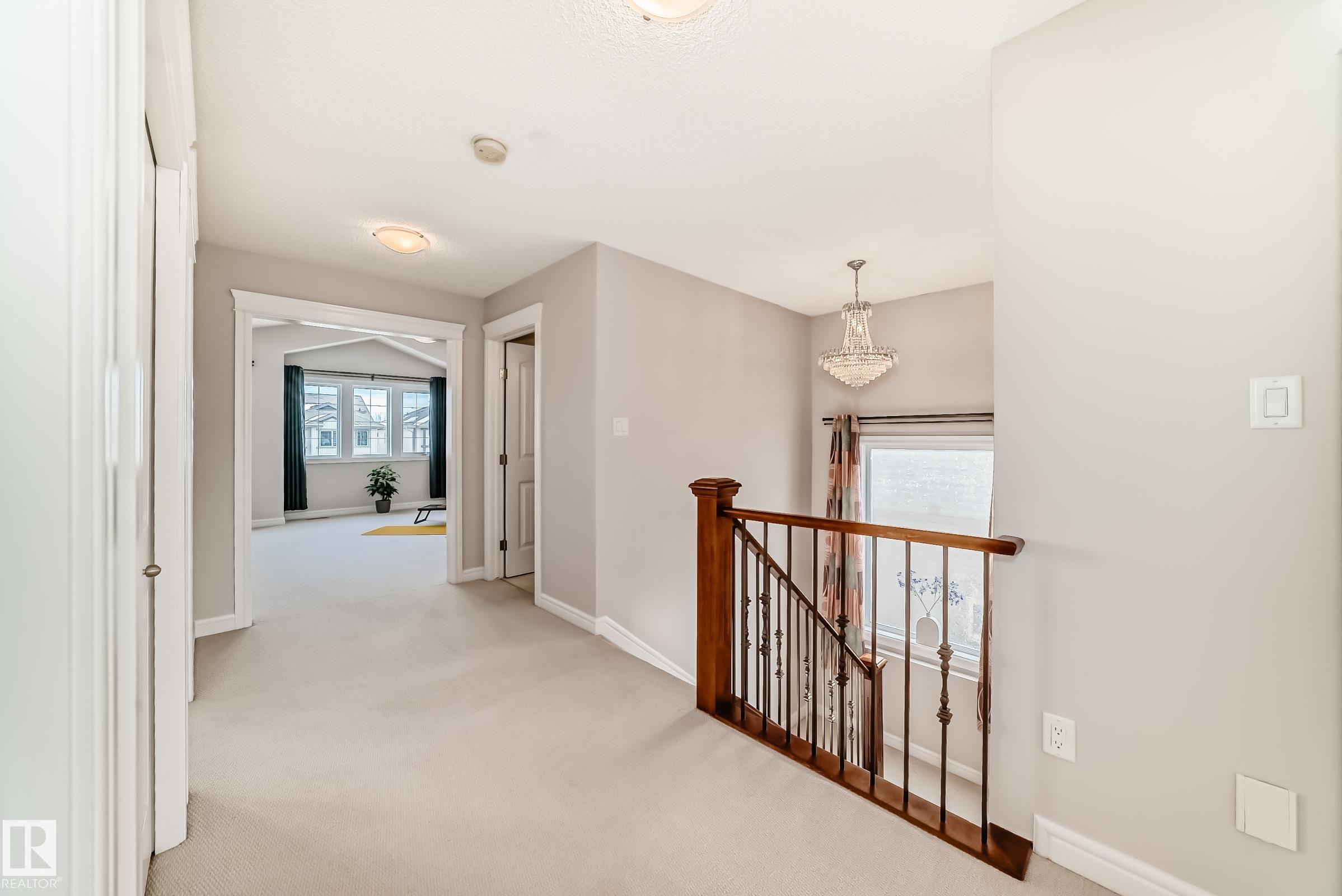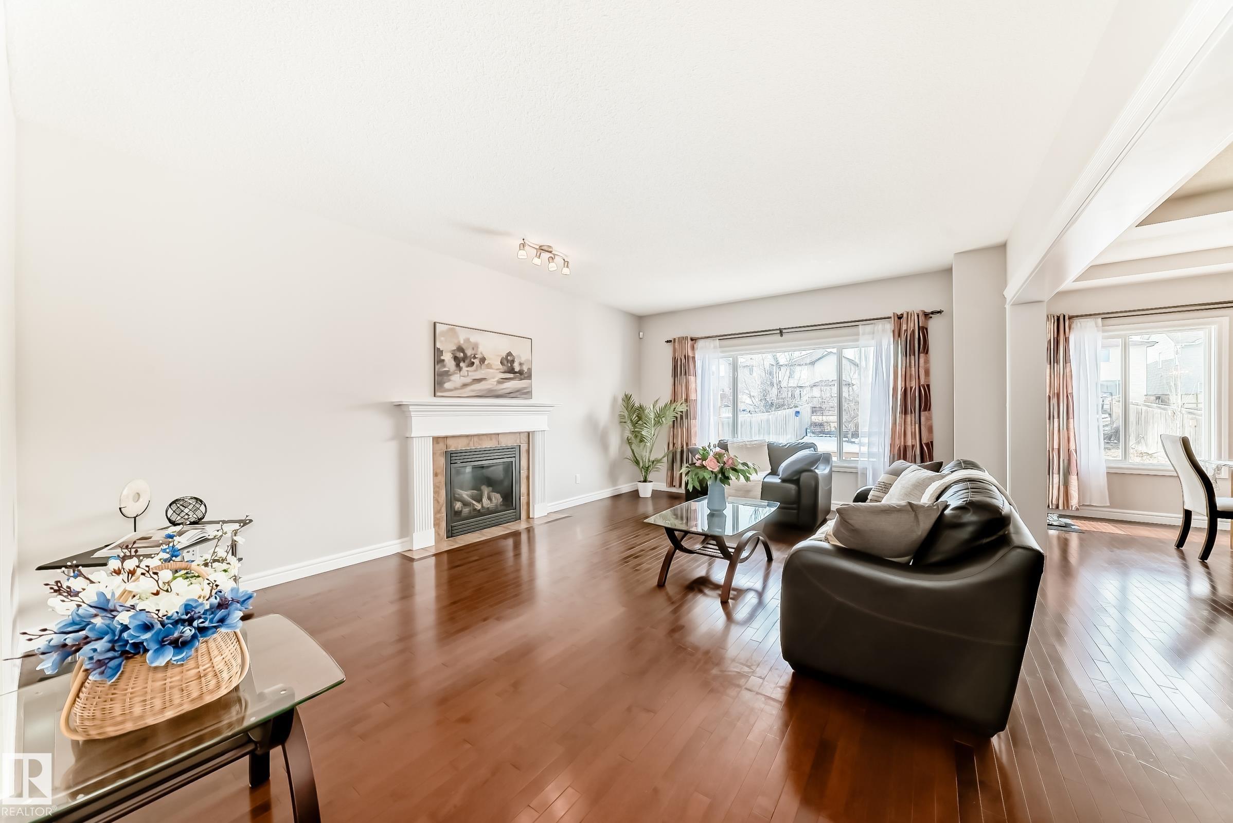 Rare opportunity to own a huge lot backing onto a walking trail in desirable Rutherford, offering beautiful green views and even apple harvest. The oversized full-size deck is perfect for outdoor entertaining. Step inside to a bright and spacious living area, with 9’ ceilings, hardwood flooring, and central vacuum. A versatile den/office and an open-concept kitchen with elegant coffered ceiling, The dining area overlooks the backyard and walking trail. Upstairs, a large staircase window fills the home with natural light. The wide hallway leads to an oversized primary bedroom that easily fits a king-size bed, plus a spacious bonus room and two additional bright bedrooms. The fully finished basement offers a built-in home theatre, and a wet bar—perfect for family movie nights. Walking distance to schools, 5 minutes to Heritage Shopping Centre, with easy access to Anthony Henday Drive. Recent upgrades: Hot water tank (2024), Garage Door (2025), Refrigerator (2025), Dishwasher (2025), Fresh Paint (2026).