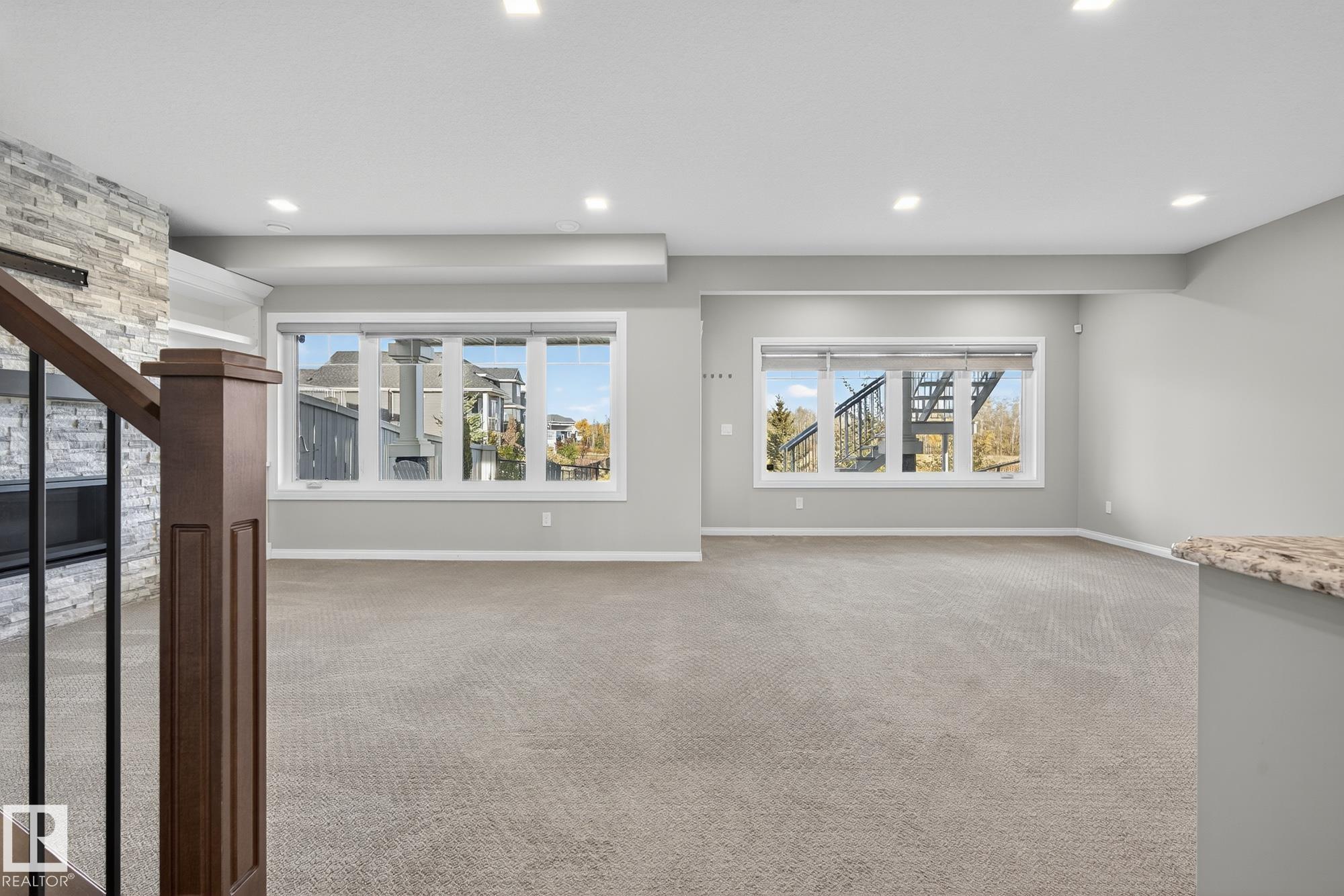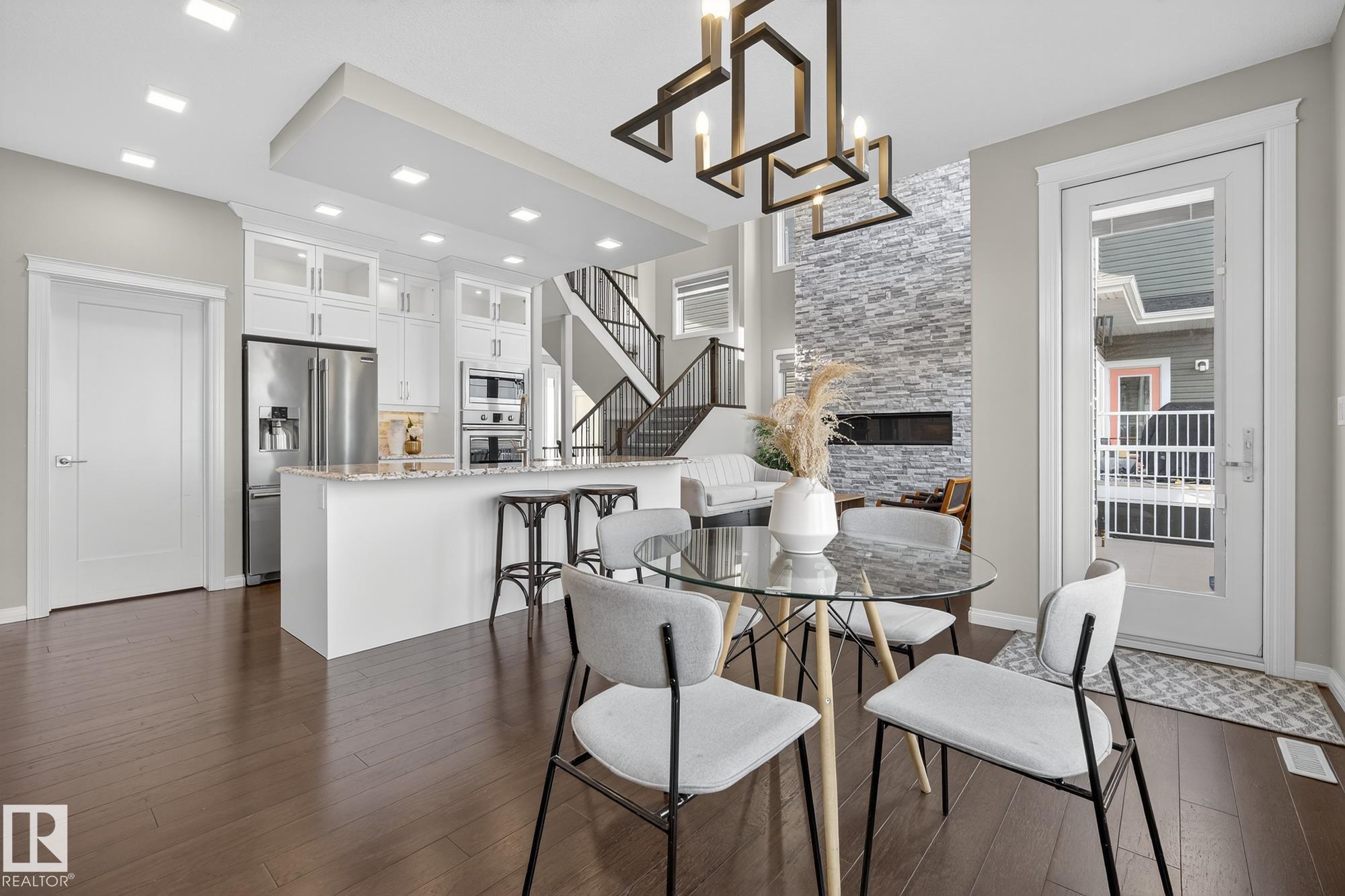 Turnkey and impeccably maintained, this custom-built walkout two-storey offers refined living BACKING DIRECTLY ONTO THE POND in the heart of Starling. Soaring 18-ft ceilings and a dramatic open-to-above great room are framed by a 4-panel window wall, flooding the home with natural light and capturing uninterrupted water views. The kitchen is elegantly appointed with European-style cabinetry, Frigidaire Professional appliances, gas range, and beveled granite countertops. Upstairs features a spacious bonus room, a private primary retreat with walk-in closet connecting to the laundry room, and two additional bedrooms—each with its own ensuite. The fully finished walkout basement is designed for entertaining with a custom wet bar, rec space with stone fireplace, fourth bedroom, and access to a beautifully finished lower patio overlooking the pond. A rare offering combining design, function, and stunning views.