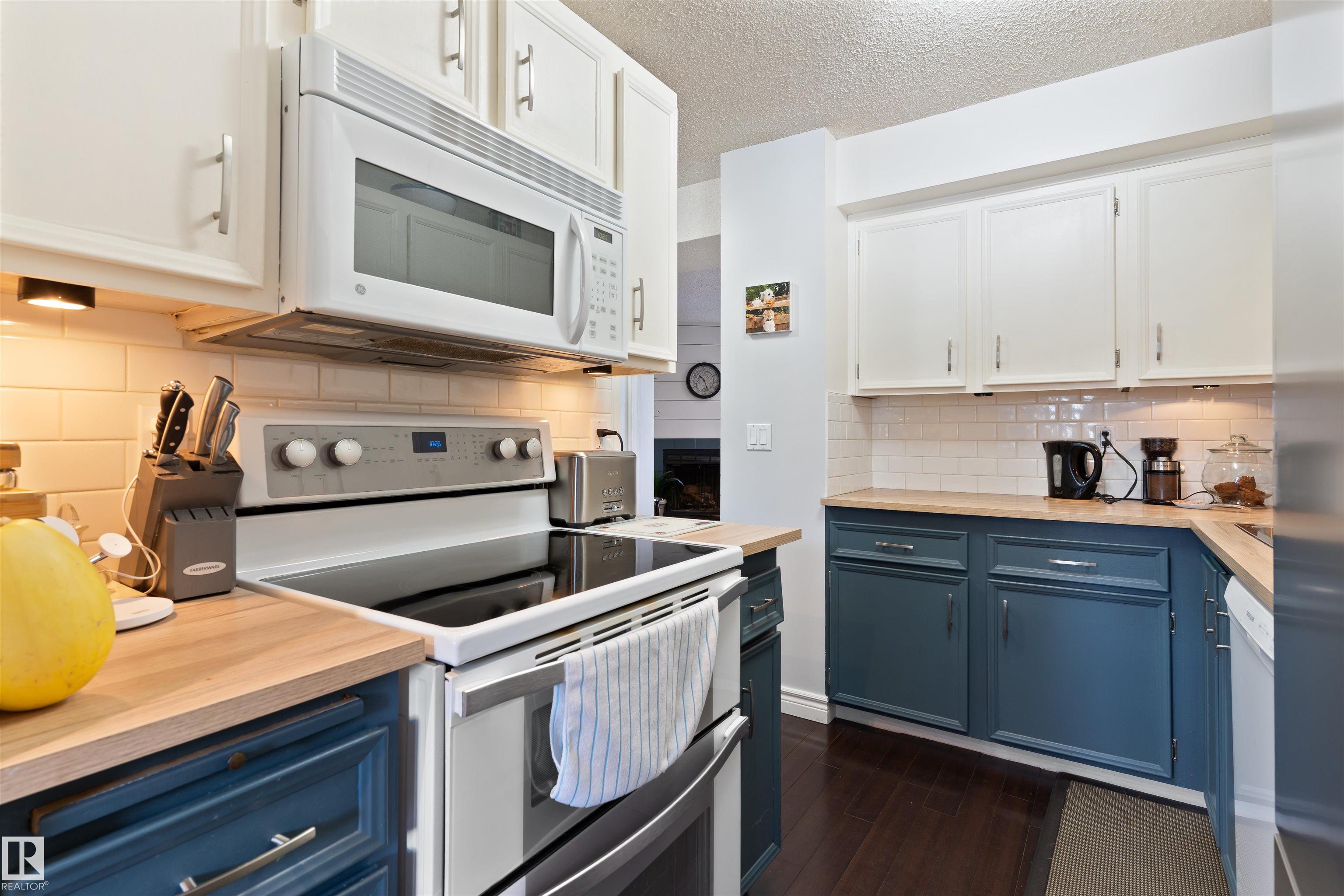 Imagine starting your mornings on a private balcony and ending your evenings by a cozy wood-burning fireplace. Welcome to life in Grandin. This well-maintained townhome features a stylish kitchen with two-tone cabinetry, a double oven, and a newer stainless steel fridge. The spacious living room, centered around a cozy wood-burning fireplace, flows seamlessly to patio doors leading to a fully fenced yard with perennial gardens for effortless, year-after-year landscaping. Upstairs offers three comfortable bedrooms, including a primary retreat with its own private balcony. The bathroom delivers a spa-inspired feel with a luxurious rain shower. The basement adds storage, laundry, and a versatile flex space. Enjoy two powered stalls right out front. Located in a well-managed complex just steps from parks, walking trails, Grosvenor Pool, the St. Albert Farmers’ Market, and everyday amenities. Quick access to the Henday and 170 Street makes commuting easy. Condo fees are set to reduce to $428/month in Jan 2027