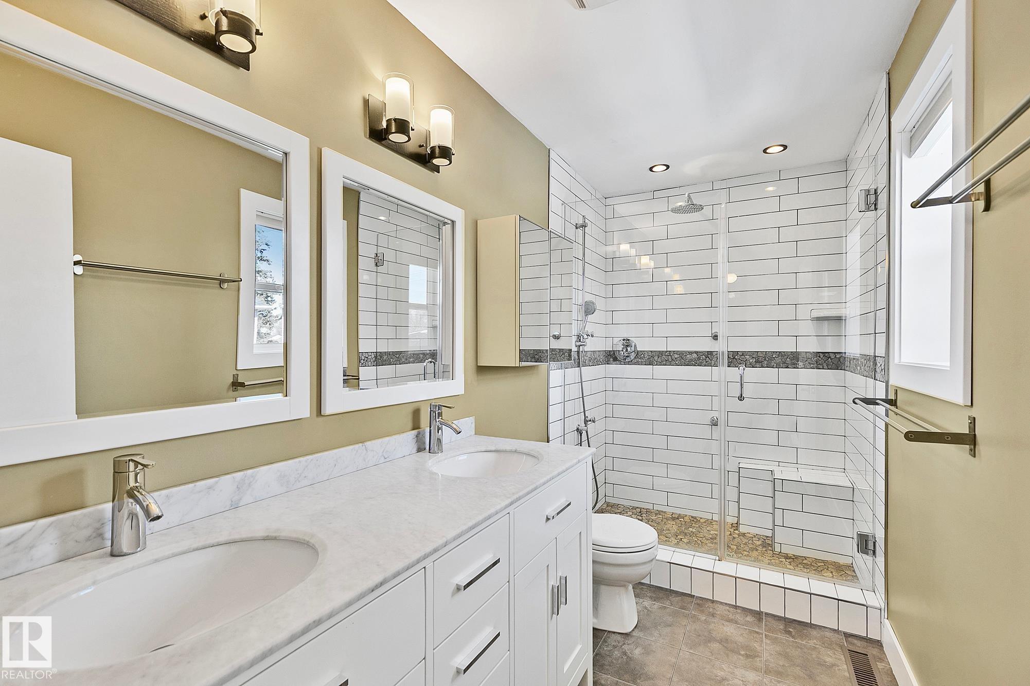 PRIME LOCATION | 2 BEDROOM LEGAL BASEMENT SUITE! Fall in love with this one-of-a-kind gem in the heart of Westmount where timeless character meets modern living & income potential. Situated on a 50x140 lot, this beautifully updated 2 storey offers 2524 sqft of functional living space. Bright front sunroom w/vaulted ceilings fills the home w/natural light. Modern kitchen features endless cabinetry, stainless steel appliances & overlooks the inviting family rm anchored by a gas fireplace & large windows. Main floor den + 2pc bath complete the space. Upstairs offers 3 spacious bdrms including a stunning primary w/walk-in closet & updated ensuite with double sink, glass shower with timeless tile. Fully permitted 2 bdrm LEGAL bsmt suite w/separate kitchen, laundry & private living space. Ideal mortgage helper or investment. Enjoy the private yard w/deck, fruit trees & space to entertain. Double oversized detached garage. Quiet tree-lined street steps to trails, schools, 124 St & quick downtown access!