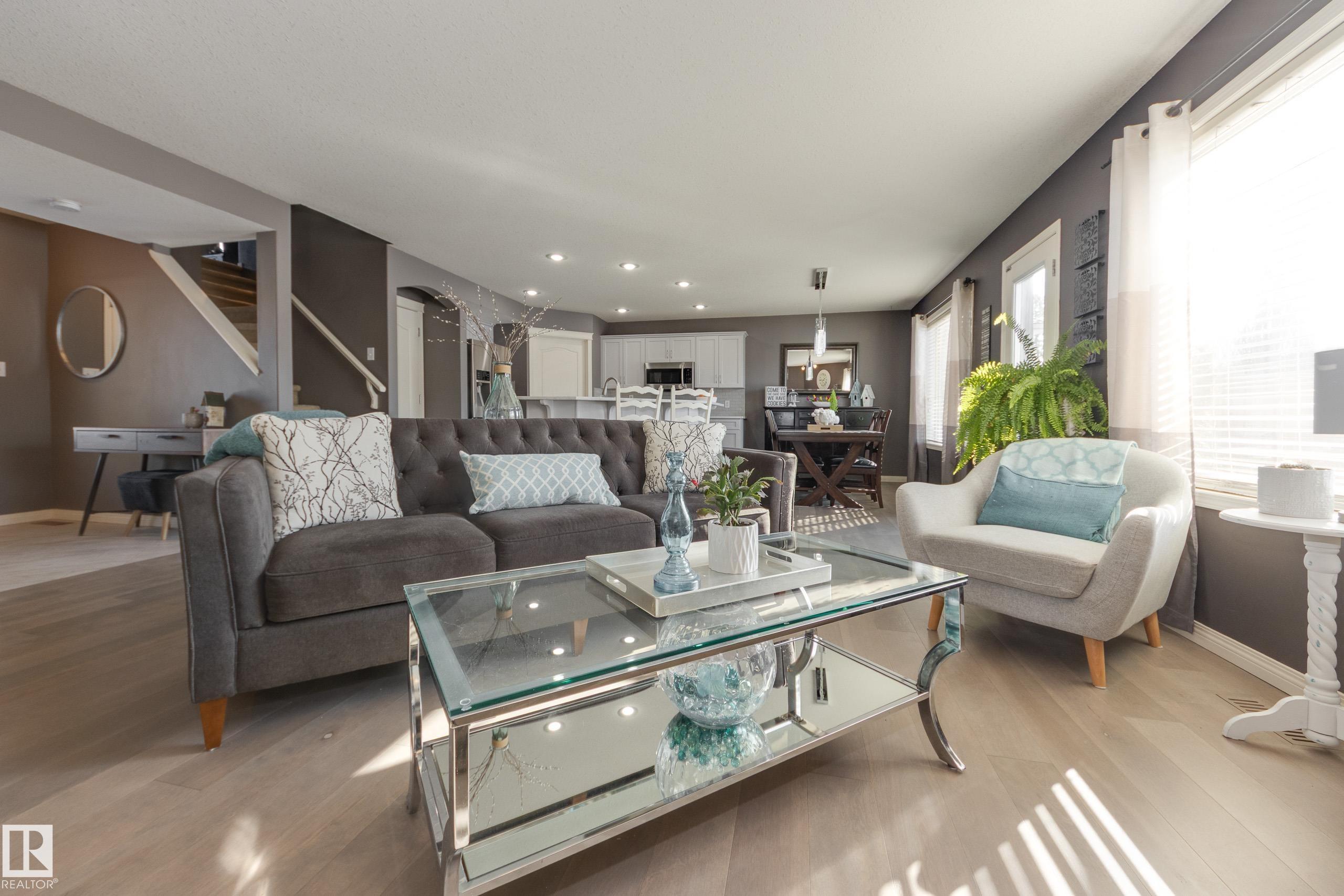 Welcome to The Ridge! This incredible 2-storey home sits in a CUL-DE-SAC location and is only steps away from the trails in the neighbourhood. Upon entry you're greeted with a renovated main level and an open concept flow. The kitchen boasts bright cabinets, stainless appliances, and QUARTZ COUNTERTOPS. The dining area is generous and can fit a large table, and the living space has a cozy gas fireplace. The patio door leads you out to your large pie shaped yard where you can enjoy your morning coffee on the south facing deck. The main level also has your MAIN FLOOR LAUNDRY, a 2-pc bath, and access to your heated & insulated double garage! Upstairs the primary suite features a walk-in closet and 4-pc ensuite. Two more bedrooms, a 4-pc bath, and an awesome bonus space complete the top level. The basement is fully finished with vinyl plank flooring, another bedroom, a 3-pc bath, tons of storage, and a fantastic rec space! This home is well designed, is equipped with AC, and just feels like home!