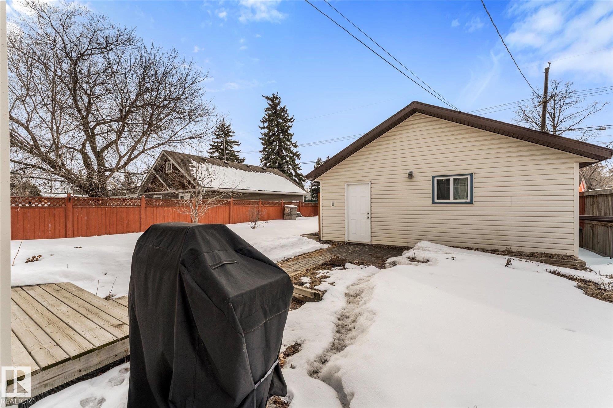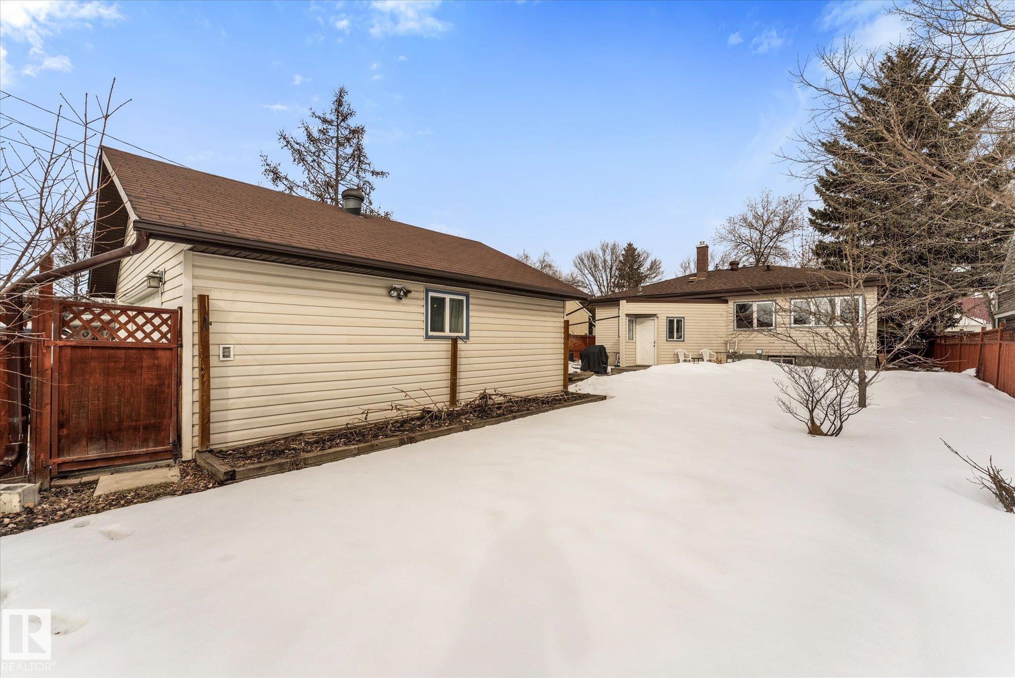 *** WONDERFUL in WESTMOUNT! *** With average prices in the area SOARING, perhaps you'll find it refreshing to come across a BEAUTIFULLY appointed and updated mid-century bungalow. Charm. Coved Ceilings. Class. And check out the PRICE! (Barely more than what the KNOCKDOWNS in the area are selling for to make way for 2.5-story infills at twice the price!) CONSIDER: Full bath & Two bdrms up, w/ Primary including cozy bench-seating: Perfect spot to read in the early morning hours before starting the day. Spacious living room, dining room, + open kitchen complete the main floor. DOWN: A FULLY LEGAL 1 Bdrm/1Bath bsmt suite (w/ PERMITS & HEATED FLOORS!) Ideal for: Aging parents, Boomerang university student, Rental income! MORE: Upgraded Furnaces & HWT, AC, sump system, vinyl windows, all professionally done. This is as Turn-Key as it gets! NEARBY: ETS. Quick access to shopping. Fast commute downtown or to U of A. HUGE oversized double detached garage + extra parking. Fruit Trees. Gardens. Privacy. Welcome Home!