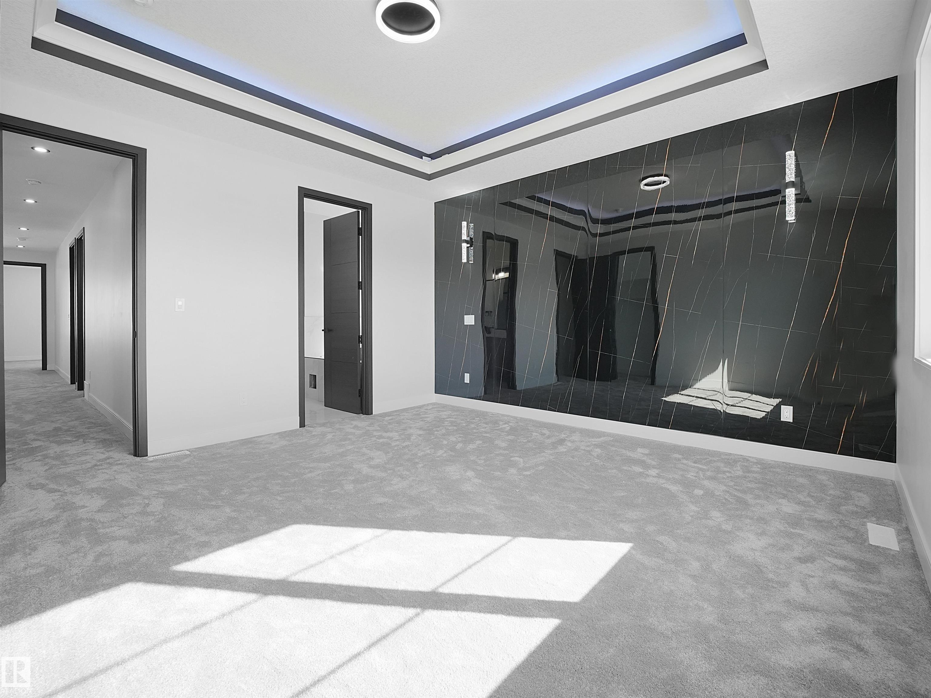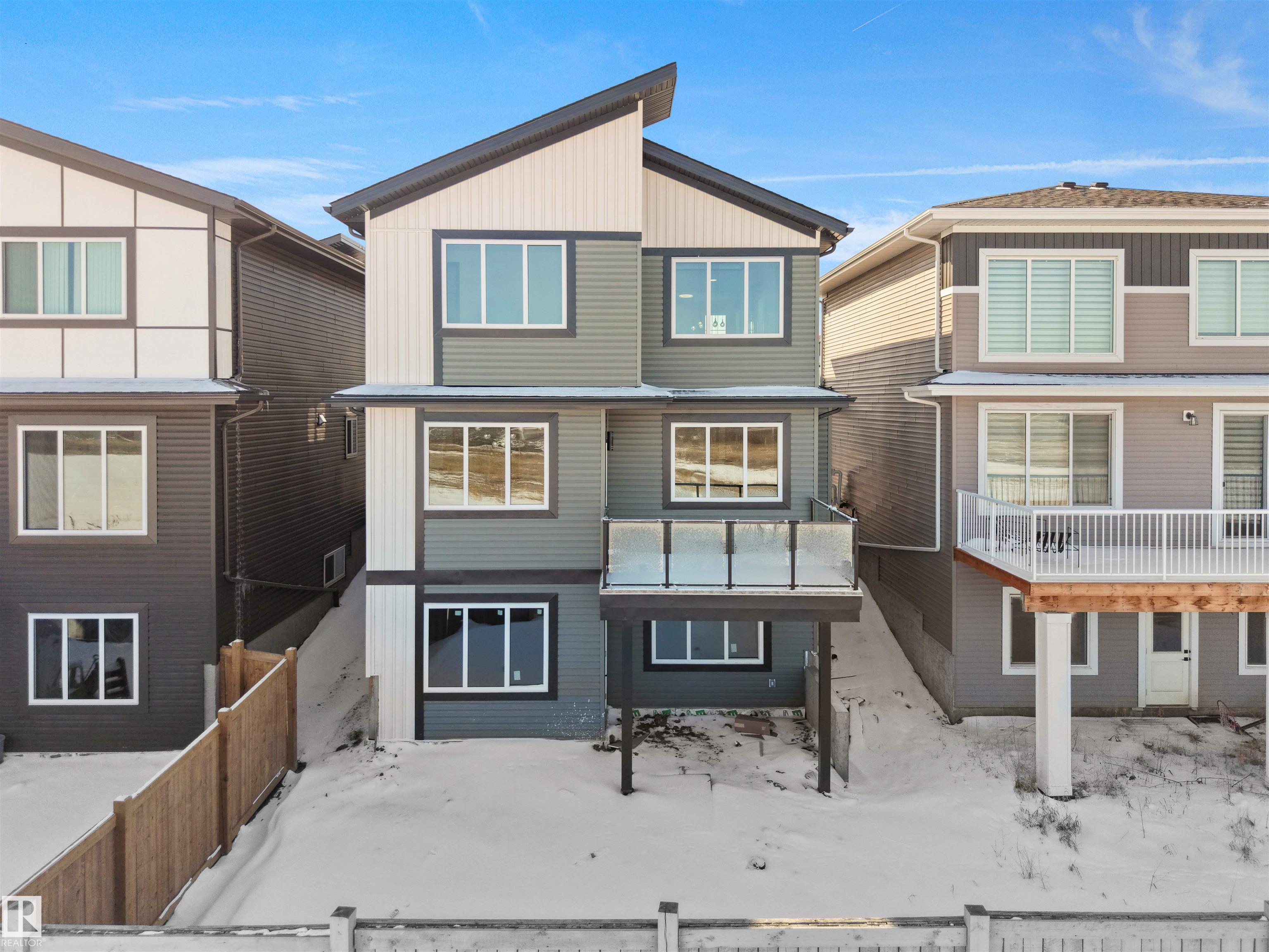 Brand new, never-occupied WALKOUT home in Klarvatten! This beautifully upgraded home offers 4 bedrooms & 4 bathrooms with 9 ft ceilings on all floors and a bright open-to-below living room featuring a striking 2-storey feature wall, fireplace & elegant chandelier. The main floor includes a bedroom & full bath—ideal for guests or extended family. The chef-inspired kitchen showcases stylish backsplash, modern cabinetry, designer fixtures, walk-through pantry & a spacious dining area with access to the balcony overlooking green space. Upstairs features a bright bonus room with feature wall & electric fireplace, a luxurious primary suite with walk-in closet & 5-pc ensuite (soaker tub & glass shower), a second bedroom with its own ensuite, an additional bedroom, full bath & convenient laundry. Glass railings & MDF shelving add a modern touch throughout. WALKOUT unfinished basement ready for future development. Front-attached double garage. Easy access to Anthony Henday & close to amenities.