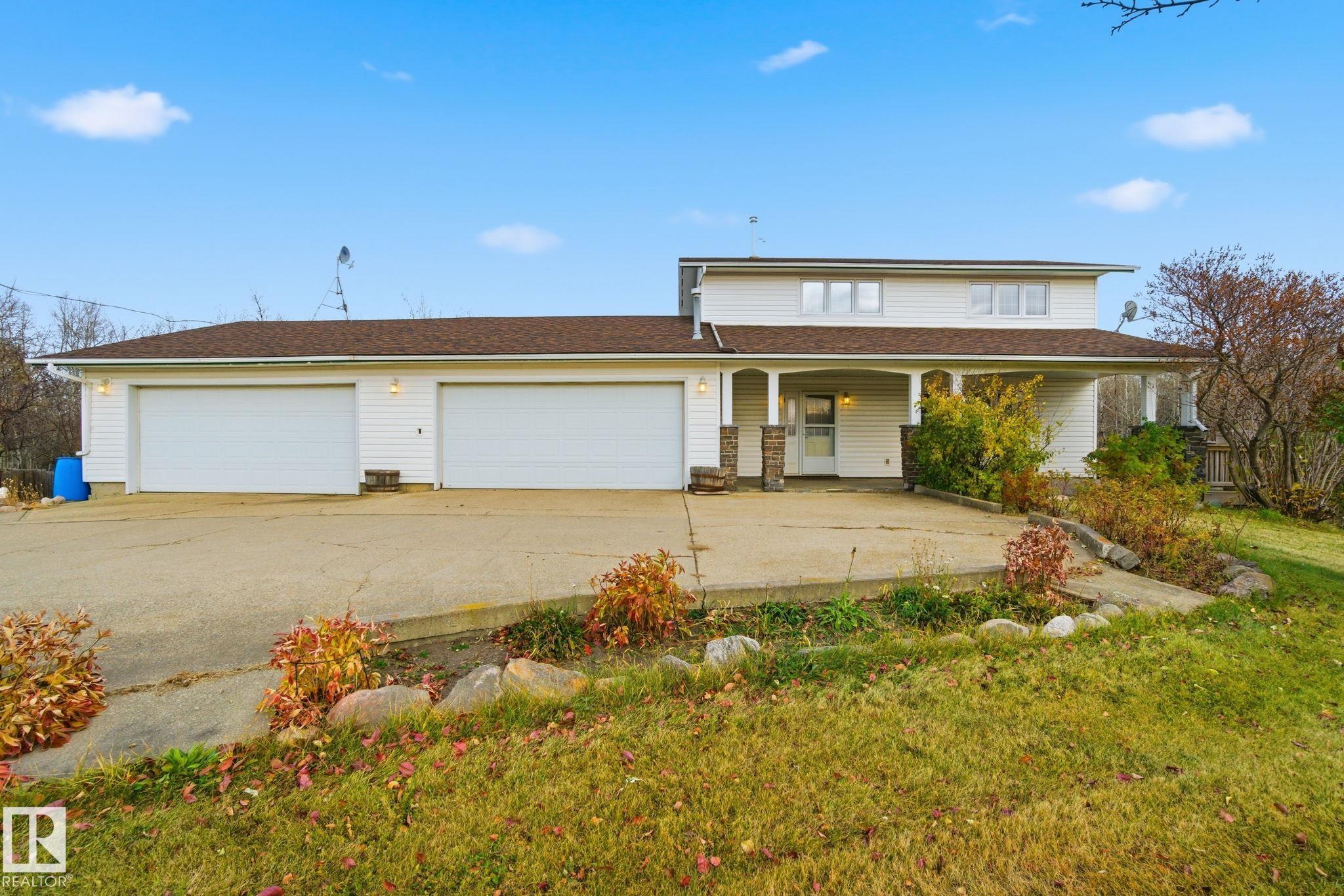 Prime 16.38-acre property located just 10 min to SE Edmonton and 10 min to Sherwood Park.Excellent acreage, business, or future development potential. Upgraded 2,600 sq ft home plus dog kennel as 1173 sq ft above grade .Home prominently sitting on top of hill and near 2 golf courses with mature trees and excellent privacy. Built in 1975 and extensively updated, featuring 5 bedrooms, 4 bathrooms, multiple ensuites, and a fully finished basement. Kitchen offers granite counters, stainless steel appliances, and floor-to-ceiling cabinetry. Includes two heated double attached garages, triple-pane windows, high-efficiency furnace & HWT, PEX plumbing, and roof replaced Sept 2020. Property includes professional insulated/heated dog kennel (7 kennels), fenced areas, small pond,fruit trees, and gardens. Cistern water, dual septic tanks, municipal power/garbage, and high-speed internet.