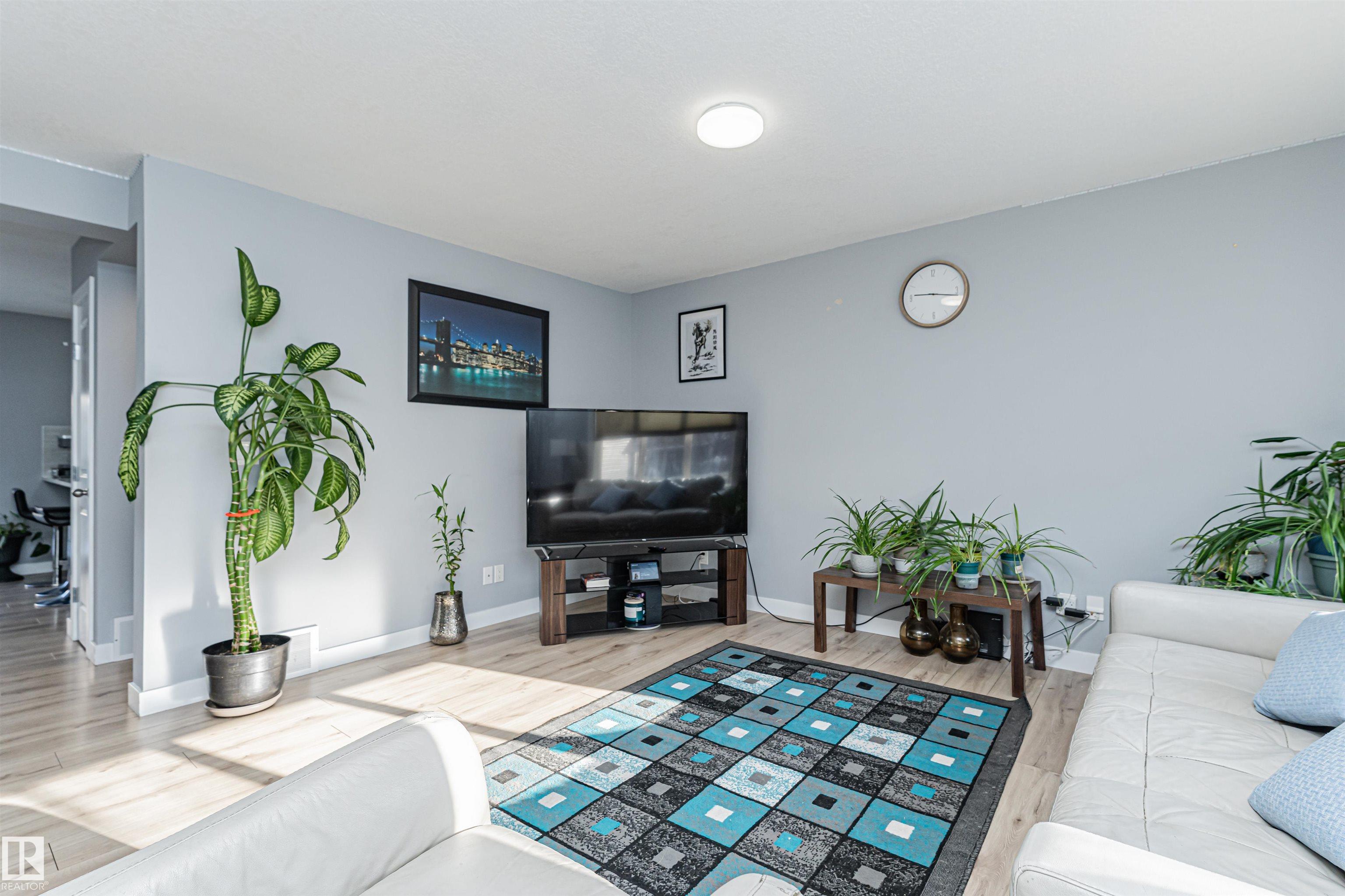 Welcome to this quiet 3 bedroom Townhome in the sought after area of Albany. The main floor is bright and spacious which features a 2 pc powder room, good size kitchen separated from a large dining area with access to the balcony, great for summer entertainment. The glass walled stair case enhances the bright open feel of the living room. Upper level primary bedroom has an 3 pc ensuite and walk in closet. There are 2 other good size bedrooms which share a 4 pc main bath in the hallway. The Lower level has a washer, dryer and access to the oversized attached double garage which features a new garage door opener and 2 controls. This home is located minutes away to all amenities and access to Anthony Henday. This one will not last long!