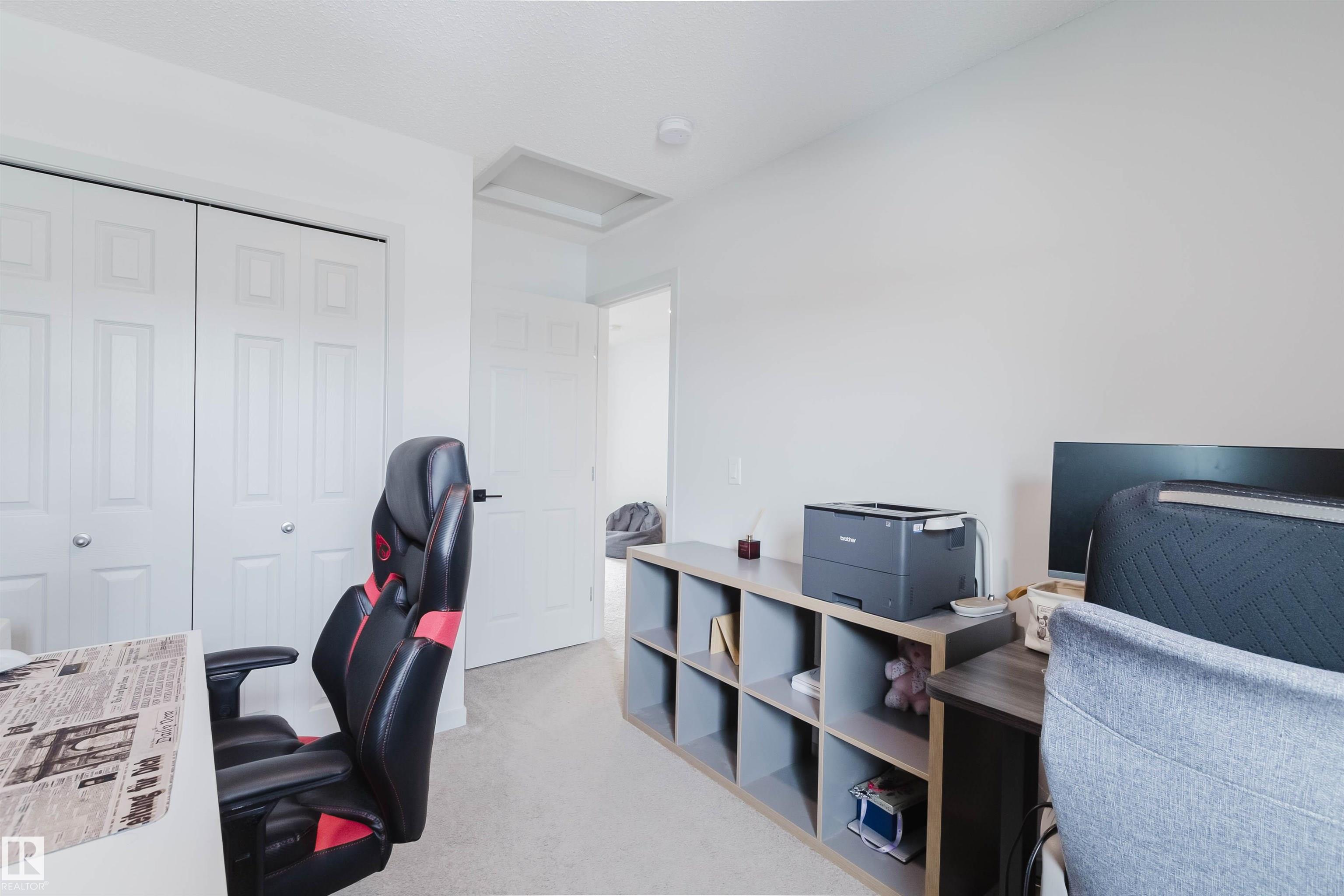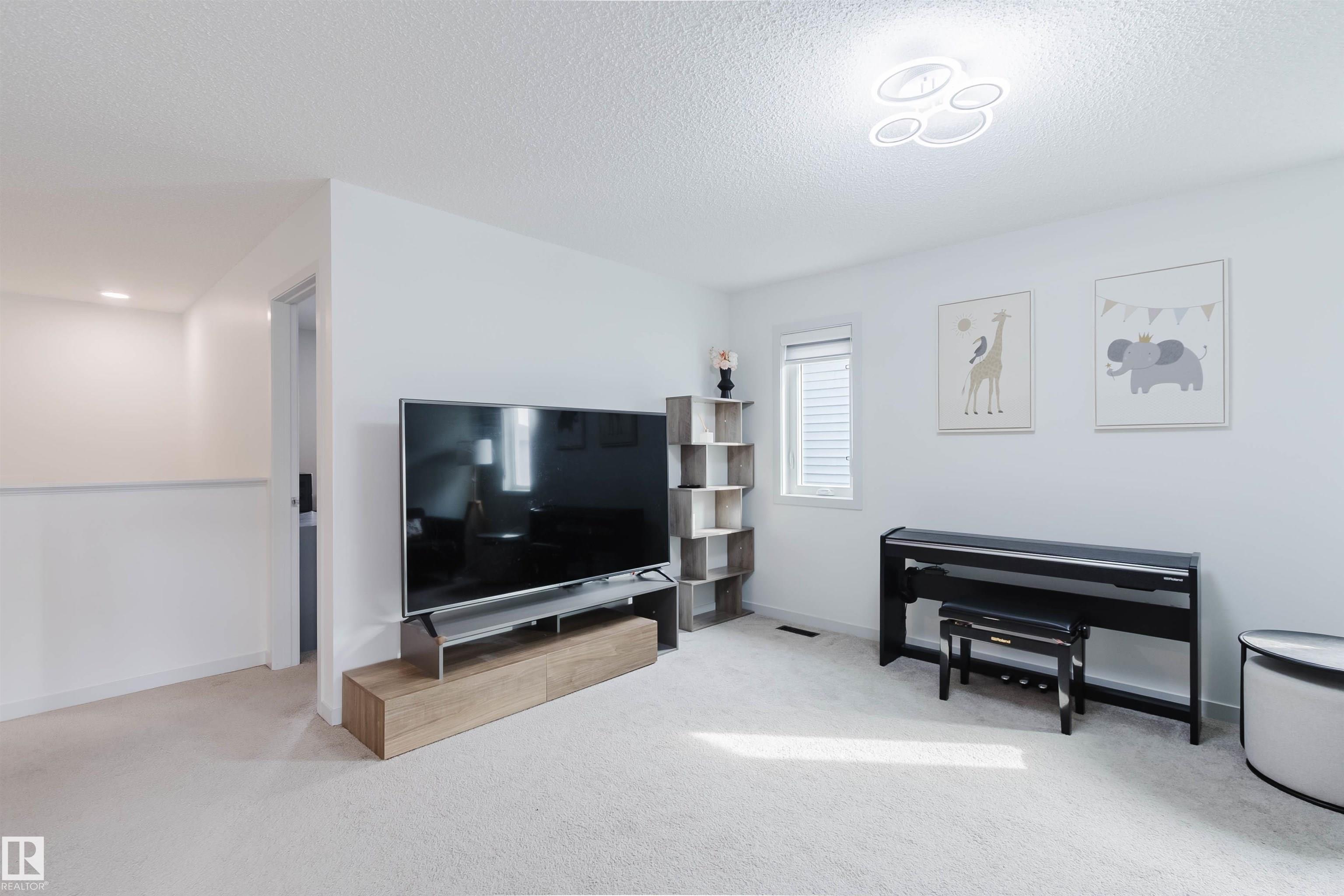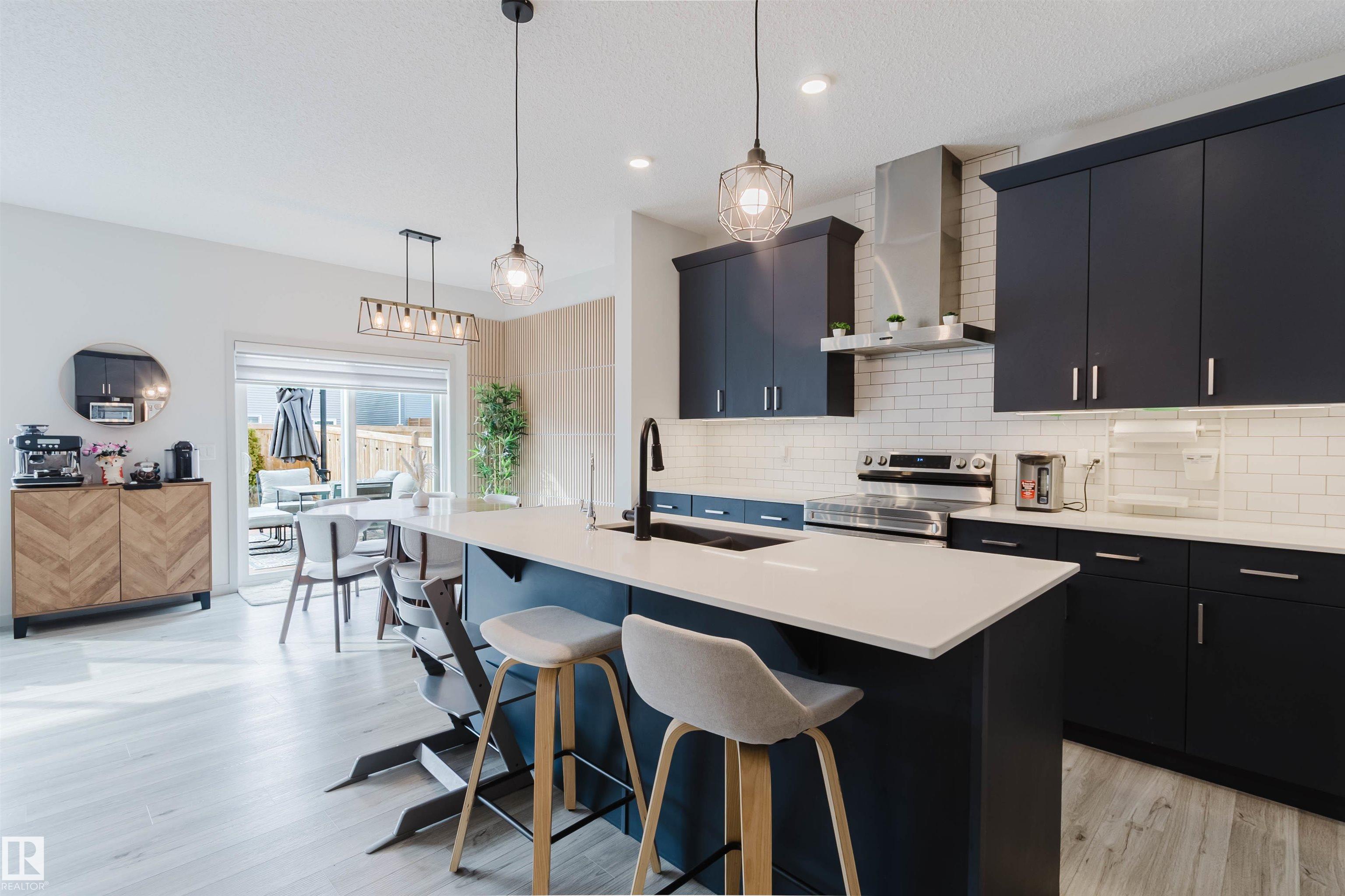 Beautifully maintained 4-BEDROOM home PLUS a main floor DEN, perfect for an office or guests. The main floor features a modern kitchen with a central island, flowing into a bright, open-concept living and dining area filled with natural light, along with a walk-through pantry, large mudroom and an EXTENDED GARAGE to accomodate a truck, keeping everyday living convenient and organized. Upstairs offers 4 bright bedrooms, including a primary suite with a luxurious 5-piece ensuite, a bonus room with multiple side windows that fill the space with natural light, and second-floor laundry. Every bedroom includes custom closet ORGANIZERS for maximum storage and functionality. Additional highlights include a SIDE ENTRANCE, basement rough-in with an enlarged window for future development, CENTRAL AIR CONDITIONING, CENTRAL HUMIDIFIER and a whole-home SOFT WATER & WATER FILTRATION system. Step outside to a beautifully designed deck and patio, perfect for entertaining or relaxing, with all PATIO FURNITURE included.
