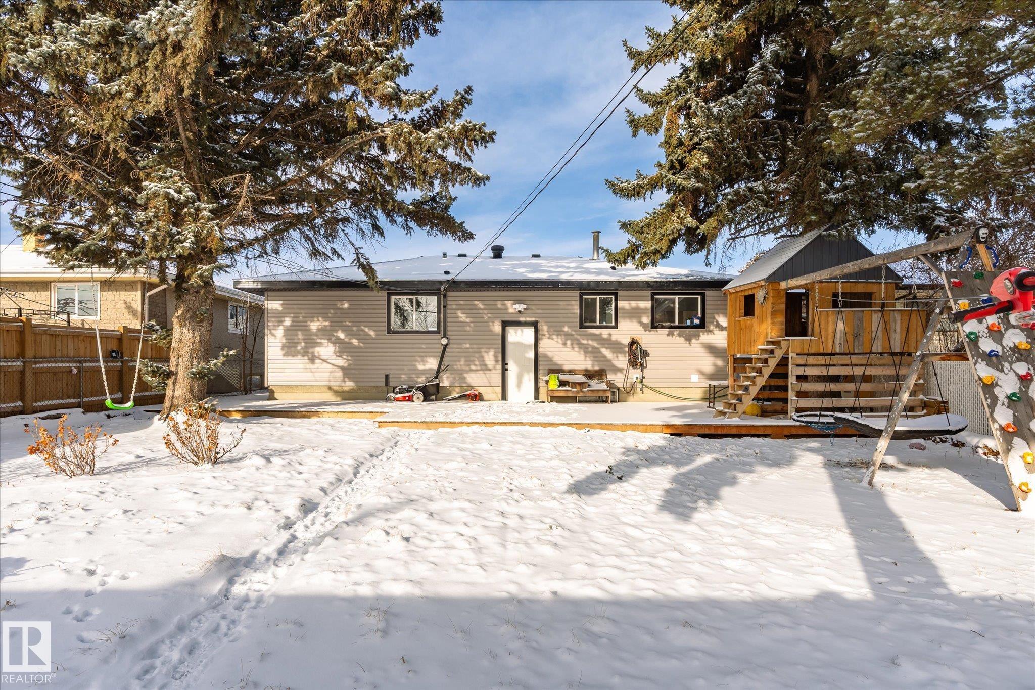 Welcome to this beautifully renovated family home, offering space, comfort, and peace of mind. With 5 bedrooms (3 up, 2 down) and 1,100 sq ft of living space, there’s room for a growing family, guests, or a home office setup. The home has been fully updated from top to bottom, featuring a brand-new kitchen, modern laminate flooring throughout, and an updated bathroom—so you can move in and enjoy without the stress of renovations. Outside, you’ll find a large, fully fenced yard perfect for kids and pets to play safely, complete with a new patio for family BBQs and a charming treehouse that adds a special touch for the little ones. The detached double garage and new exterior siding on both the home and garage provide added value and peace of mind. This is a perfect opportunity to settle into a turn-key home designed for family living, with space to grow and memories waiting to be made.