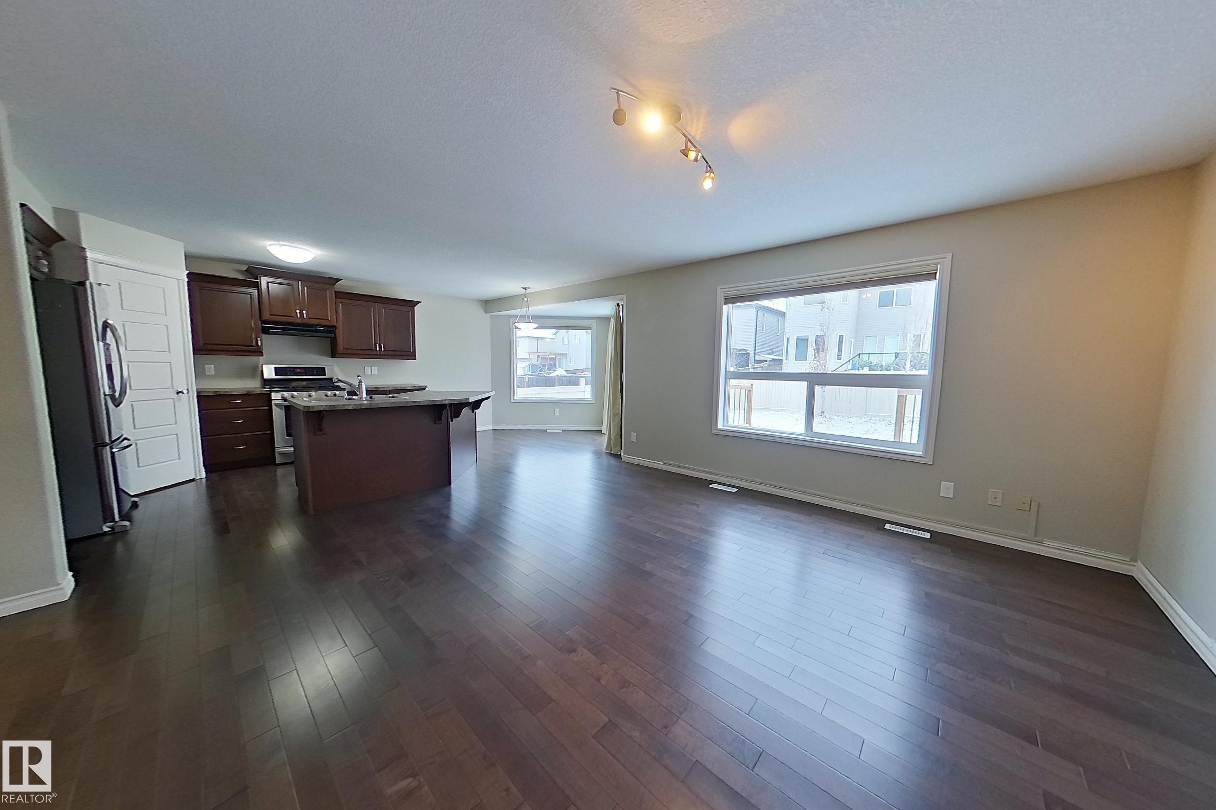 Welcome to the desirable community of Walker Lakes! This well-maintained 2-storey home offers over 1775 Sq Feet of bright, functional living space designed for family comfort. The main floor features an open-concept layout with a spacious living and dining area, a modern kitchen with ample cabinetry, a gas stove, and convenient main-floor laundry. Upstairs, a large bonus room with a cozy gas fireplace provides the perfect space for family movie nights or quiet relaxation. The primary suite includes a walk-in closet and a 4-piece ensuite, complemented by two additional bedrooms and another full bath. The unspoiled basement awaits your personal touch. Outside, enjoy a fully landscaped and fenced yard with a deck with gas hook up ideal for BBQs and summer gatherings. A double attached garage completes this inviting home. Located near schools, parks, public transit, shopping, and quick access to Ellerslie Road and Anthony Henday Drive, this is the perfect place to call home.