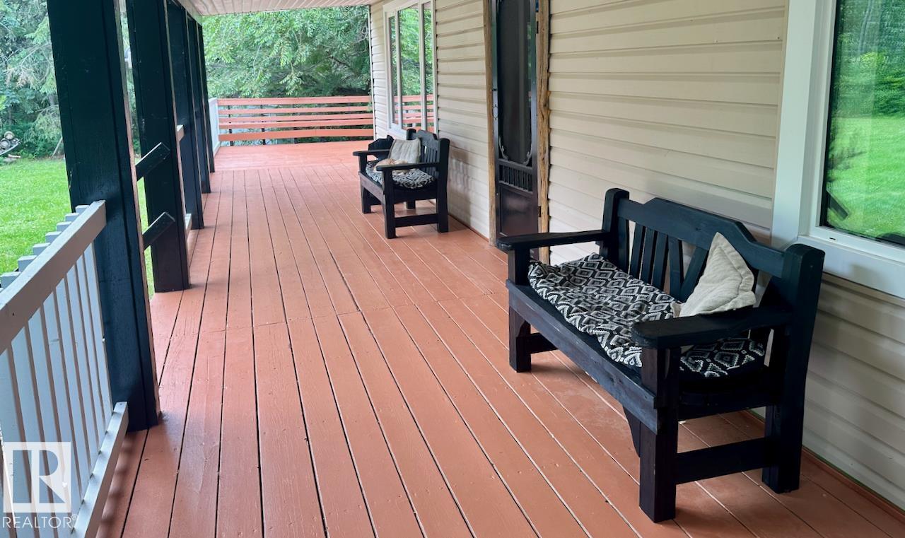 A perfect balance of rural serenity and modern acreage living agricultural zoned, out of subdivision, featuring a heritage square-cut log home. A recent $150K renovation: triple-pane windows, commercial grade LVP flooring, high efficiency furnace with humidifier, water heater, water treatment system, & reverse osmosis system. The Nordic marble natural gas fireplace anchors the open dining and kitchen area, a culinary oasis with upscale appliances, granite countertops on soft-close kitchen cabinets, custom backsplash, spacious island with eating bar. Main floor offers a spacious primary bedroom with a private 4 pc ensuite. Upstairs are 3 bedrooms and 3 pc bath. Step outside onto 1,100 sq ft of covered and open, wrap around deck, for entertaining. Store your cars and toys in the 936 sq/ft 3 Bay heated shop with mezzanine, custom bay doors with automatic openers, engineered concrete pad with durable protective coating and floor drain. Property includes a 2nd residence (ready for rebuild) & a double garage.
