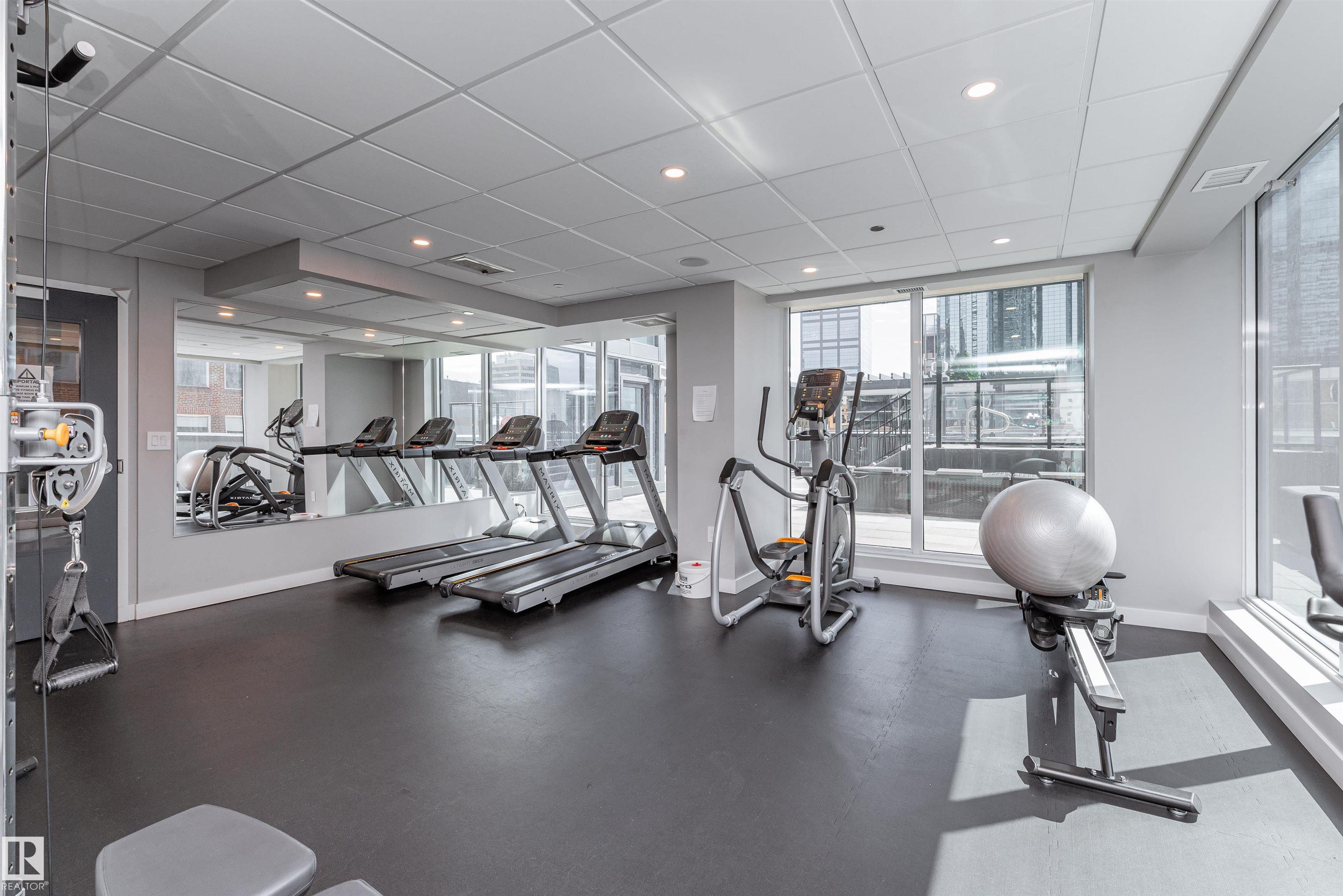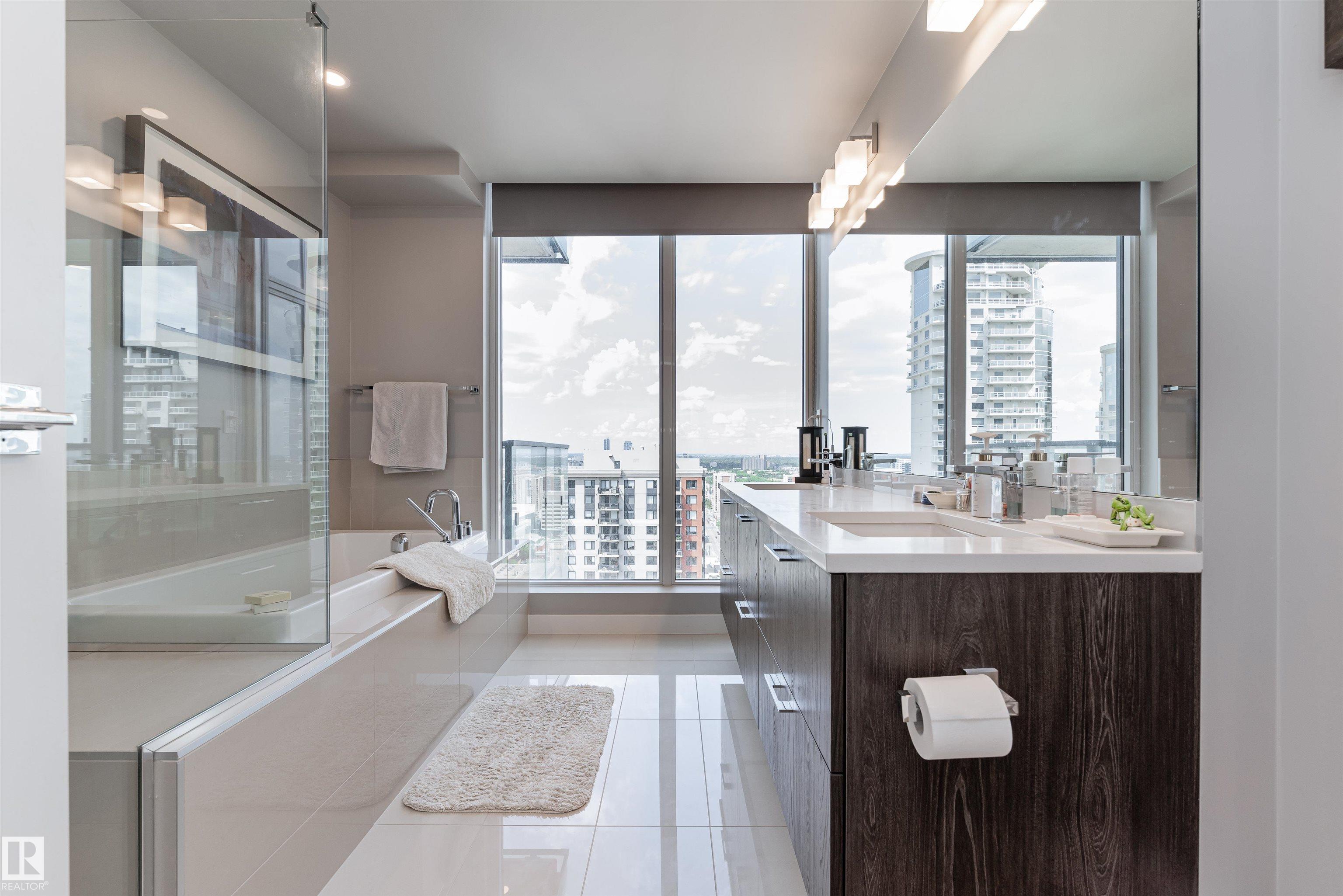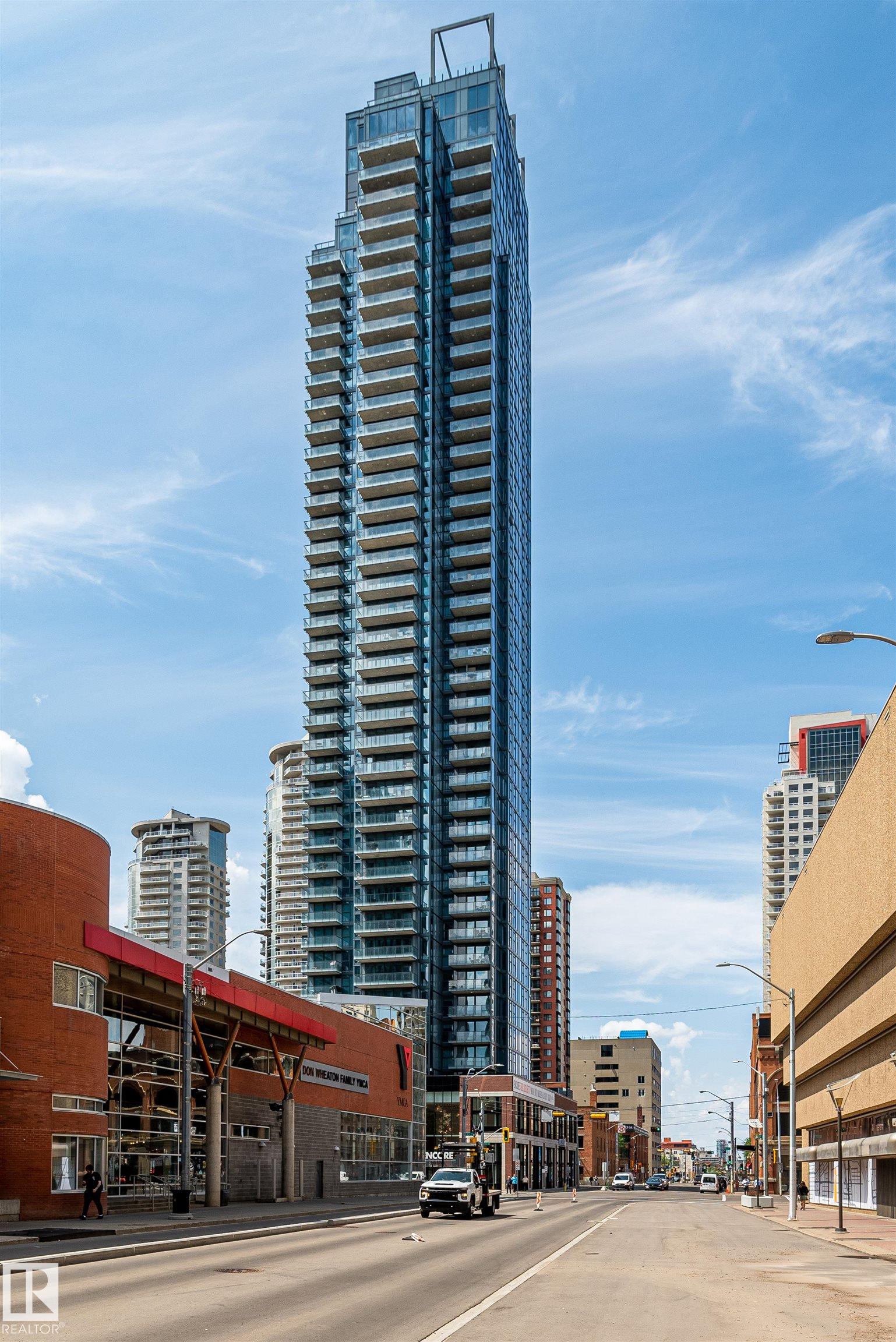 An incredible opportunity to own a premium 2 bed, 2 bath condo on the 24th floor of sought-after Encore Tower. Showcasing breathtaking panoramic views of downtown Edmonton, floor-to-ceiling windows flood the space with natural light, highlighting the modern finishes and sleek design. The open-concept layout seamlessly connects the living, dining, and kitchen areas, while bedrooms are thoughtfully positioned on opposite sides for added privacy. The primary suite features stunning skyline views, a spacious walk-in closet, and a luxurious ensuite with dual vanities, soaker tub, and tiled shower. The second bedroom is generously sized with ample closet space. Enjoy two private balconies and TWO rare underground parking stalls. Encore Tower offers top-tier amenities including a fitness center, rooftop terrace with hot tub, lounge spaces, and concierge service. Prime location with immediate access to Ice District, Financial Core, River Valley, LRT, and more!